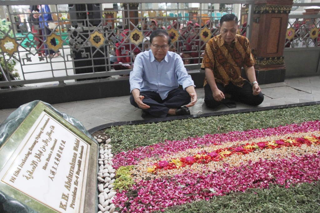 Tokoh Nasional Rizal Ramli didampingi Mantan Jubir Kepresidenan Era Gus Dur Adhie M Massardi berdoa didepan makam Abdurrahman Wahid (Gus Dur) di Pondok Pesantren Tebu Ireng, Jombang, Jawa Timur, Kamis (28/12/2017). Sosok Gus Dur dimata Rizal Ramli beliau adalah tokoh yang berani, prulalisme yang luar biasa keberpihakannya kepada rakyat kecil. AKTUAL/HO
