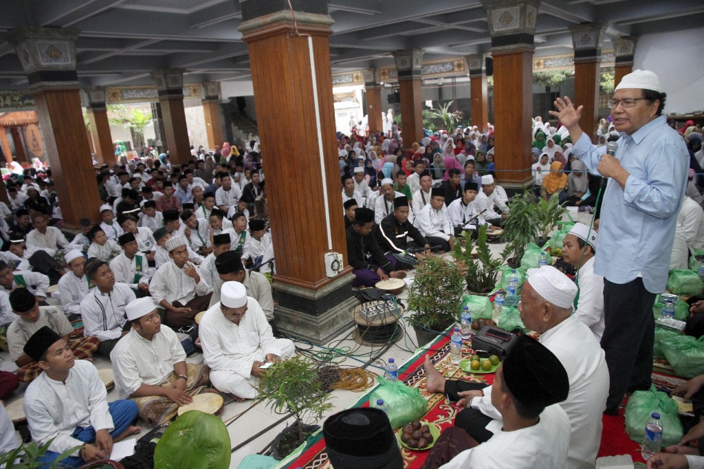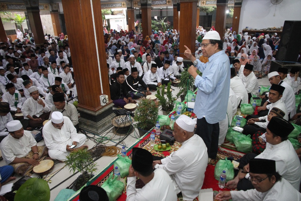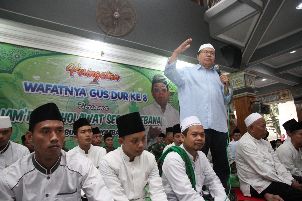 Tokoh Nasional Rizal Ramli memberikan tausyiah dihadapan santri dan jamaah pada acara Haul Ke 8 Abdurrahman Wahid (Gus Dur) di Pondok Pesantren Tebu Ireng, Jombang, Jawa Timur, Kamis (28/12/2017). Sosok Gus Dur dimata Rizal Ramli beliau adalah tokoh yang berani, prulalisme yang luar biasa keberpihakannya kepada rakyat kecil. AKTUAL/HO