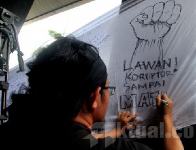 Jakarta, Aktual.co — Puluhan pegawai Komisi Pemberantasan Korupsi (KPK) melakukan unjuk rasa di depan gedung sendiri, Selasa (3/3). Aksi tersebut merupakan bentuk penolakan terhadap putusan pimpinan KPK yang melimpahkan kasus Komjen Pol Budi Gunawan ke Kejaksaan Agung.
