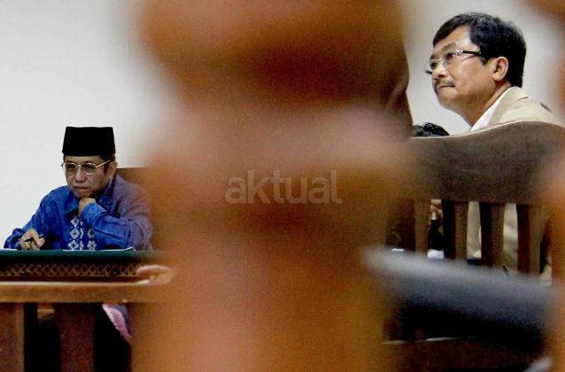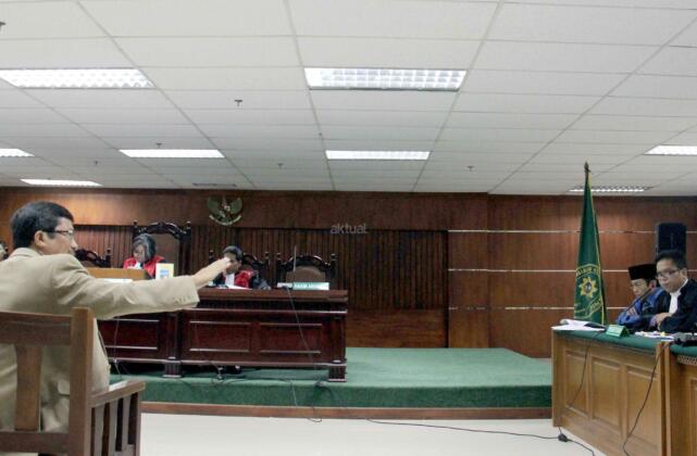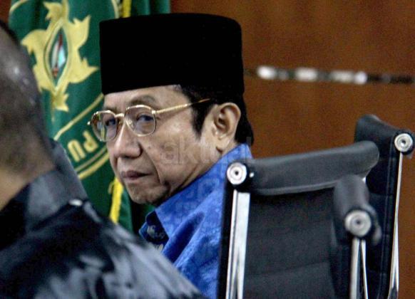 Waryono Karno mendengarkan kesaksian mantan Kepala SKK Migas di Pengadilan Tipikor, Jakarta, Rabu (5/8/2015). Diketahui, Waryono Karno didakwa dengan tiga dakwaan. Pada dakwaan pertama, Jaksa mendakwa Waryono telah memperkaya diri sendiri, orang lain, dan korporasi. Atas perbuatannya itu, dia didakwa telah merugikan keuangan negara sebesar Rp11.124.736.447 (Rp11,1 miliar).