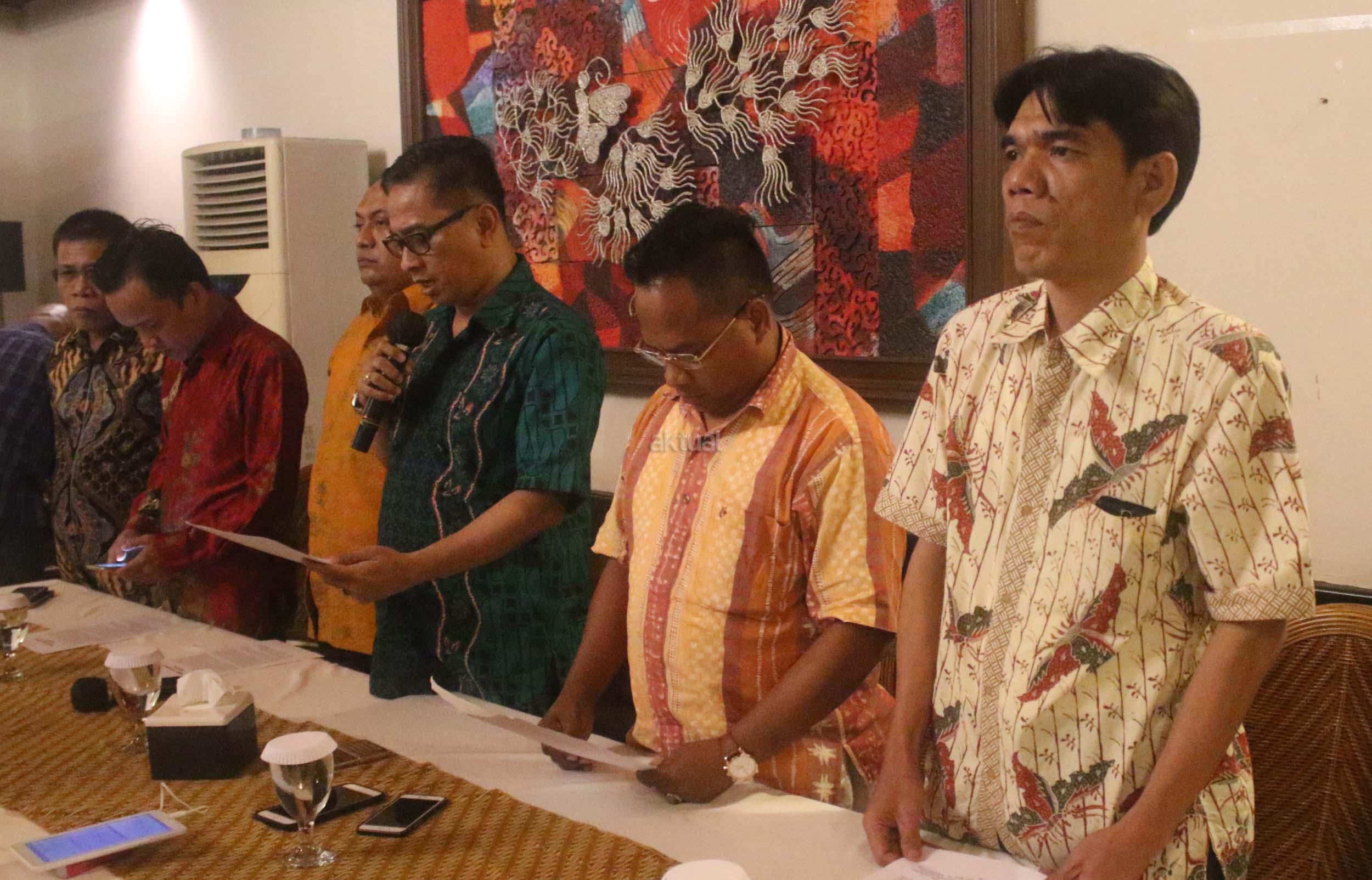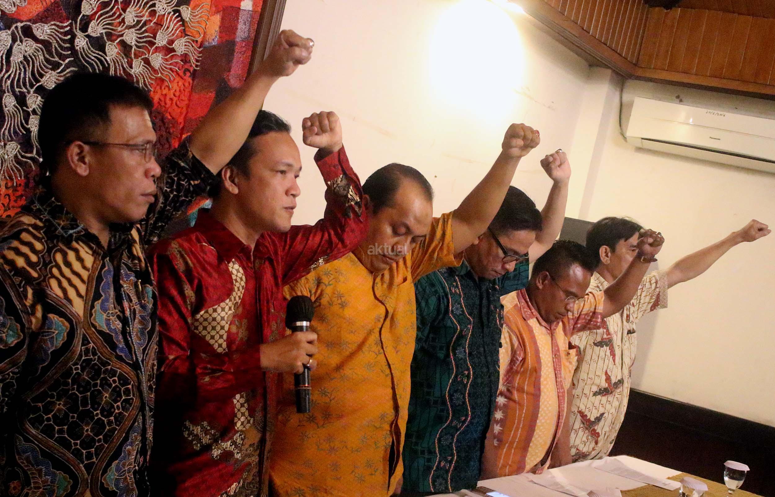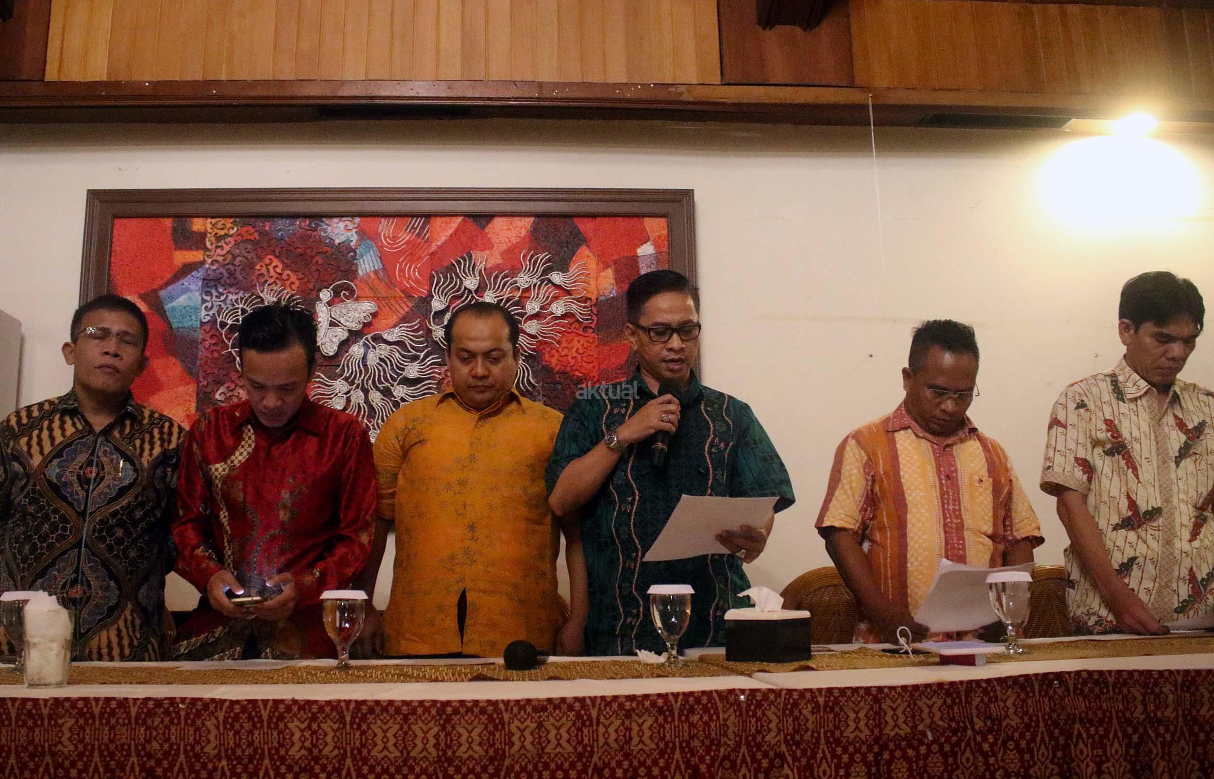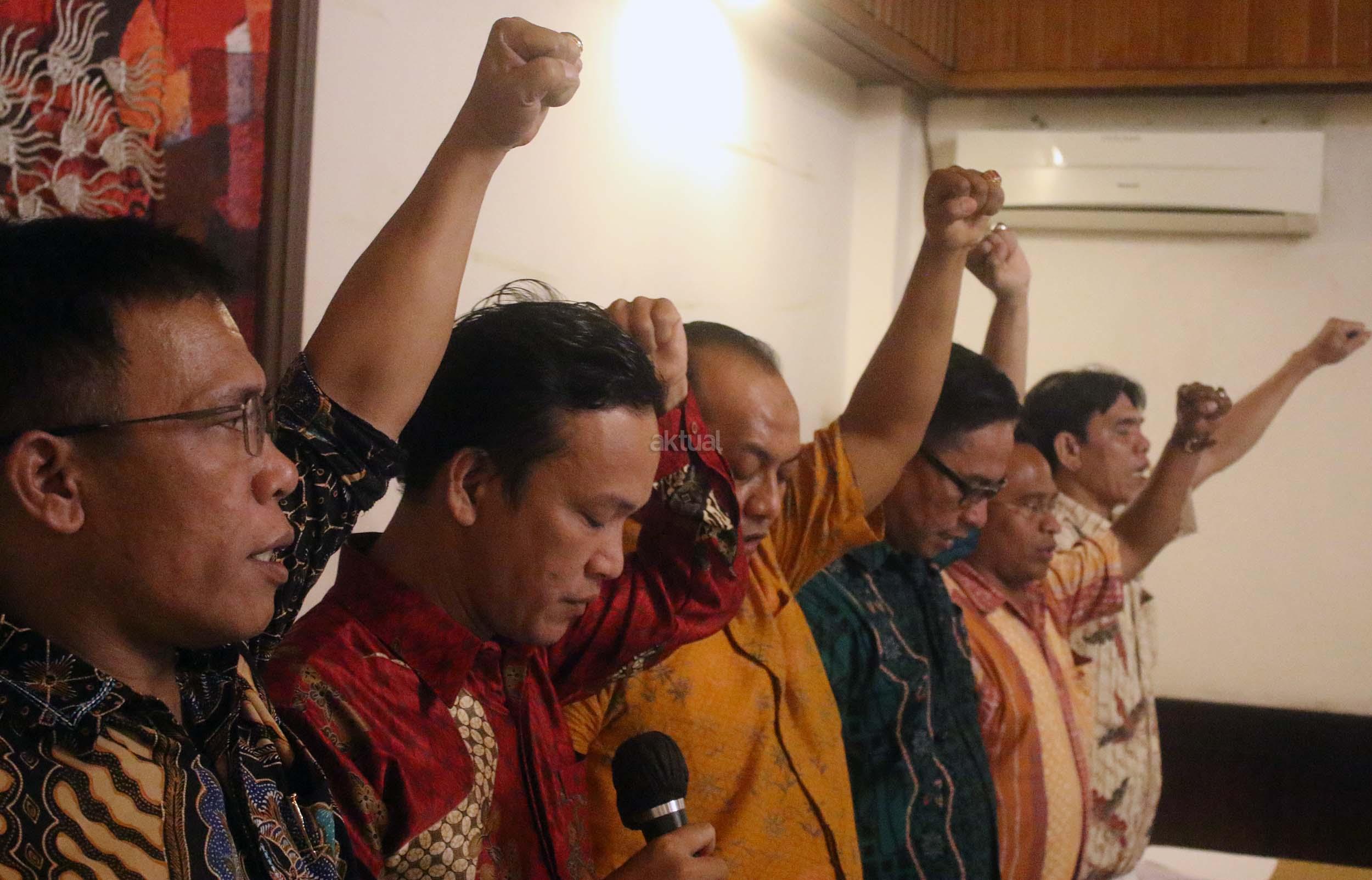 Kiri - kanan ; Juru Bicara Rumah 98 Masinton Pasaribu, Juru Bicara Rumah 98 Immanuel Ebenezer, Juru Bicara Rumah 98 Sayed Junaidi, Juru Bicara Rumah 98 Bernard Haloho, Juru Bicara Rumah 98 Wahab Talaohu, Juru Bicara Rumah 98 Anton, saat menggelar jumpa pers di Jakarta, Jumat (28/7/2016). Dalam jumpa persnya Rumah 98 mengajak seluruh komponen bangsa untuk ikut terlibat aktif dalam menjaga roh kebangsaan Negara Kesatuan Republik Indonesia dan menegaskan kepada elit politik untuk tidak menggunakan isu sara demi tujuan politik jangka pendek. AKTUAL/Munzir