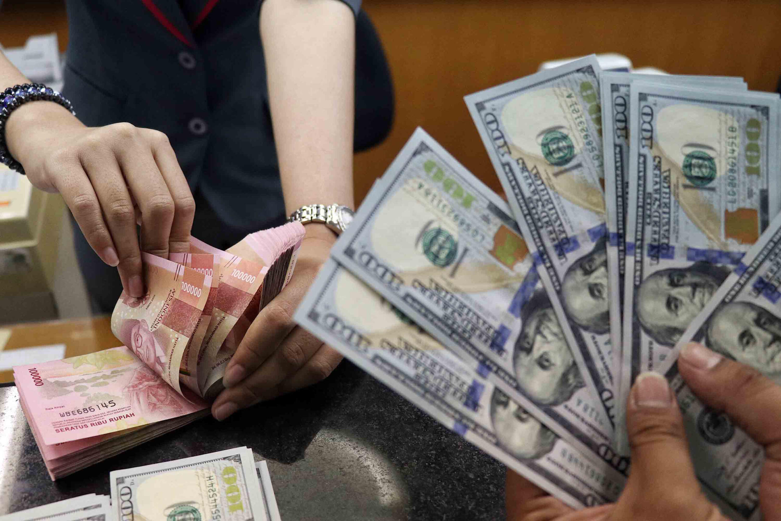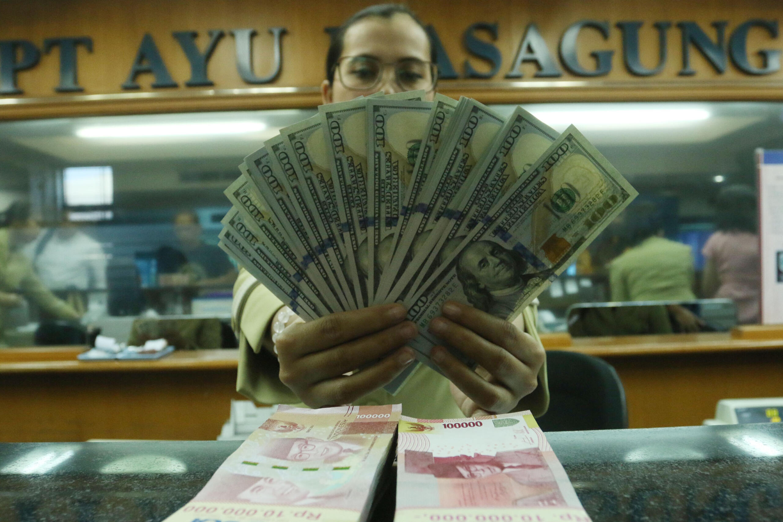 Karyawan memperlihatkan uang pecahan dolar Amerika Serikat di gerai penukaran mata uang asing di Jakarta, Selasa (4/9/2018). Nilai tukar Rupiah terhadap Dollar AS melemah menjadi Rp14.940 per dolar AS pada perdagangan hari ini. Indonesia punya sejarah pahit mengenai krisis moneter, yaitu yang terjadi 20 tahun silam, tepatnya pada 1998. AKTUAL/Tino Oktaviano