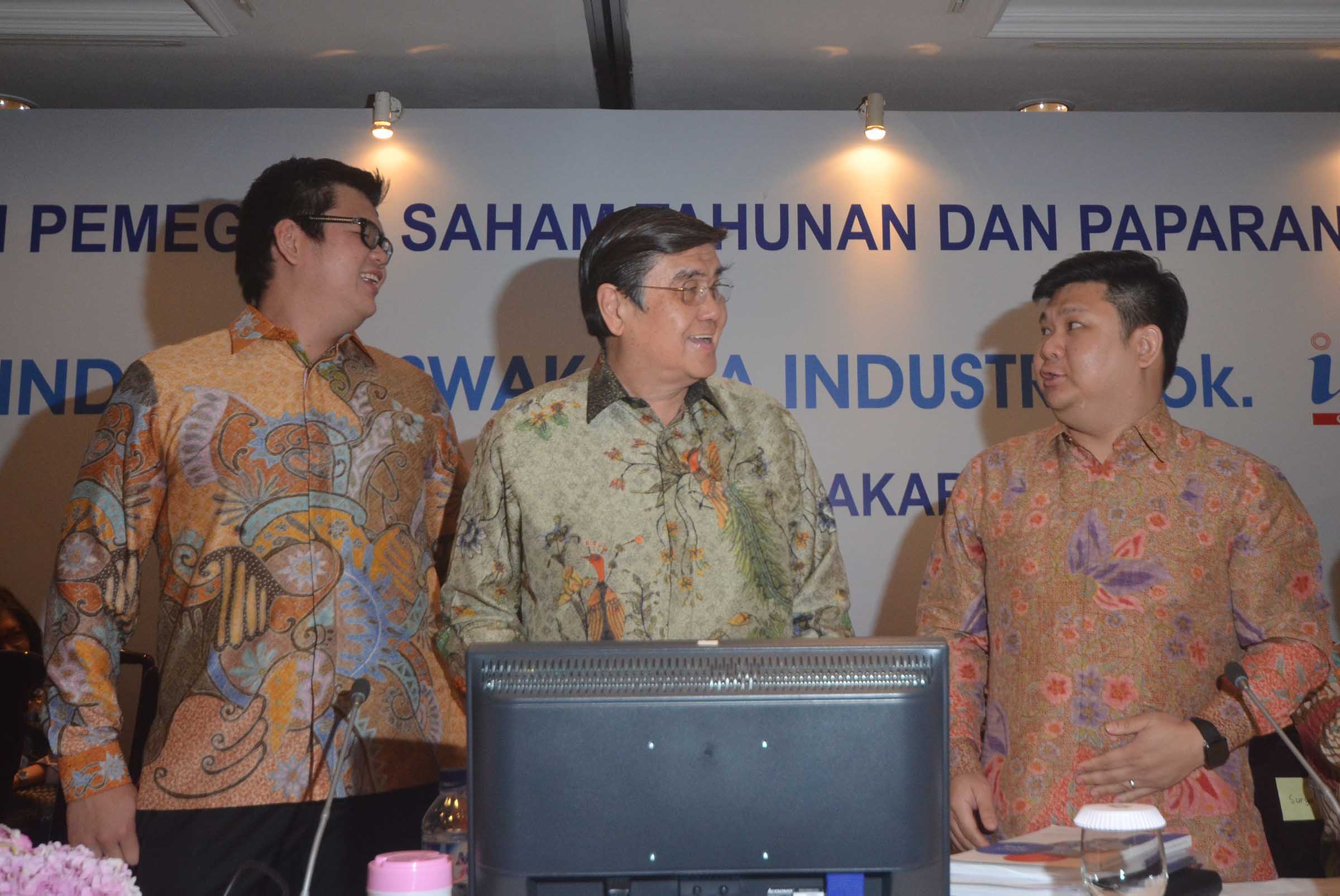 Presiden Direktur PT Indopoly Swakarsa Industry Tbk Hendry Halim (tengah) bersama Wakil Presiden Direktur Jefferey Halim (kiri) dan Direktur, Alexander Bustami(kanan) berbincang usai menggelar RUPS di Jakarta, Selasa (28/6). PT Indopoly Swakarsa Industry Tbk membukukan pertumbuhan laba 351% di Kuartal 1 2016 dibandingkan kuartal 1 2015. untuk melanjutkan pertumbuhan berkelanjutan, perseroan akan melakukan investasi atas 2 mesin metalizing berkapasitas masing-masing 9.000 ton yang ditempatkan di Purwakarta dan Cina