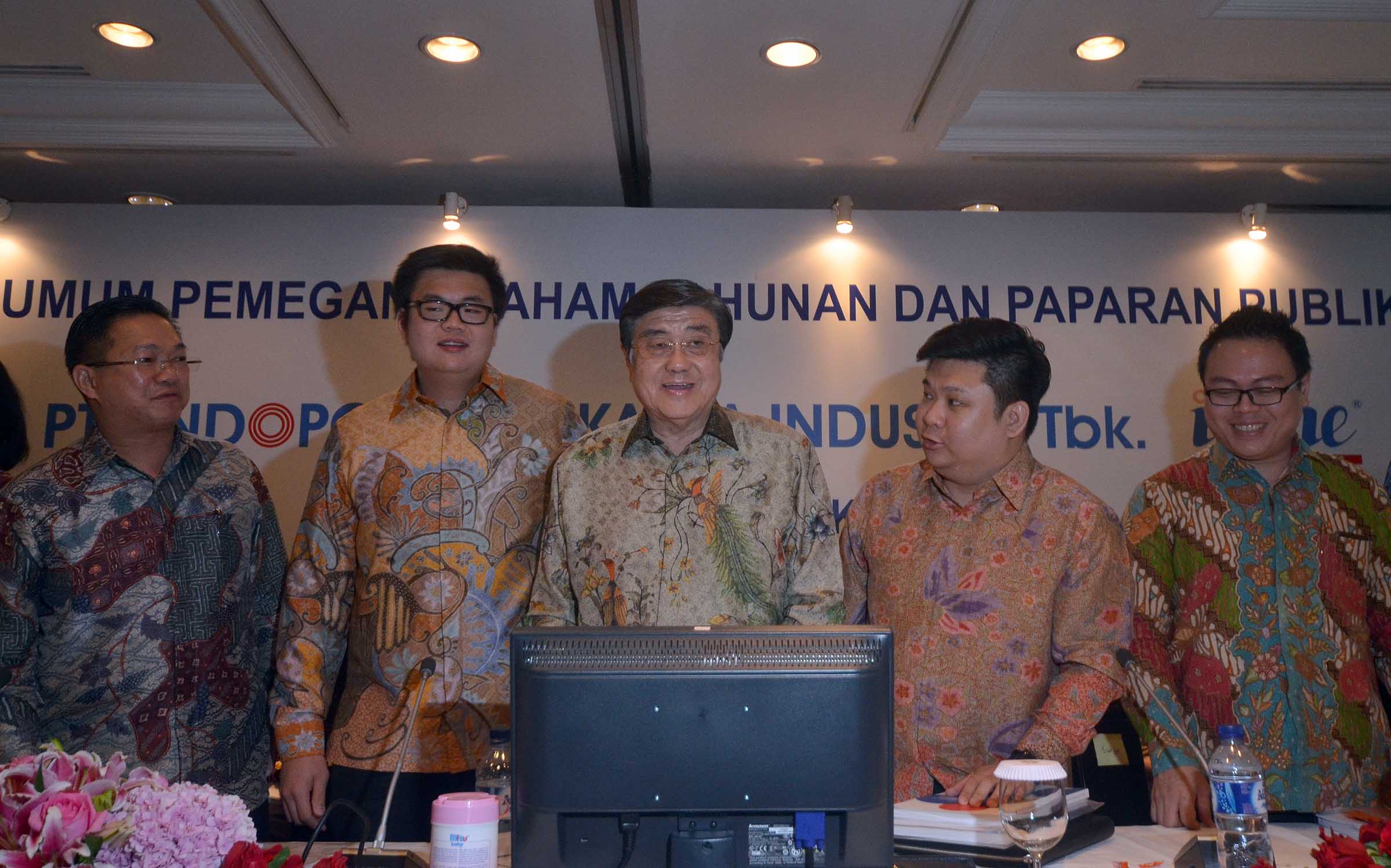 Presiden Direktur PT Indopoly Swakarsa Industry Tbk Hendry Halim (tengah) bersama Jajaran Direksi dan Komisaris berbincang usai menggelar RUPS di Jakarta, Selasa (28/6). PT Indopoly Swakarsa Industry Tbk membukukan pertumbuhan laba 351% di Kuartal 1 2016 dibandingkan kuartal 1 2015. untuk melanjutkan pertumbuhan berkelanjutan, perseroan akan melakukan investasi atas 2 mesin metalizing berkapasitas masing-masing 9.000 ton yang ditempatkan di Purwakarta dan Cina