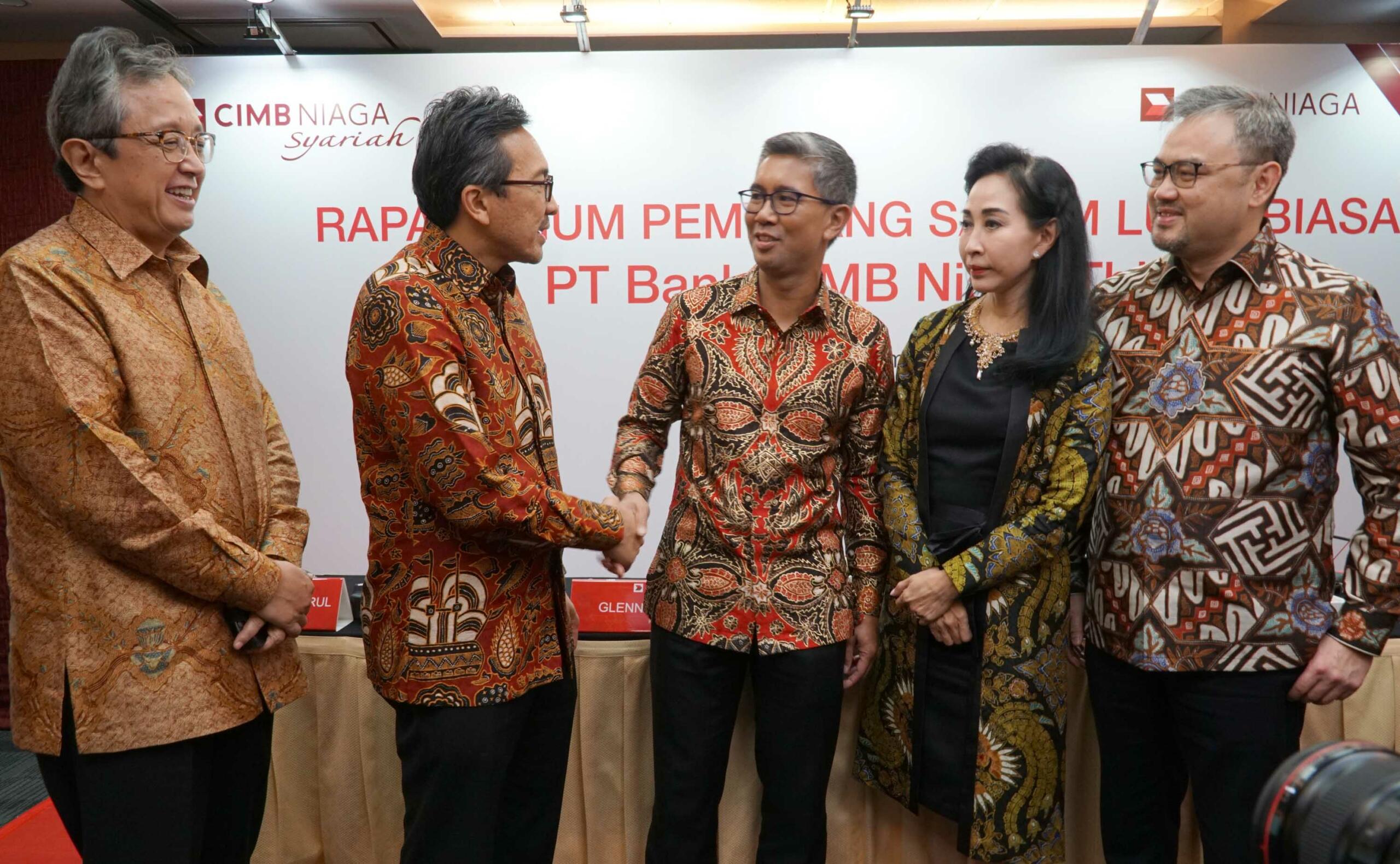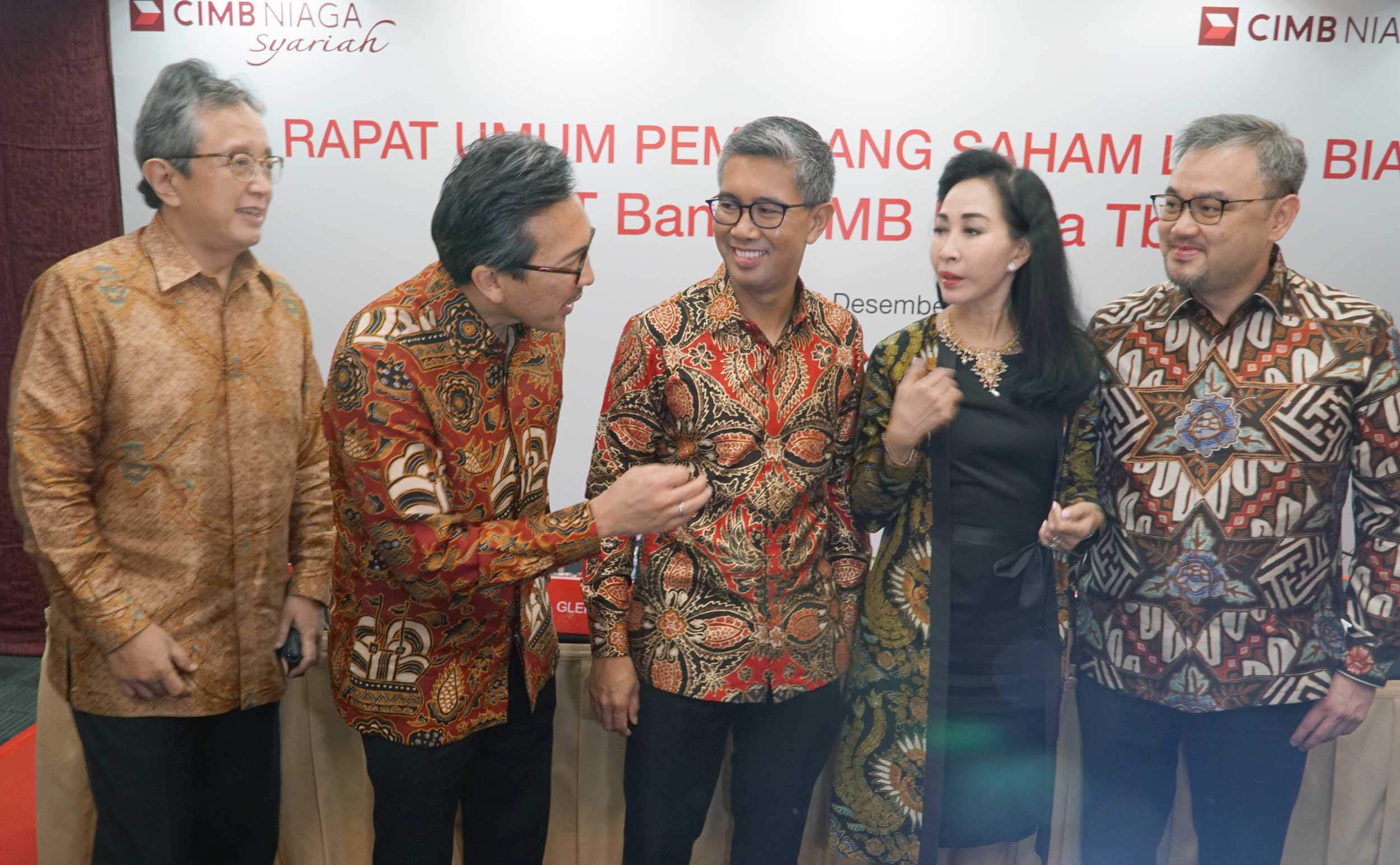 Presiden Komisaris CIMB Niaga Tengku Dato’ Sri Zafrul Tengku Abdul Aziz (kedua kiri) berbincang dengan Wakil Presiden Komisaris Glenn Muhammad Surya Yusuf (kiri), Presiden Direktur Tigor M. Siahaan (kedua kiri), Direktur Fransiska Oei (kedua kanan) dan Direktur Lee Kai Kwong (kanan) usai Rapat Umum Pemegang Saham Luar Biasa (RUPSLB) CIMB Niaga di Jakarta, Rabu (19/12/2018). RUPSLB menyetujui pengangkatan Tengku Dato’ Sri Zafrul Tengku Abdul Aziz sebagai Presiden Komisaris CIMB Niaga dan Lee Kai Kwong sebagai Direktur dengan masa jabatan masing-masing berlaku efektif setelah mendapat persetujuan OJK dan/atau terpenuhinya persyaratan yang ditetapkan dalam persetujuan OJK dimaksud. Dengan formasi kepengurusan yang baru, CIMB Niaga akan terus meningkatkan pencapaian yang telah diraih saat ini sebagai bank swasta nasional terbesar kedua di Indonesia. AKTUAL/Eko S Hilman