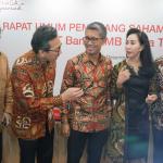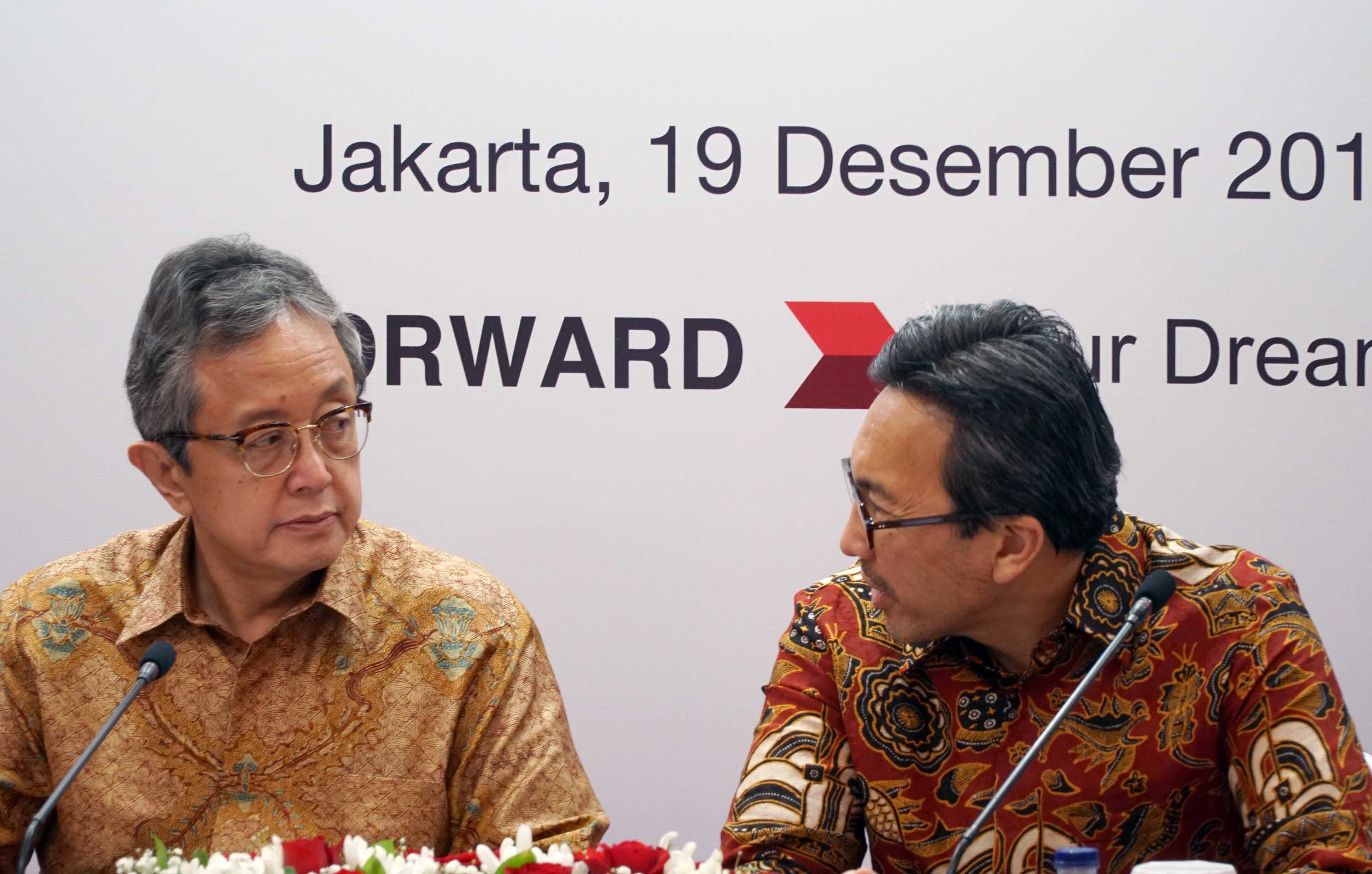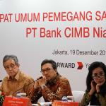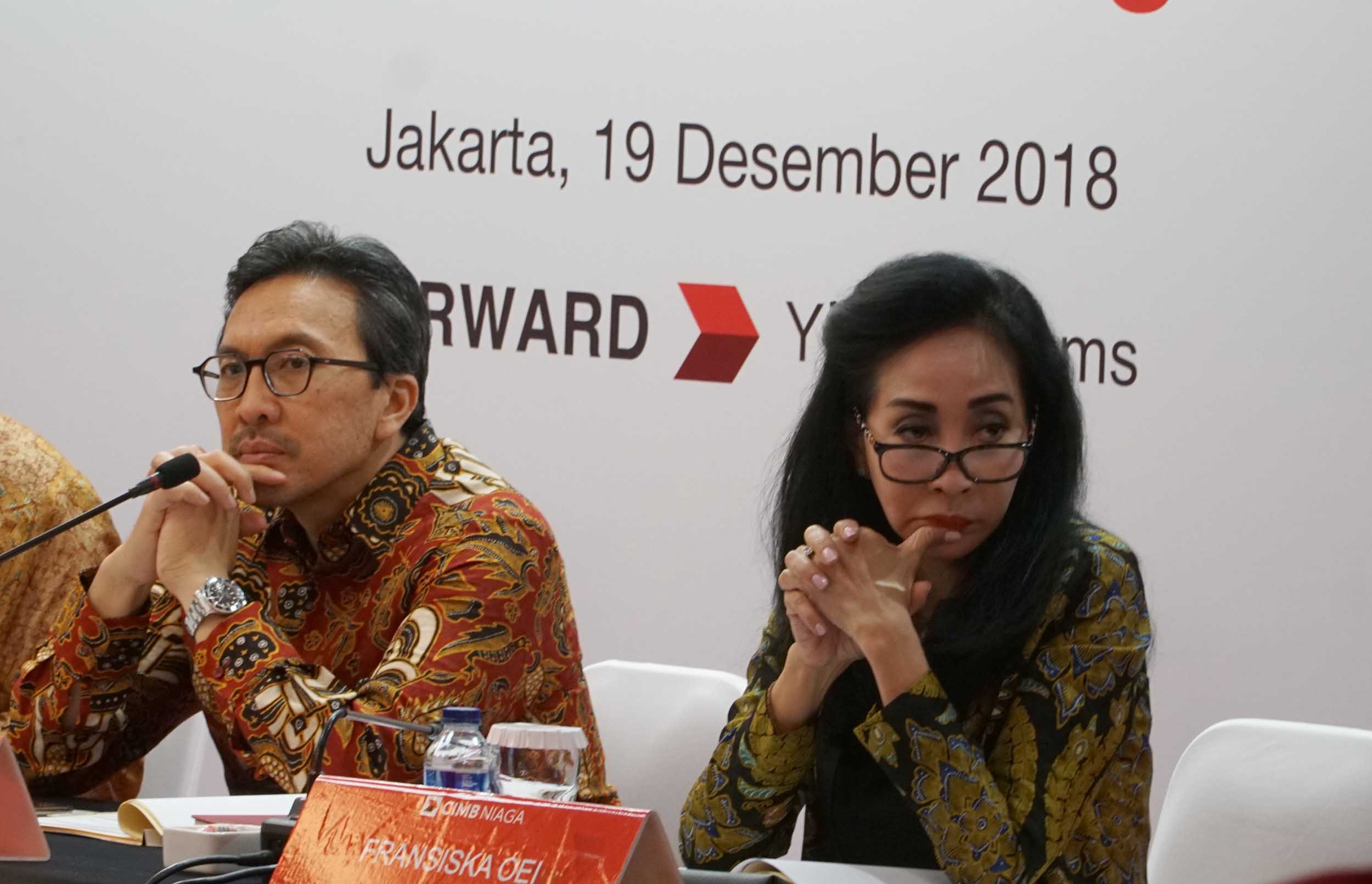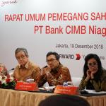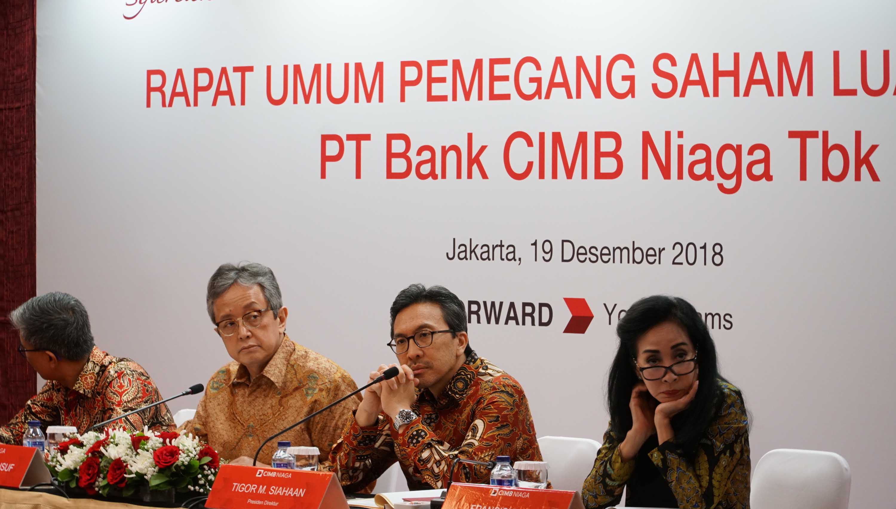 Presiden Direktur Tigor M. Siahaan (kiri), Direktur Fransiska Oei (kanan) saat Rapat Umum Pemegang Saham Luar Biasa (RUPSLB) CIMB Niaga di Jakarta, Rabu (19/12/2018). RUPSLB menyetujui pengangkatan Tengku Dato’ Sri Zafrul Tengku Abdul Aziz sebagai Presiden Komisaris CIMB Niaga dan Lee Kai Kwong sebagai Direktur dengan masa jabatan masing-masing berlaku efektif setelah mendapat persetujuan OJK dan/atau terpenuhinya persyaratan yang ditetapkan dalam persetujuan OJK dimaksud. Dengan formasi kepengurusan yang baru, CIMB Niaga akan terus meningkatkan pencapaian yang telah diraih saat ini sebagai bank swasta nasional terbesar kedua di Indonesia. AKTUAL/Eko S Hilman