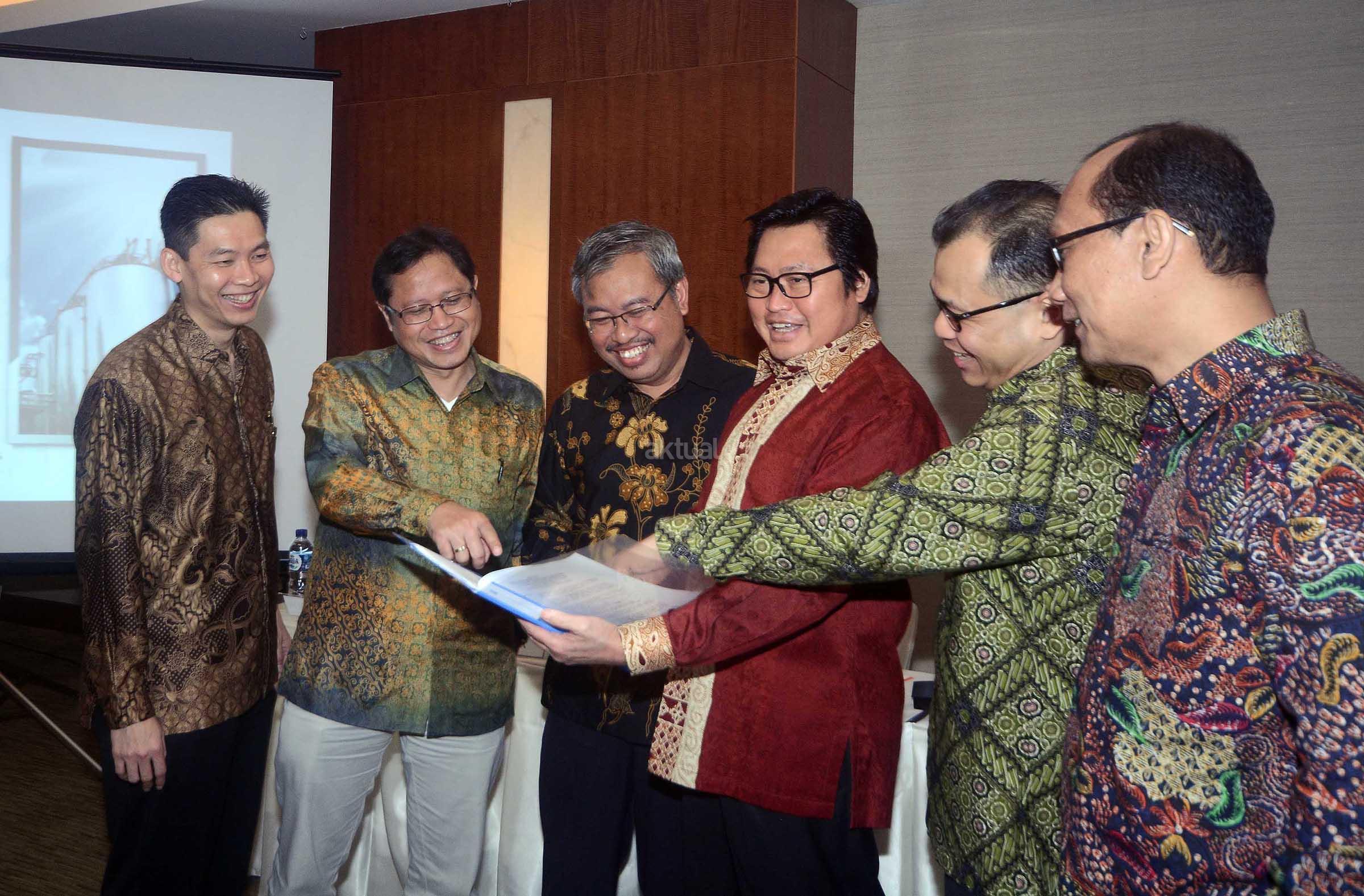 Direktur Utama PT Cita Mineral Investindo (CITA), Liem Hok Seng (keempat dari kiri) berbincang dengan jajaran Direksi dan Komisaris masing masing (kiri ke kanan) Perwakilan WHW , Hidayat Sugiarto, Direktur, Robby Irfan Rafianto , Komisaris Independen, Parwoto Kartiko Sunu, Komisaris, Harry Kesuma Tanoto serta Direktur Independen, Yusak Lumba Pardede seusai RUPSLB di Jakarta, Kamis (17/11). Emiten yang bergerak dalam bidang pertambangan bauksit dan produsen alumina tersebut berhasil meraih pendapatan usaha Rp 255,97 miliar di kuartal III 2016 dibanding akhir September 2015 yang tidak mencatatkan pendapatan. CITA melaksanakan RUPSLB antara lain untuk pemberian corporate guarantee kepada entitas asosiasi PT Well Harvest Winning Alumina Refinery (WHW) yang memiliki pabrik pengolahan dan pemurnian bijih bauksit menjadi Alummina SGA pertama di Indonesia. WHW merupakan perusahaan patungan antara CITA (30%) dengan China Hongqiao Group Limited dari Tiongkok (56%), Winning Investment (HK) Company Ltd (9%) dan Shandong Weiqiao Aluminium and Electricity Co. Ltd (5%).WHW merupakan perusahaan patungan antara CITA (30%) dengan China Hongqiao Group Limited dari Tiongkok (56%), Winning Investment (HK) Company Ltd (9%) dan Shandong Weiqiao Aluminium and Electricity Co. Ltd (5%).Salah satu penunjang kenaikan kinerja CITA berasal dari beroperasinya Pabrik Pengolahan dan Pemurnian Bauksit menjadi Smelter Grade Alumina (SGA) Alumina milik Entitas Asosiasi WHW) sejak pertengahan 2016 lalu. AKTUAL/Eko S Hilman