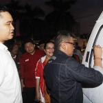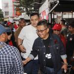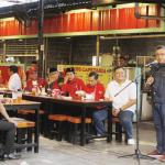 Dari kanan ke kiri, Sekretaris Tim Kampanye Nasional Jokowi Ma'ruf Amin Hasto Kristianto didampingi Sekretaris Tim Kampanye Nasional Jokowi-Ma'ruf Amin Kota Tangerang Andri S Pernama saat menghadiri ngobrol santai dengan pemilih milenial dan organisasi kepemudaan di Roti Bakar 88, Tangerang, Banten, Jumat (21/12). Safari politik kebangsaan tersebut untuk meningkatkan politisi muda dalam memperoleh suara pemilih milenial, yang jumlahnya mencapai 40 persen dari total pemilih Pemilu 2019. AKTUAL/IST