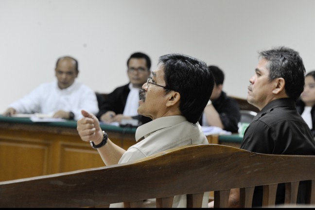 “Selain minta uang, apakah anda tahu terdakwa meminta uang dan saham?” kata hakim Supriyono.