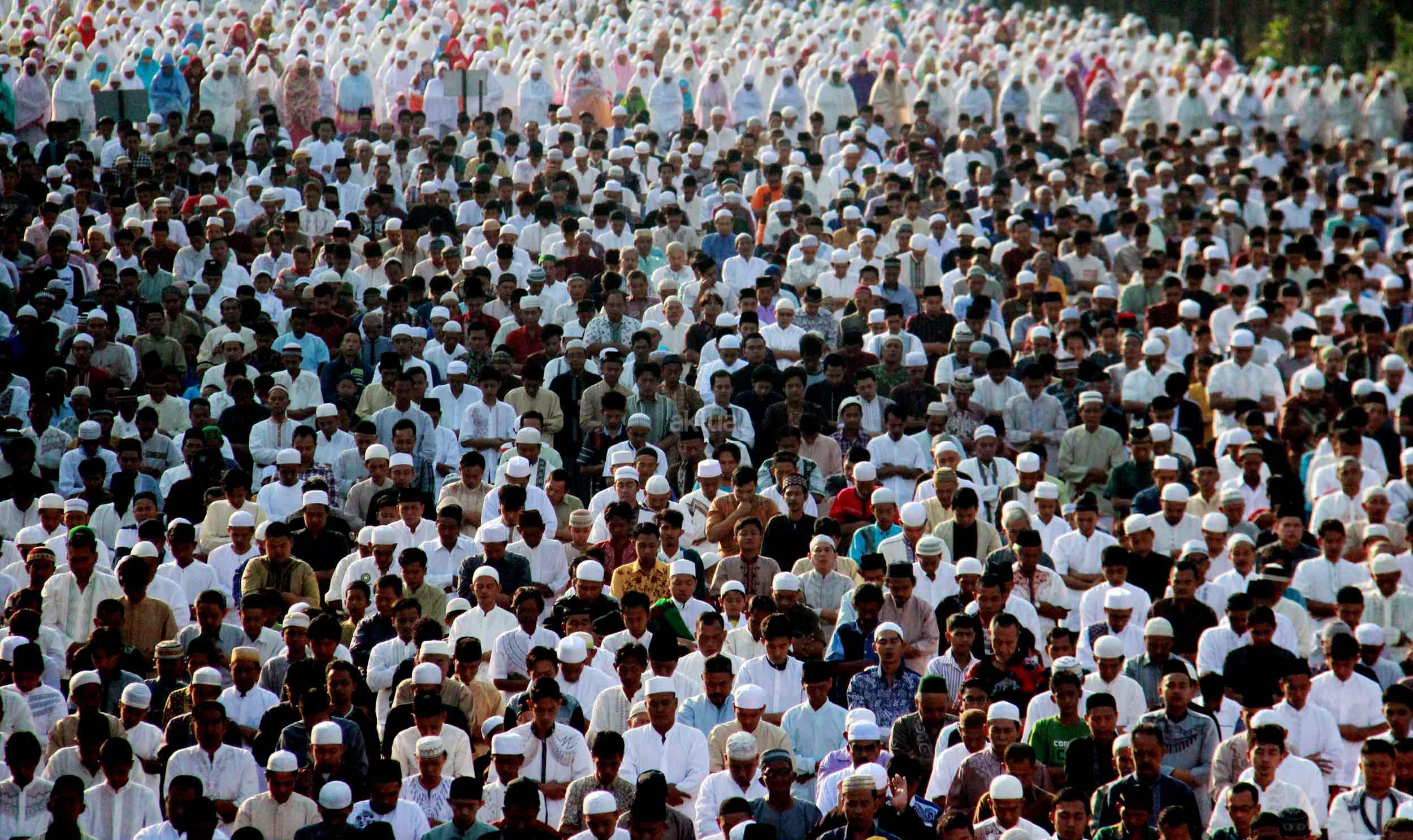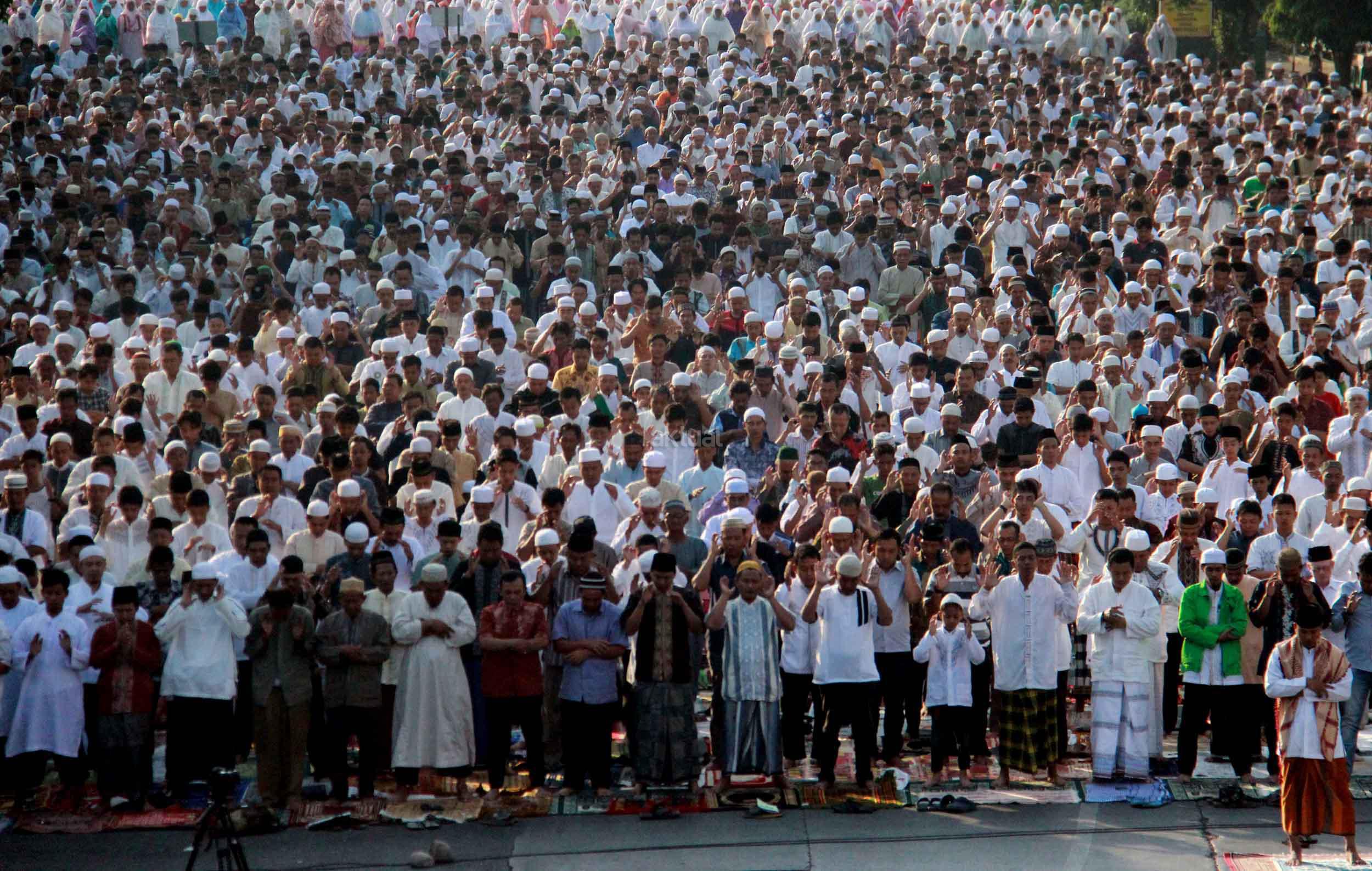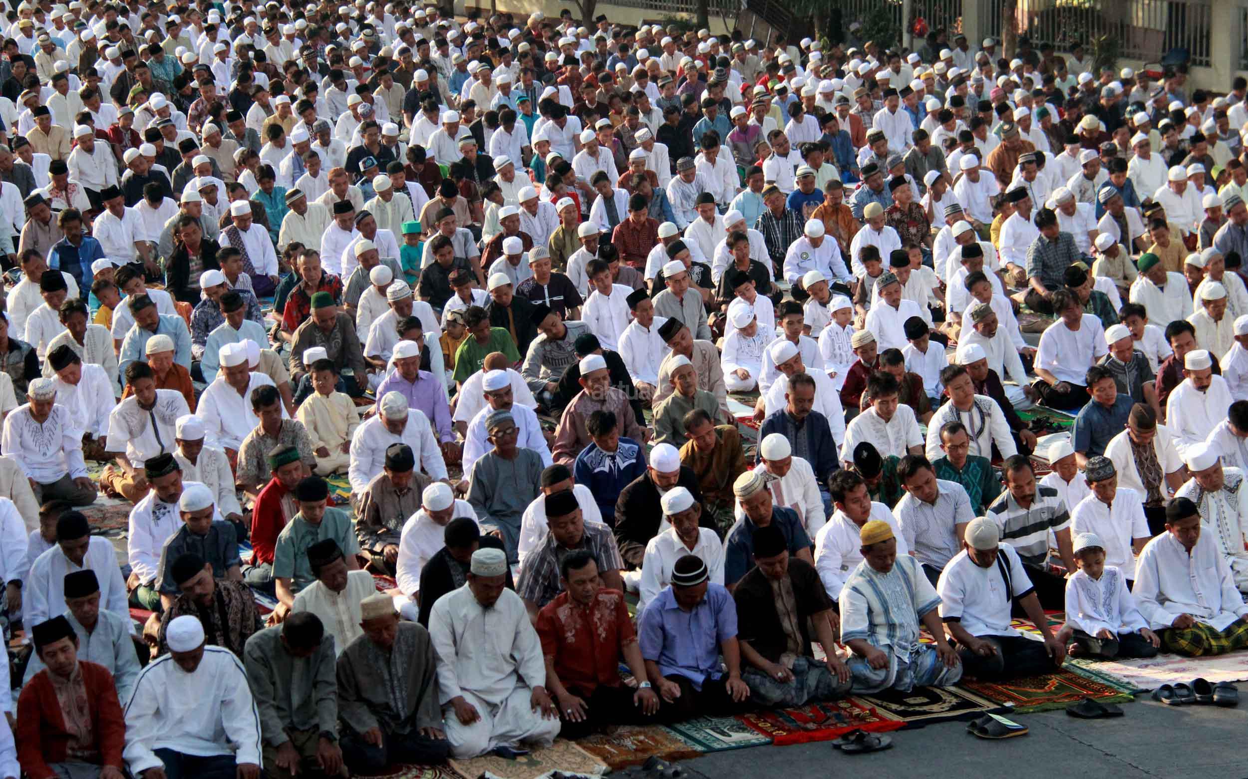 Ribuan umat muslim melaksanakan sholat Idul Adha 1436 H di simpang jalan Matraman Raya,Jatinegara, Jakarta Timur, Kamis (24/9/2015). Umat muslim di seluruh dunia merayakan Hari Raya Idul Adha dengan berkurban dan menyembelih hewan-hewan ternak, berupa kambing, sapi untuk dibagikan dagingnya kepada fakir miskin.