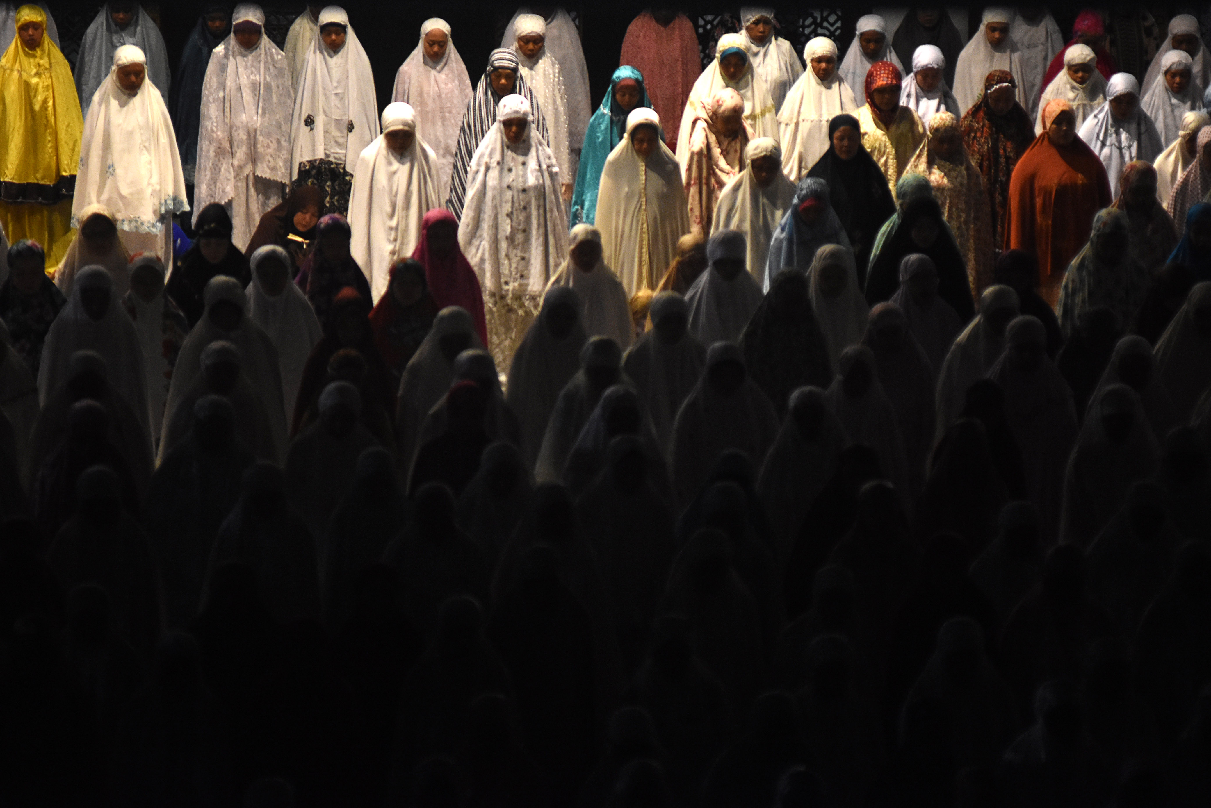 Umat muslim melaksanakan salat sunnah malam hari (qiyamul lail) berjamaah di Masjid Nasional Al-Akbar Surabaya, Jawa Timur, Minggu (26/6) dini hari. Pada 10 hari terakhir bulan Ramadan, warga muslim dari berbagai daerah mendatangi beberapa masjid untuk meningkatkan ibadahnya dengan melakukan Itikaf, membaca kitab suci dan menunaikan salat malam. ANTARA FOTO/M Risyal Hidayat/foc/16.