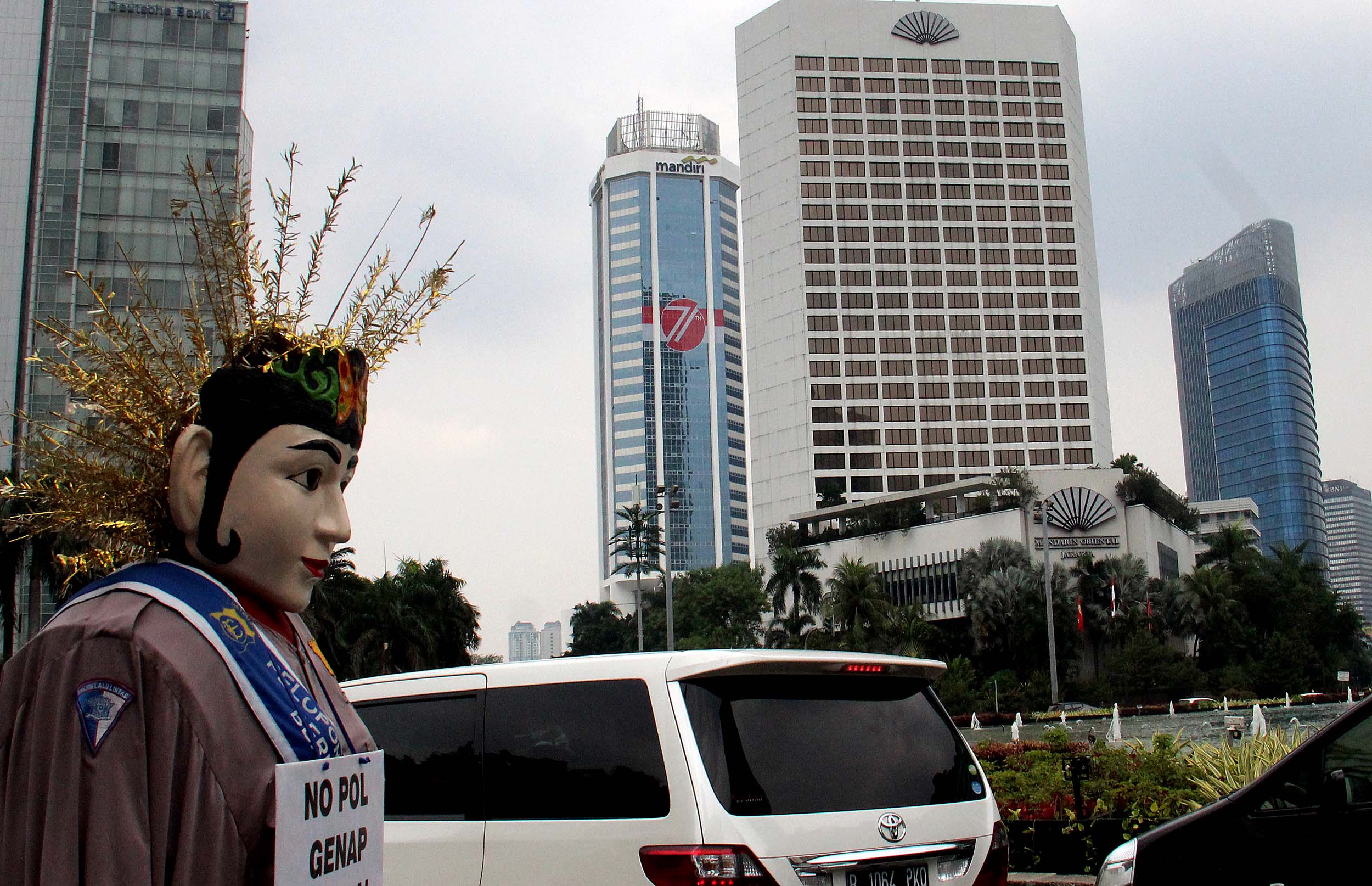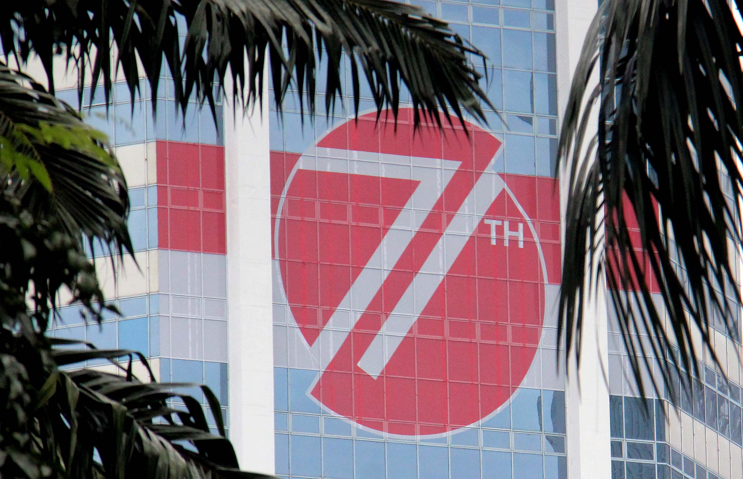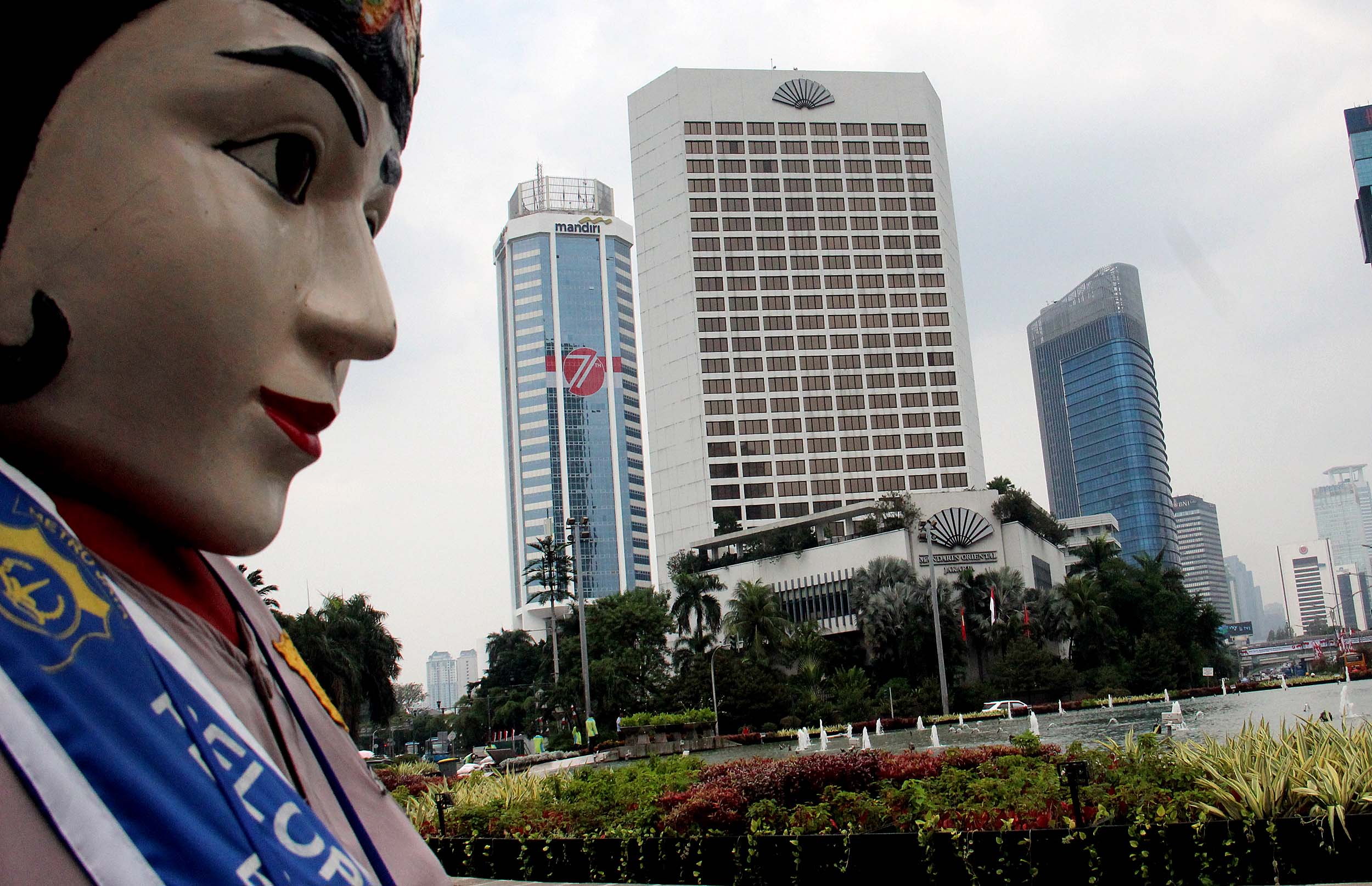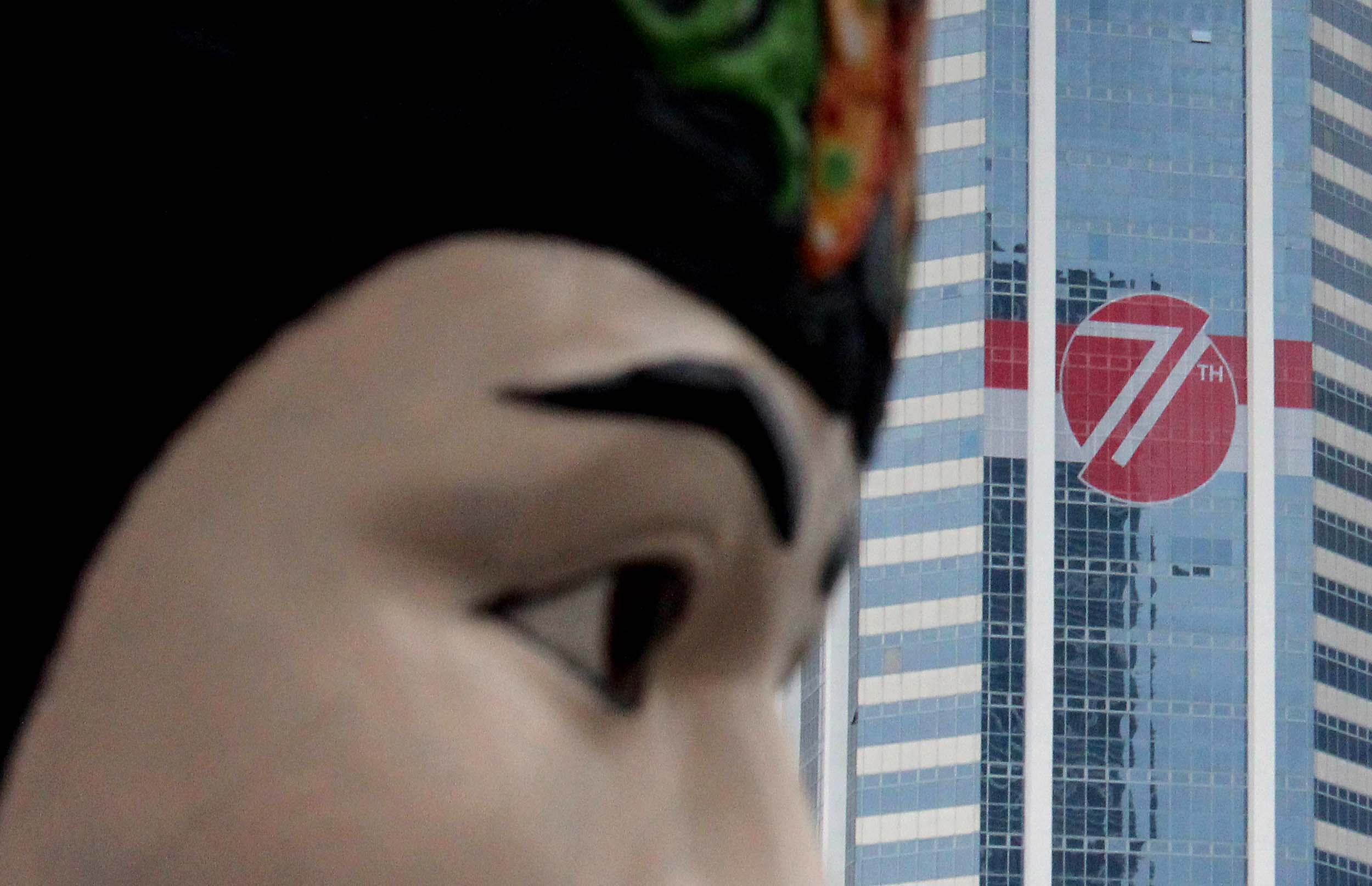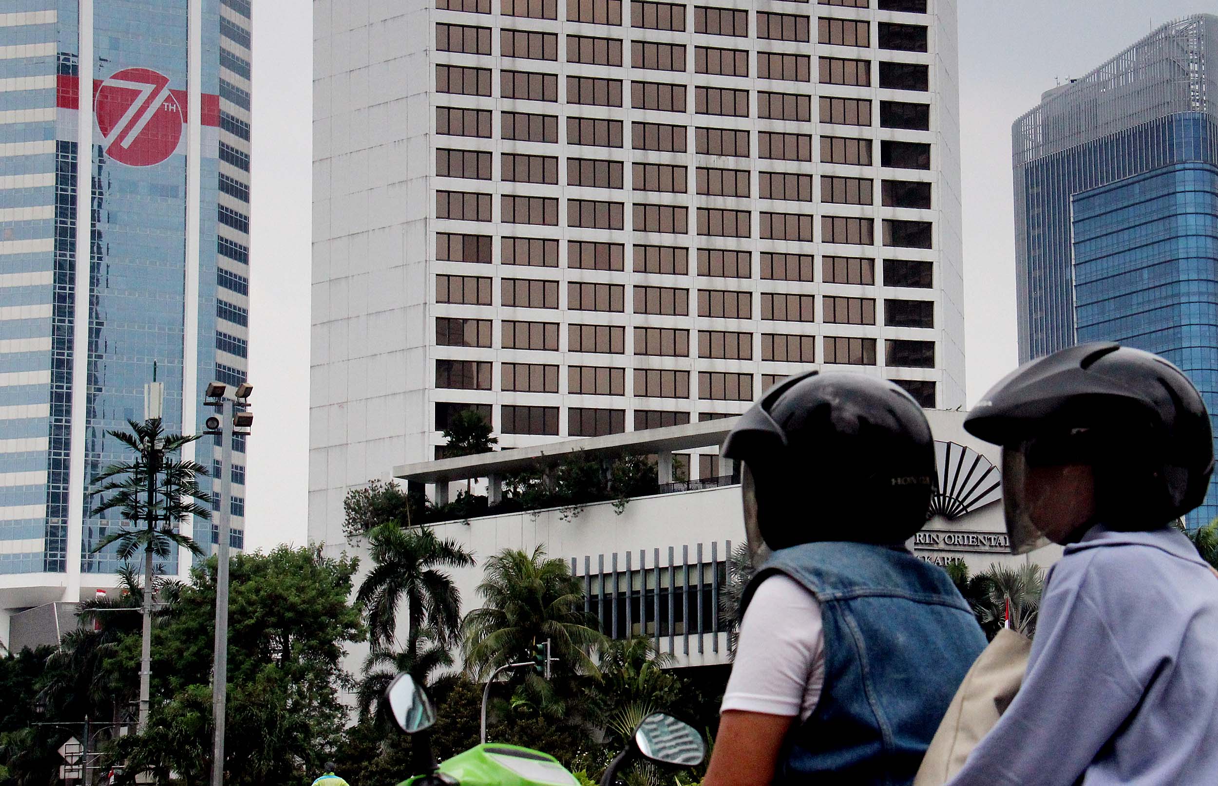 Terlihat stiker berlogo HUT Kemerdekaan Indonesia di salah satu gedung bertingkat di Jakarta, Selasa (16/8/2016). Pemasangan logo di gedung-gedung perkantoran baik pemerintahan maupun swasta ini dilakukan dalam rangka memeriahkan peringatan Hari Kemerdekaan ke-71 tahun Republik Indonesia.