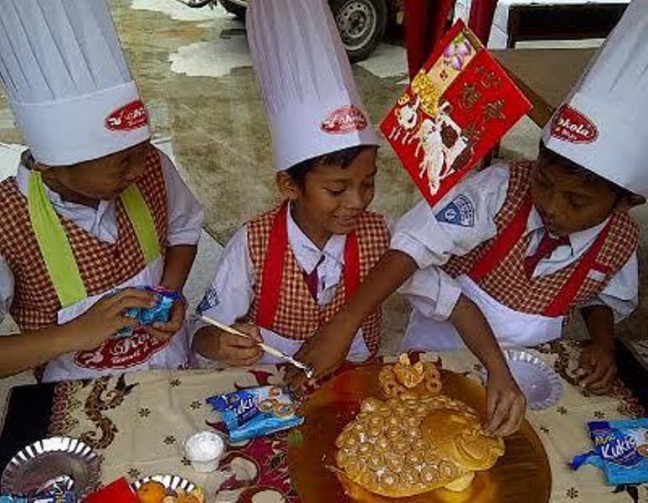 Jakarta, Aktual.co — Sebanyak 120 siswa sekolah dasar yang terbagi dalam 40 kelompok berlomba membuat replika kambing dari paduan biskuit sejumlah 2.566 keping kukis guna menyambut Tahun Baru Imlek 2015.