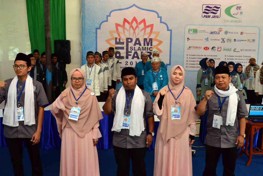 Sejumlah peserta mengikuti lomba pada kegiatan PAM Islamic Fair 2019 di Jakarta, Rabu (10/4). Dalam rangka menyambut bulan suci Ramadhan tahun 1440H, PAM Jaya menggar acara PAM Islamic Fair 2019 dengan mengusung tema " Jalin ukhuah dalam naungan Al-Quran". AKTUAL/Tino Oktaviano