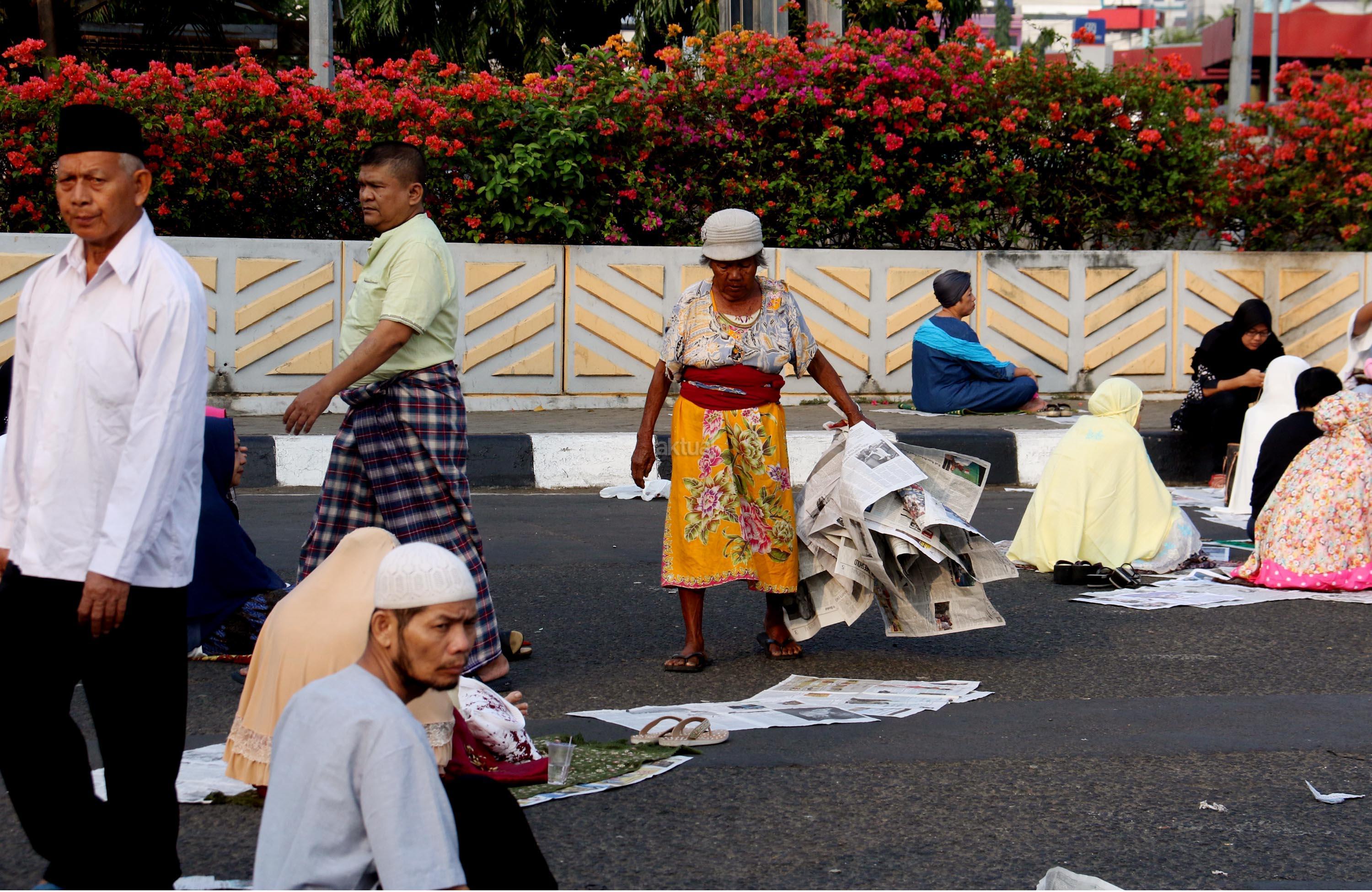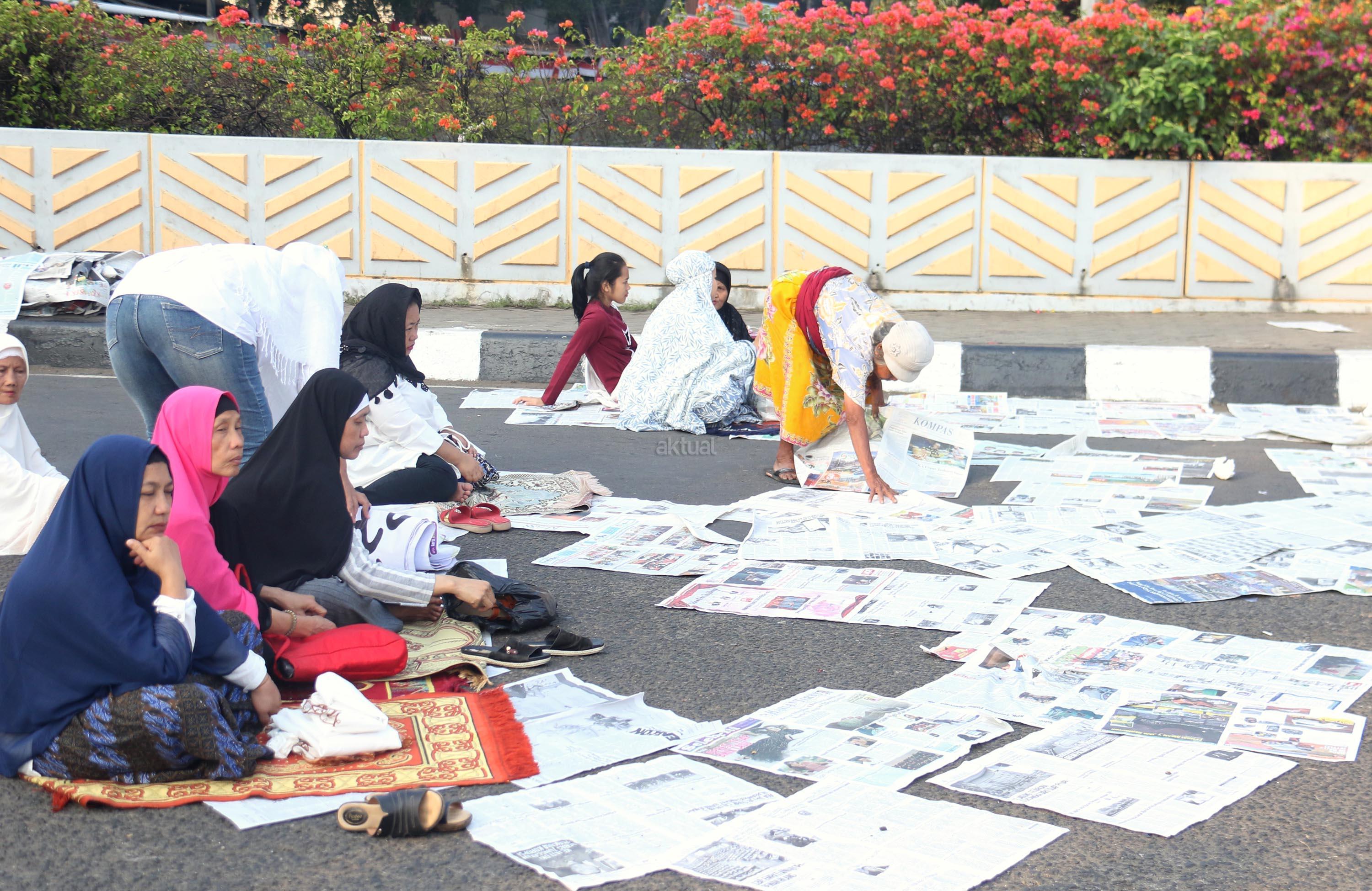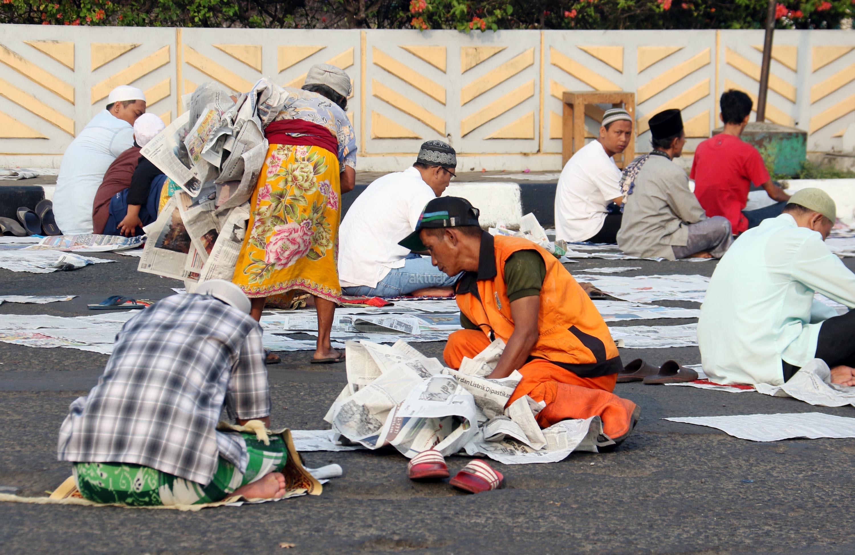 Usai solat Idul Adha, koran yang digunakan sebagai alas ditinggalkan begitu saja sehingga mengotori jalanan. AKTUAL/Munzir