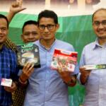 Cawapres Sandiaga Uno bersama politikus PKS yang juga Direktur Halal Network International (HNI) Agung Yulianto saat menghadiri seminar di Bekasi, Jawa Barat, Kamis (15/11/2018). Agung merupakan kader PKS yang disebut bakal diajukan sebagai calon Wagub DKI Jakarta. Dalam seminar tersebut, Sandiaga membahas bisnis dan ekonomi Indonesia di tahun 2019 hingga yang akan datang. AKTUAL/HO
