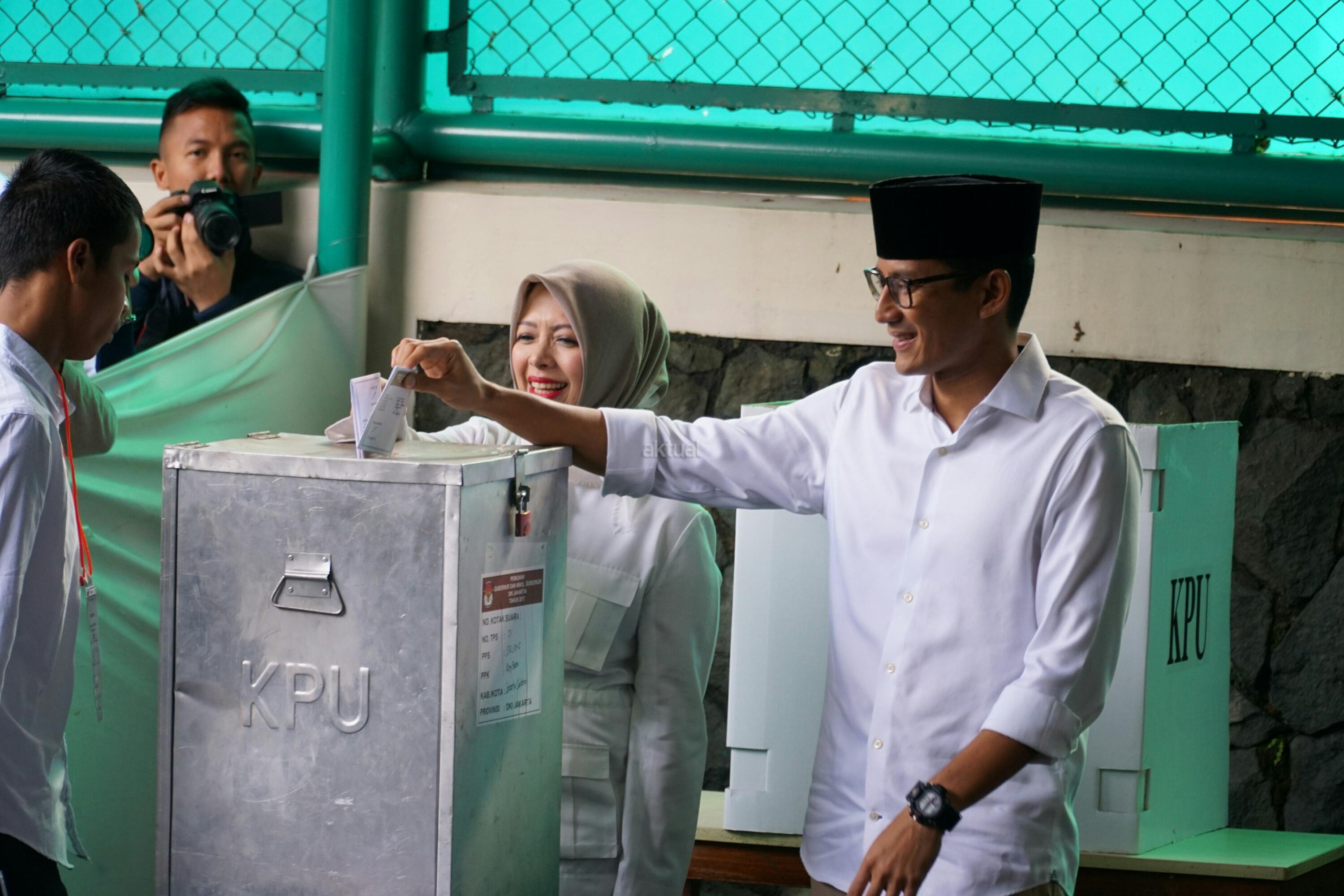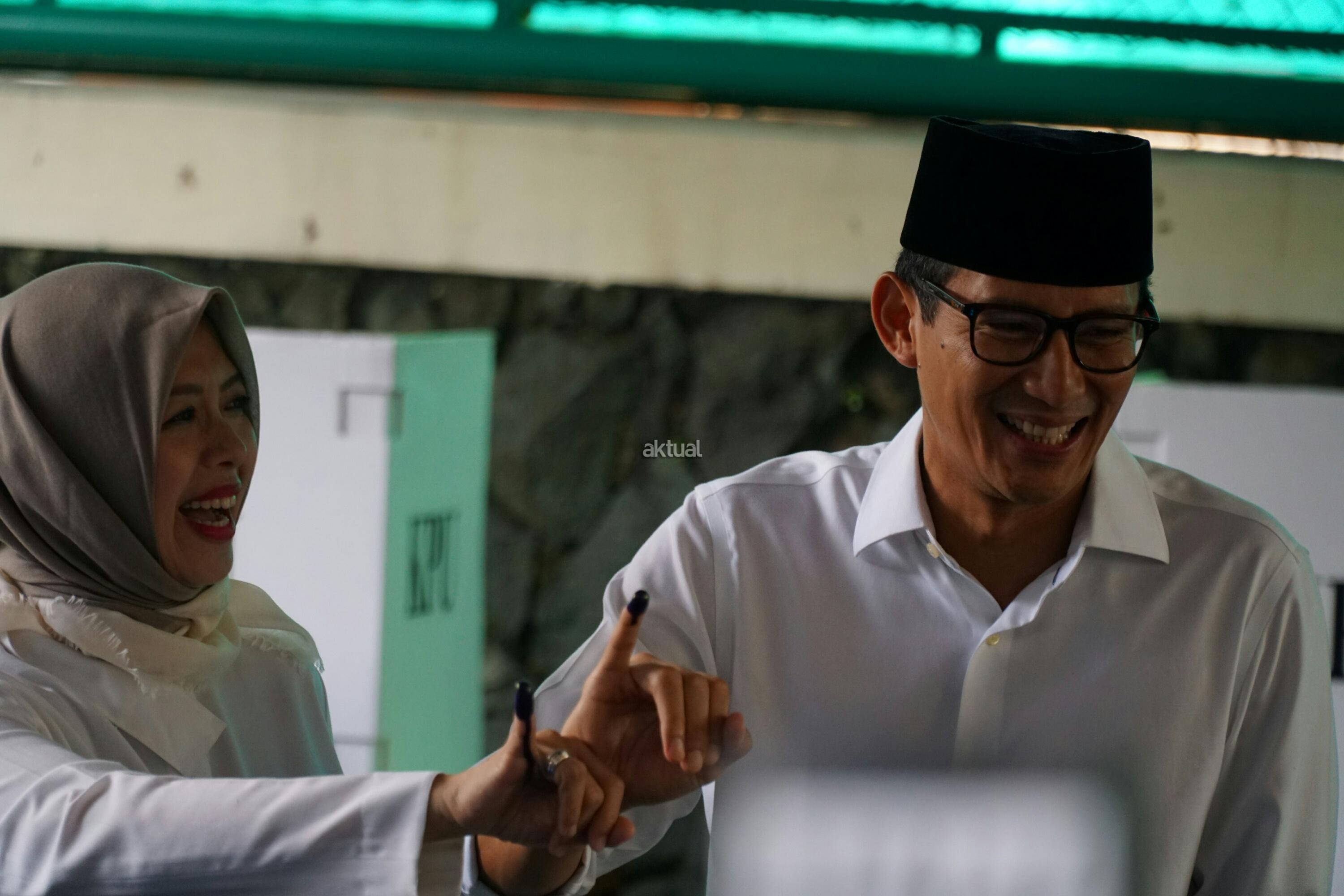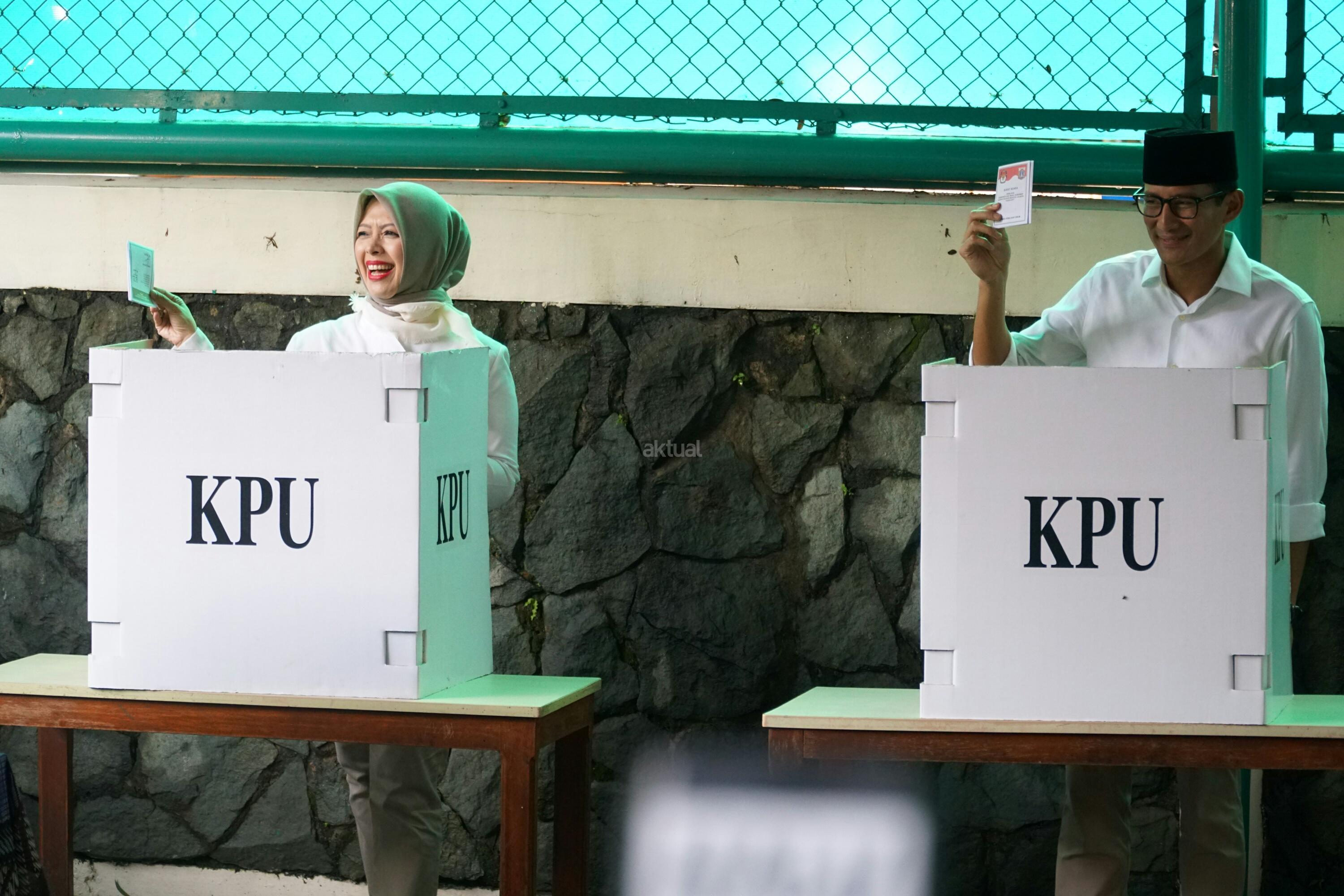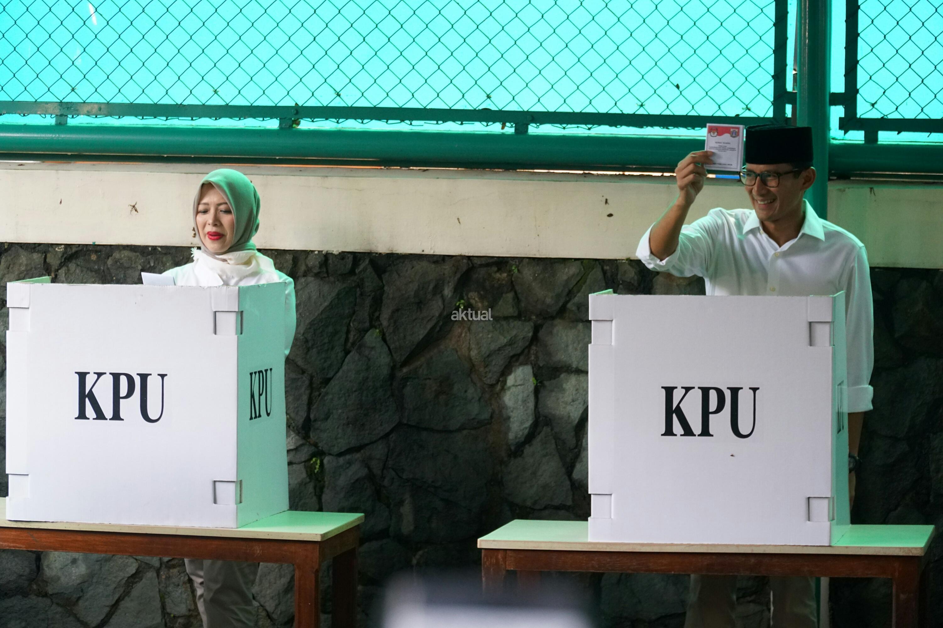 Sandiaga Uno Nyoblos Bareng Istri, Anak dan Orangtuanya