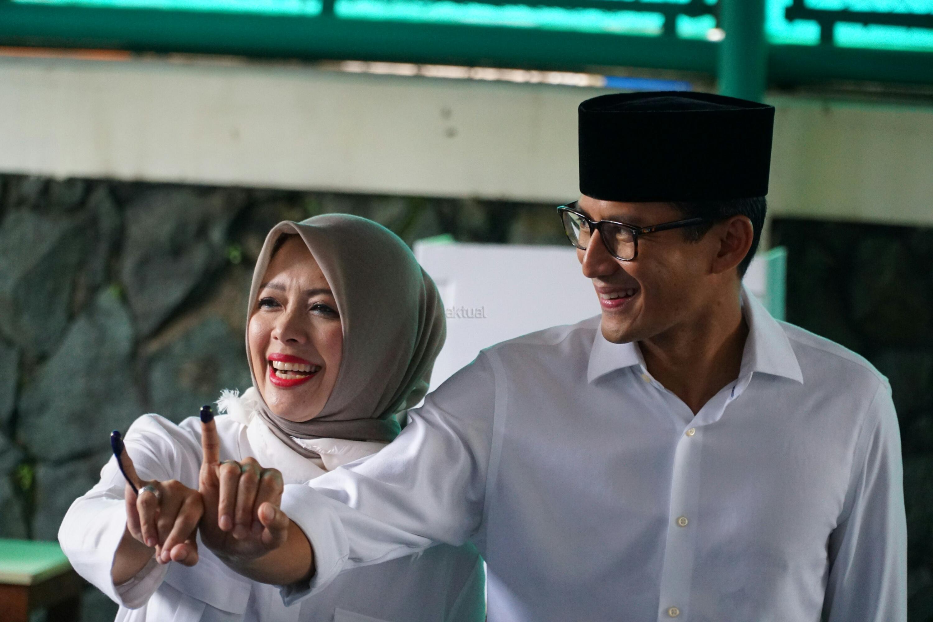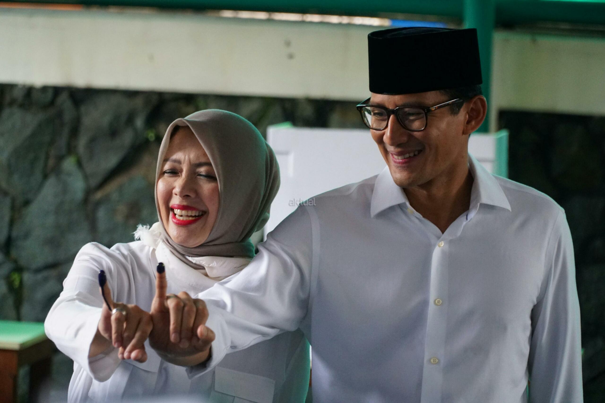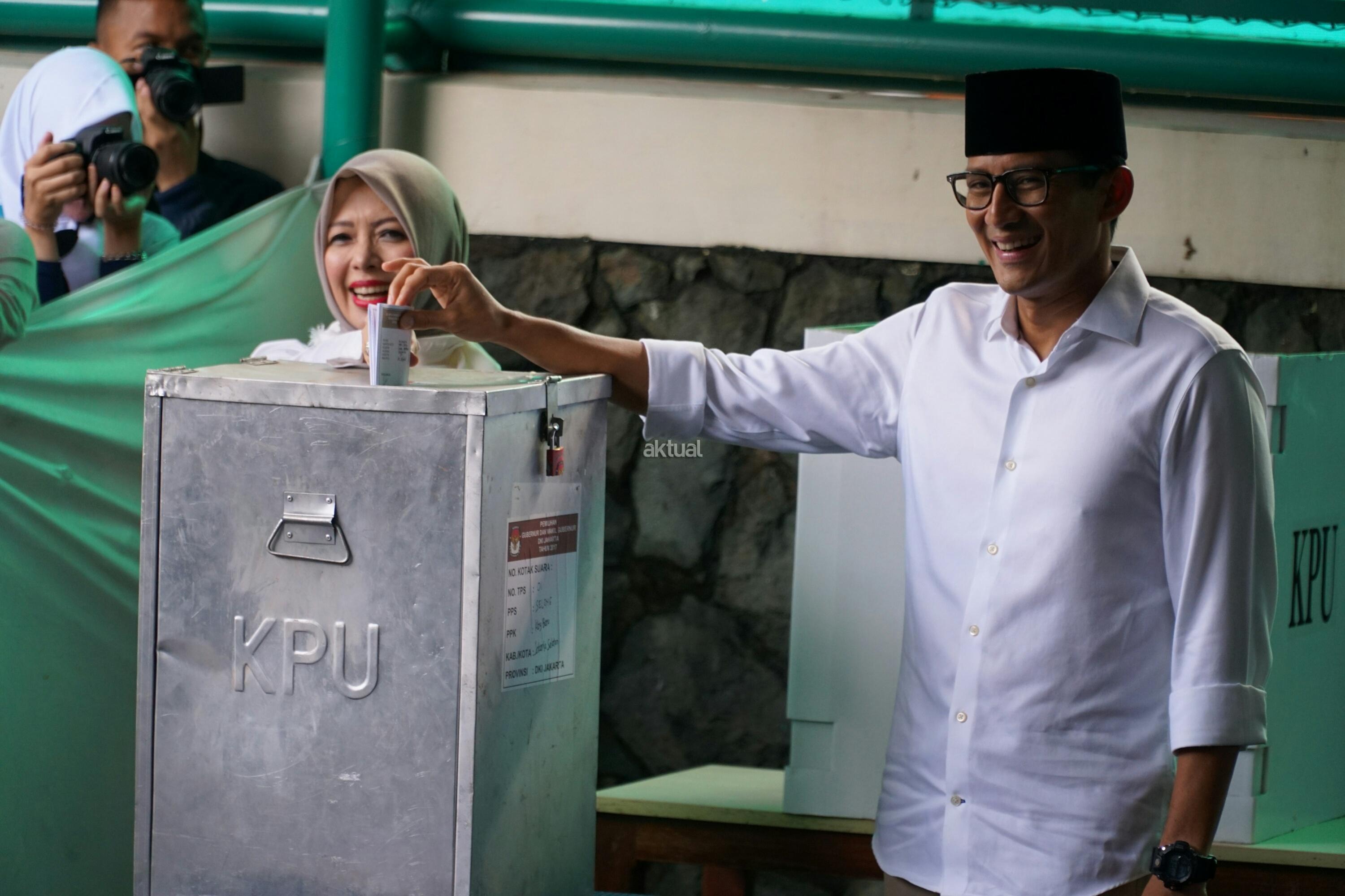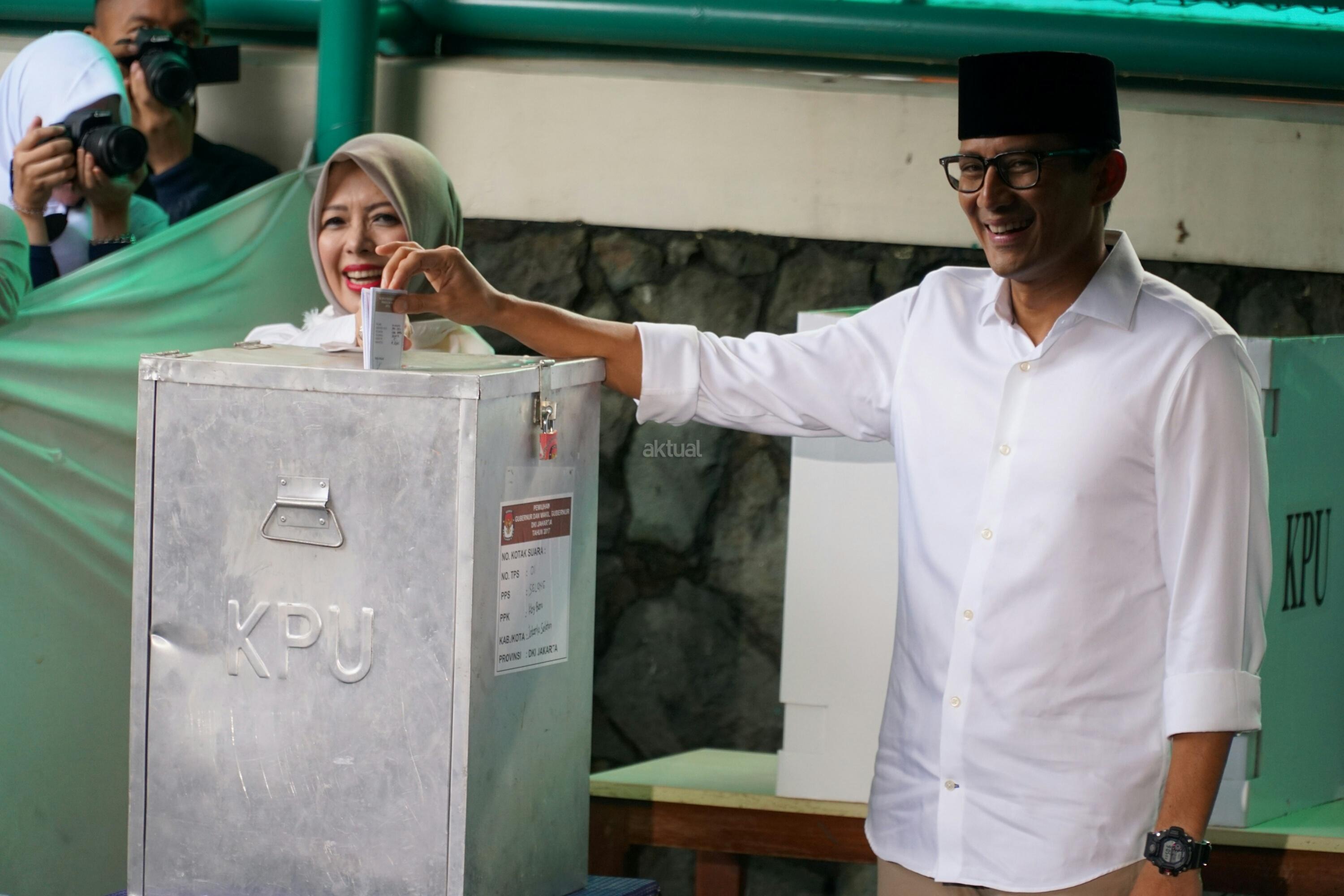 Sandiaga Uno Nyoblos Bareng Istri, Anak dan Orangtuanya