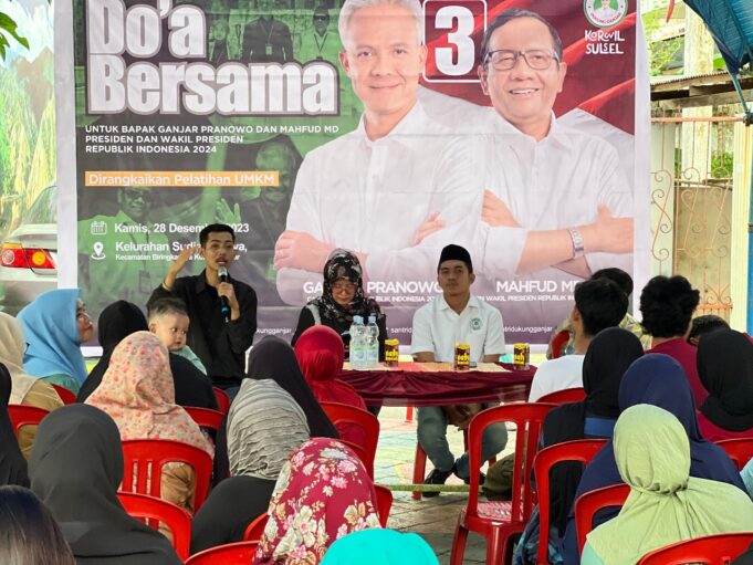 Makassar, Aktual.com – Sukarelawan Santri Dukung Ganjar (SDG) Sulawesi Selatan mengadakan Pelatihan Usaha Mikro Kecil Menengah (UMKM) yang diikuti ratusan warga di Kota Makassar, Sulawesi Selatan, Sabtu (30/12/2023).