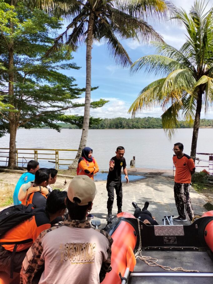 Kak Adi Barmana dari Basarnas Pekanbaru sebagai pemateri menyampaikan bahwa dalam kegiatan ini ada lima poin yang harus dapat dipelajari sebagai basic water rescue.