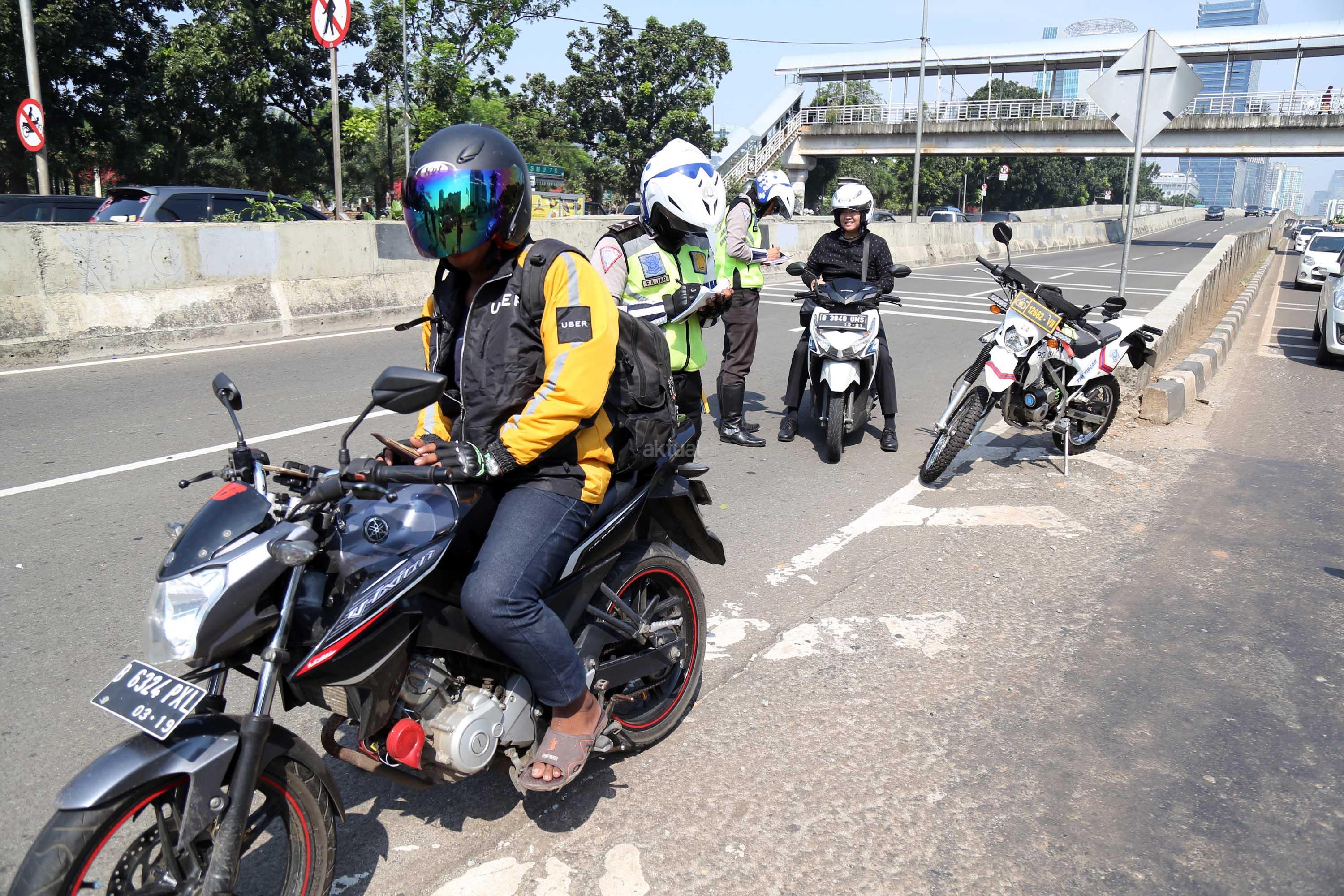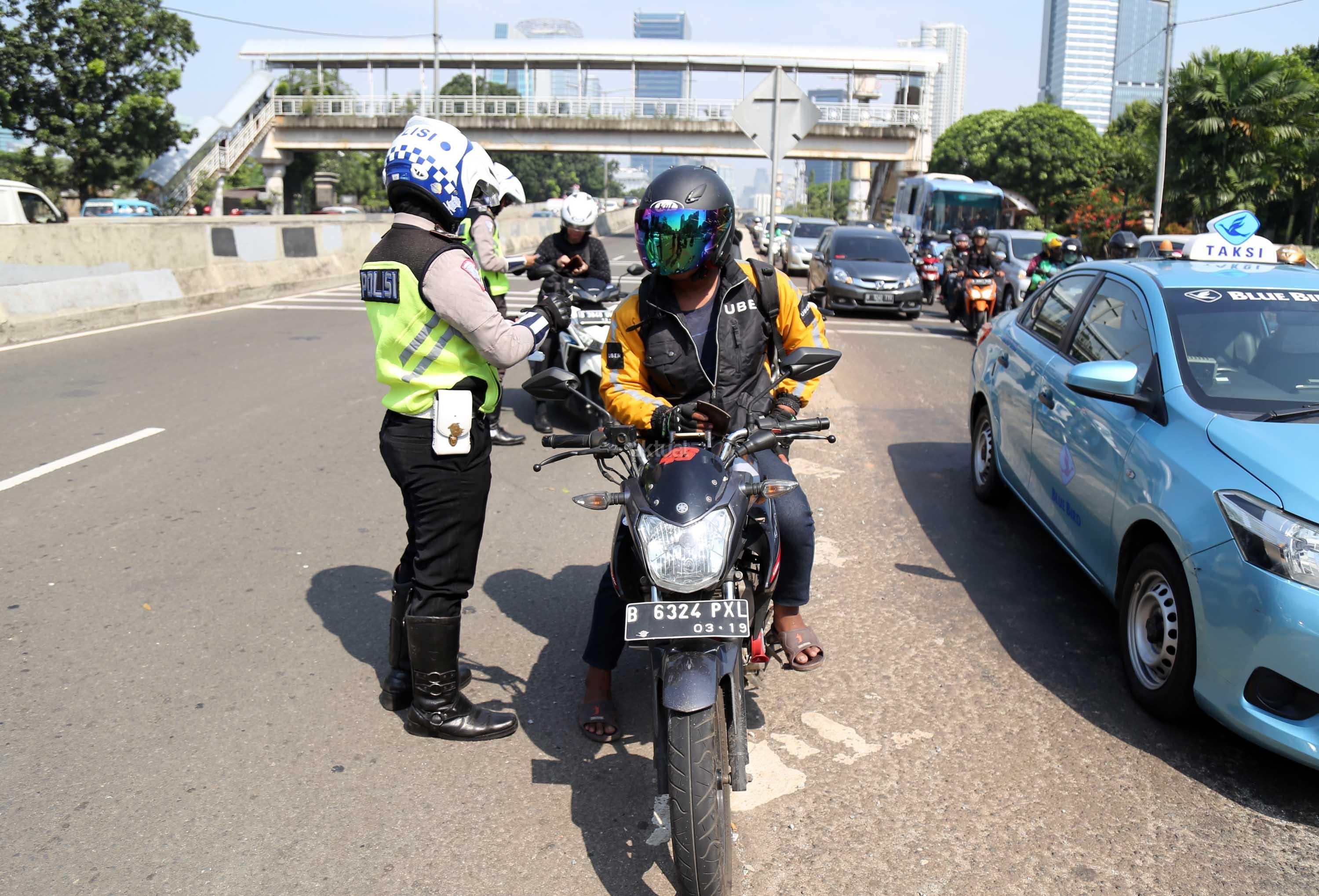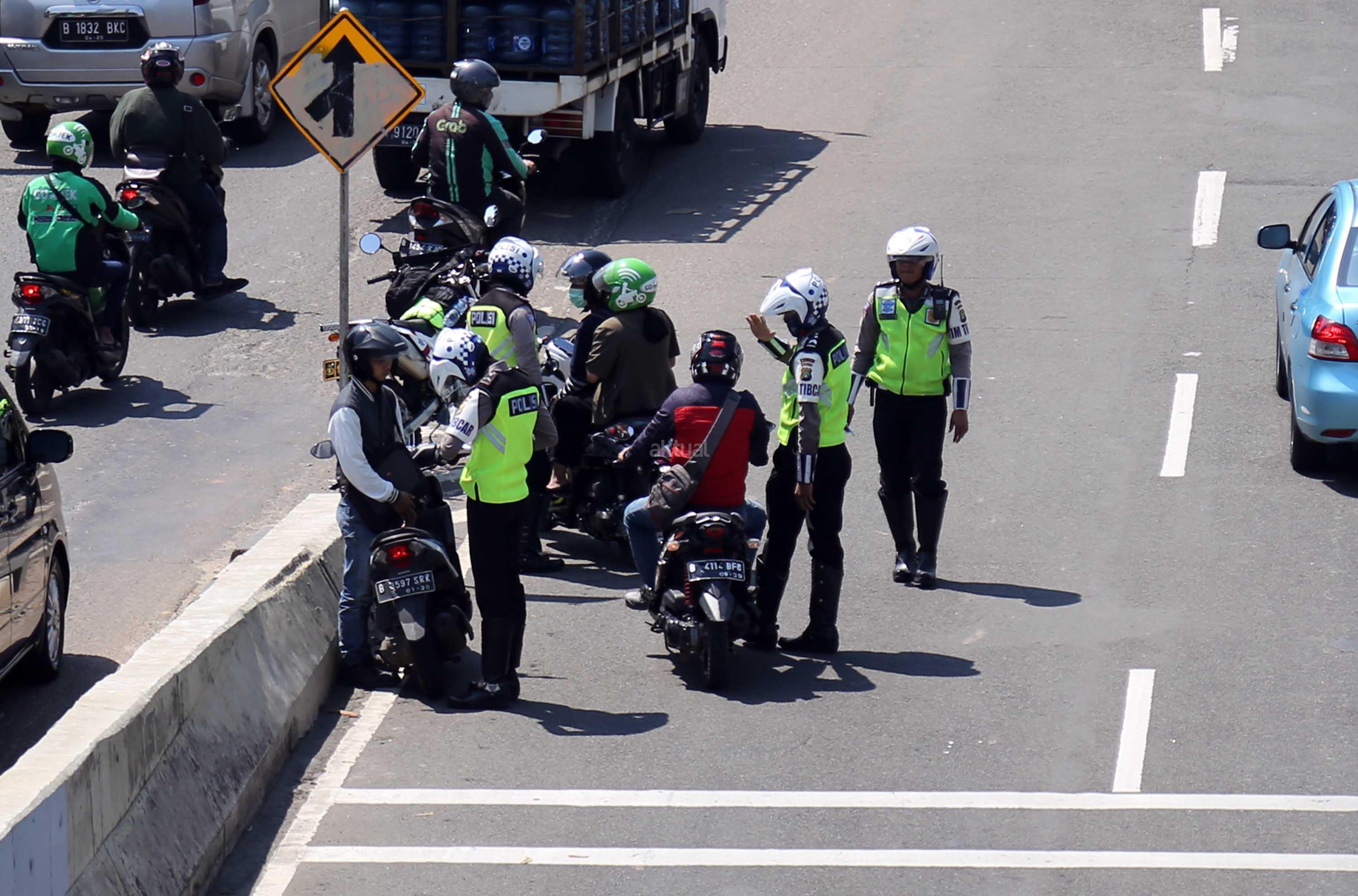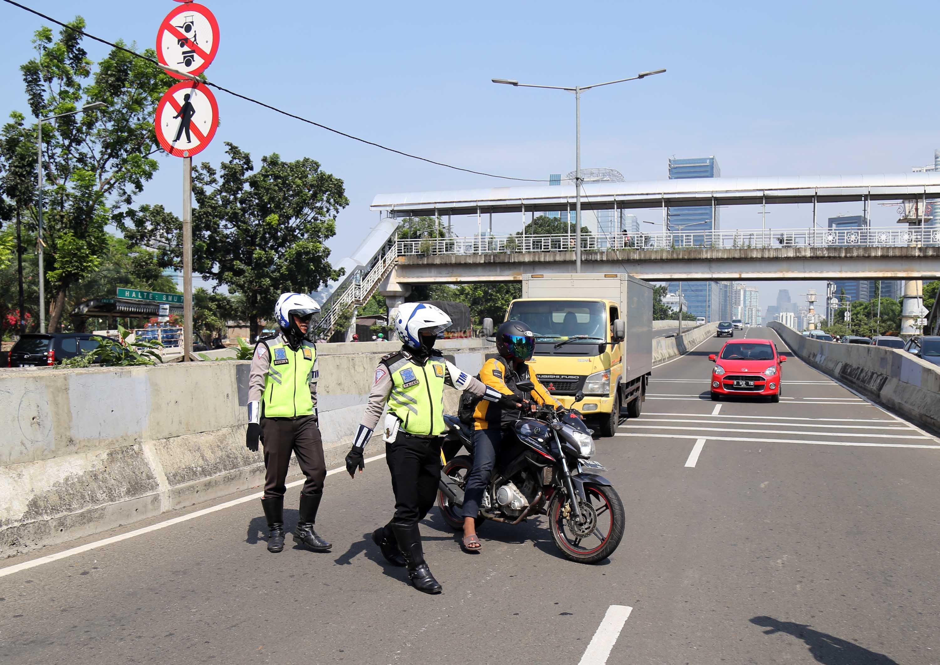 Satuan Tibcar Polda Metro Menilang Pengendara Sepeda Motor yang Melintasi JLNT