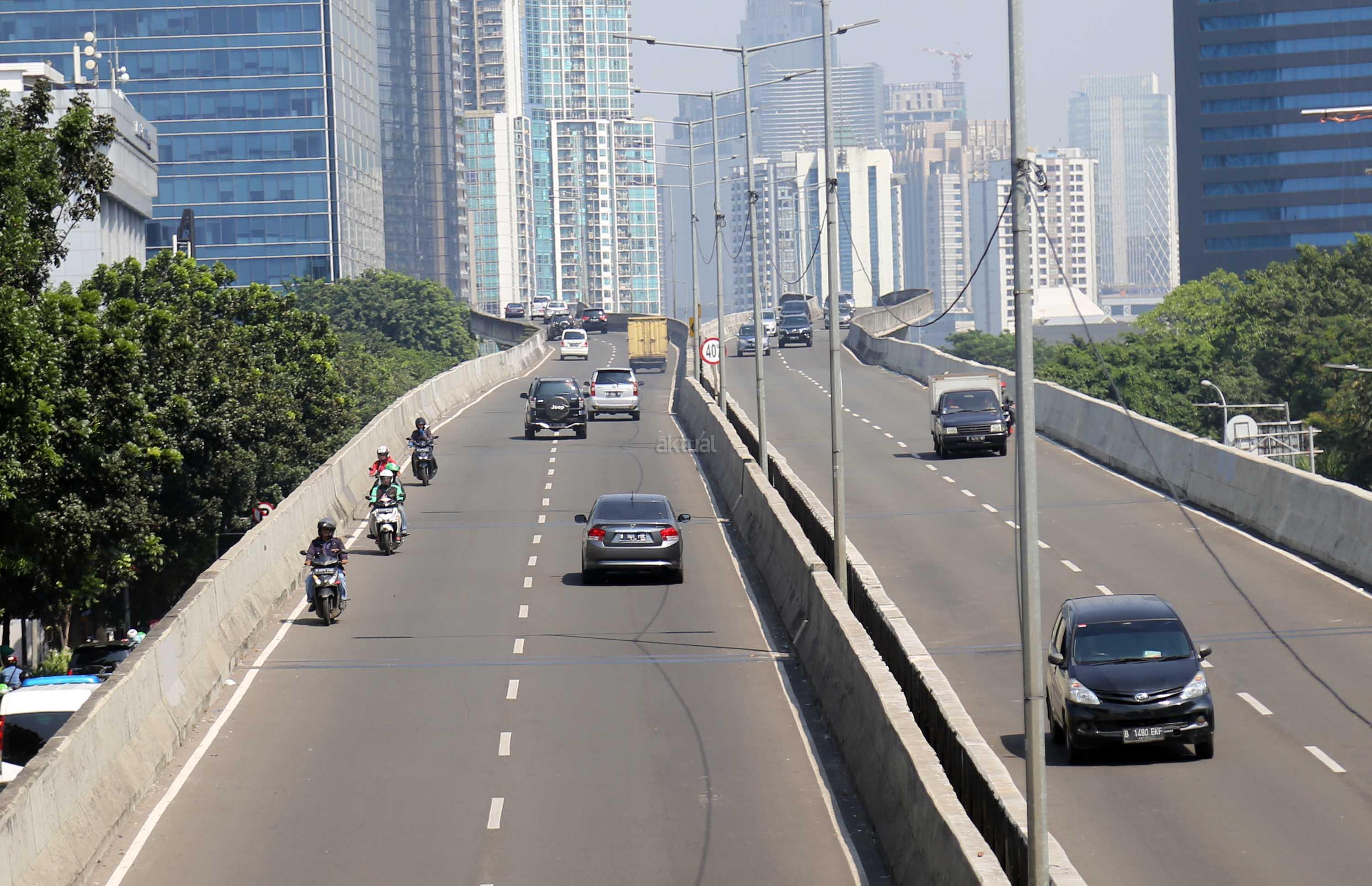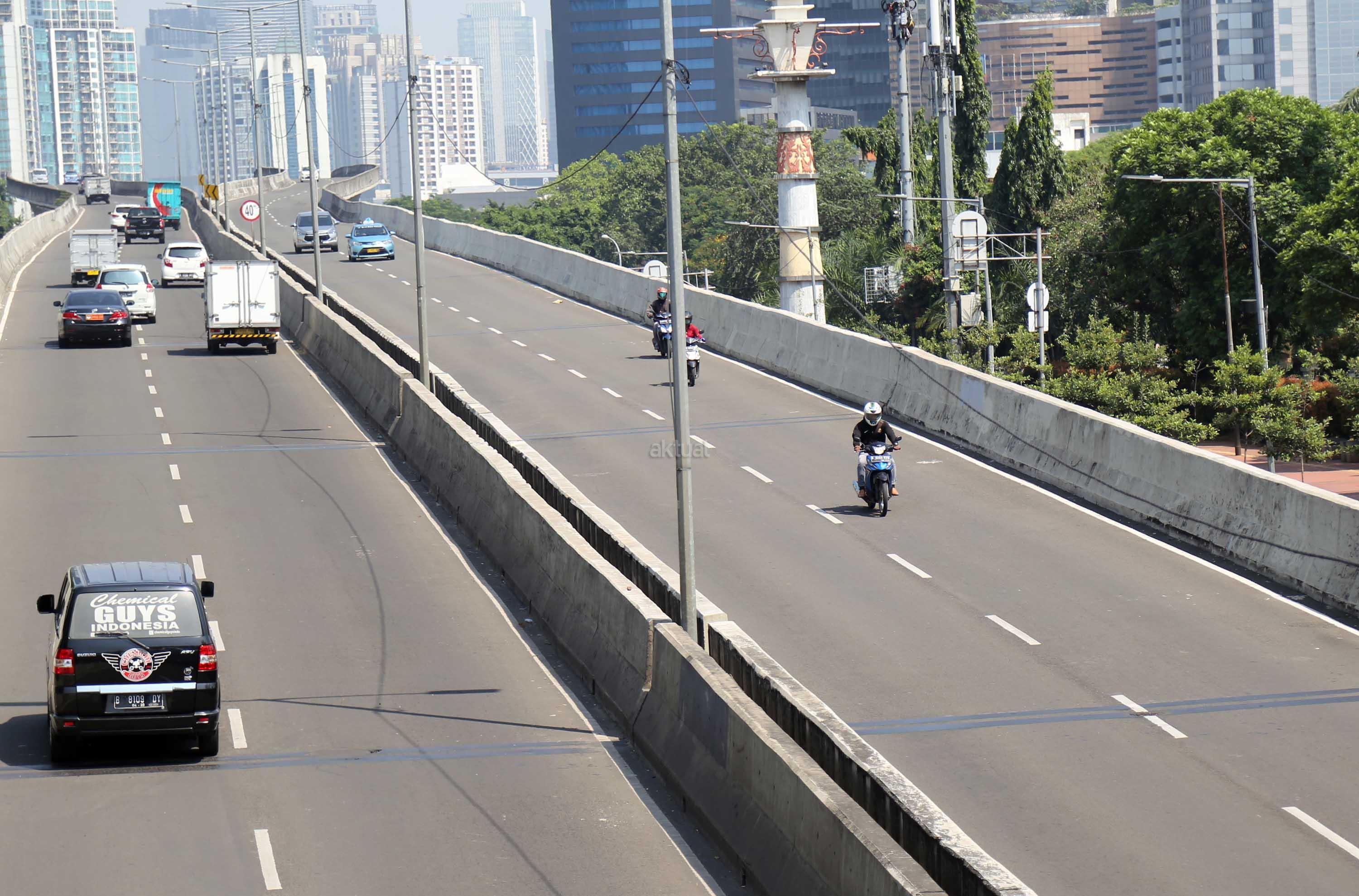 Pengendara sepeda motor yang melintasi Jalan Layang Non Tol Casablanca, Jakarta Selatan, Rabu (26/7). Razia dilakukan untuk membuat jalan layang itu steril dari para pengendara sepeda motor. AKTUAL/Tino Oktaviano