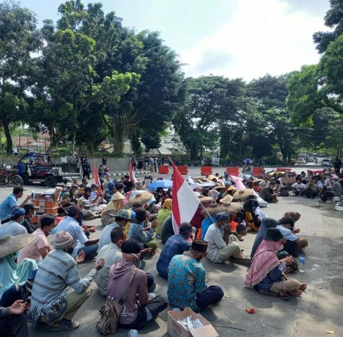 Ratusan Petani Kabupaten Lebak,Provinsi Banten di halaman komplek kantor pemerintah Kabupaten Lebak menuntut perusahaan pasir untuk membayar ganti rugi akibat limbah yang membuat areal persawahan tidak bisa digarap untuk penanaman padi dan palawija.