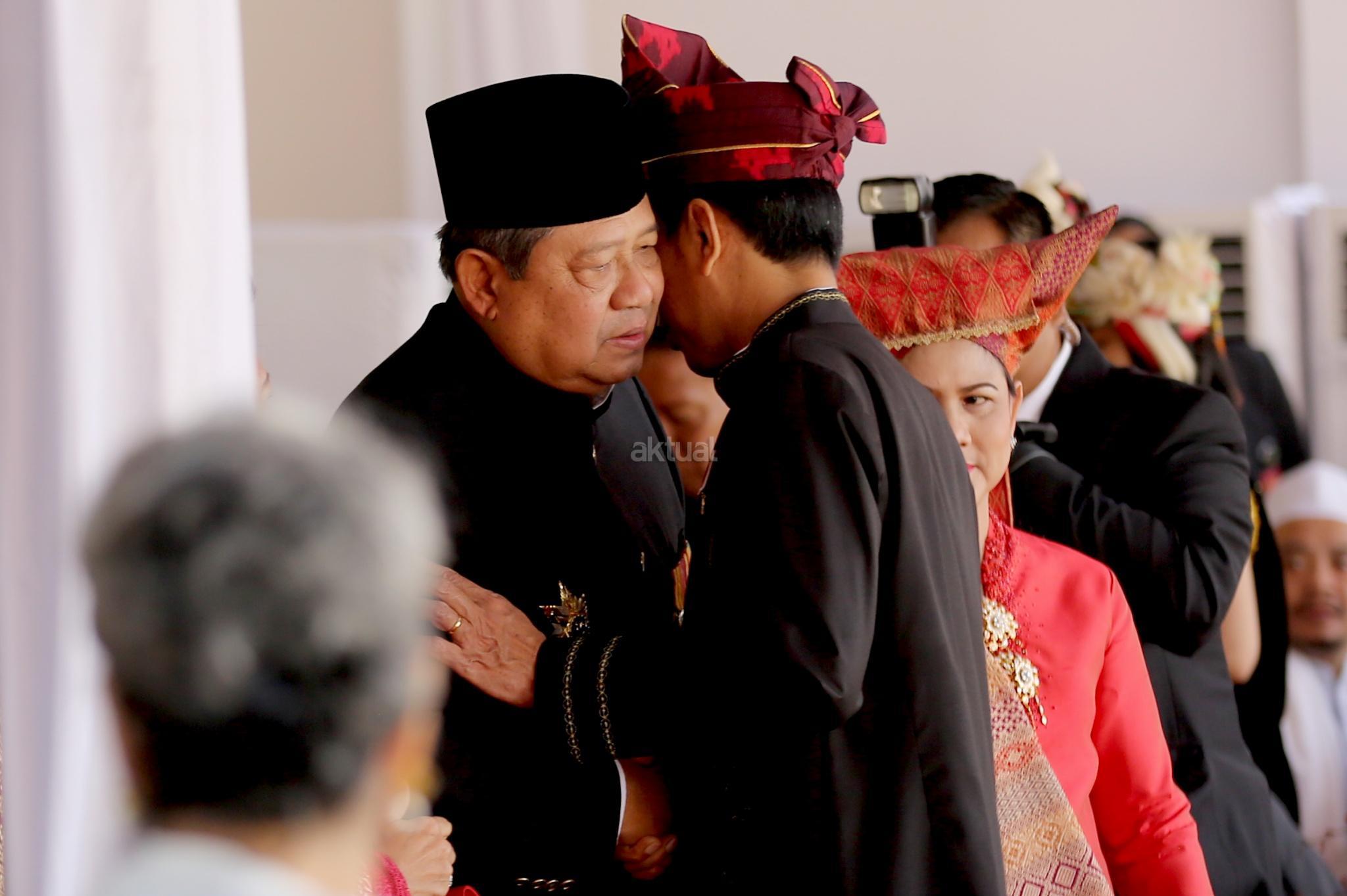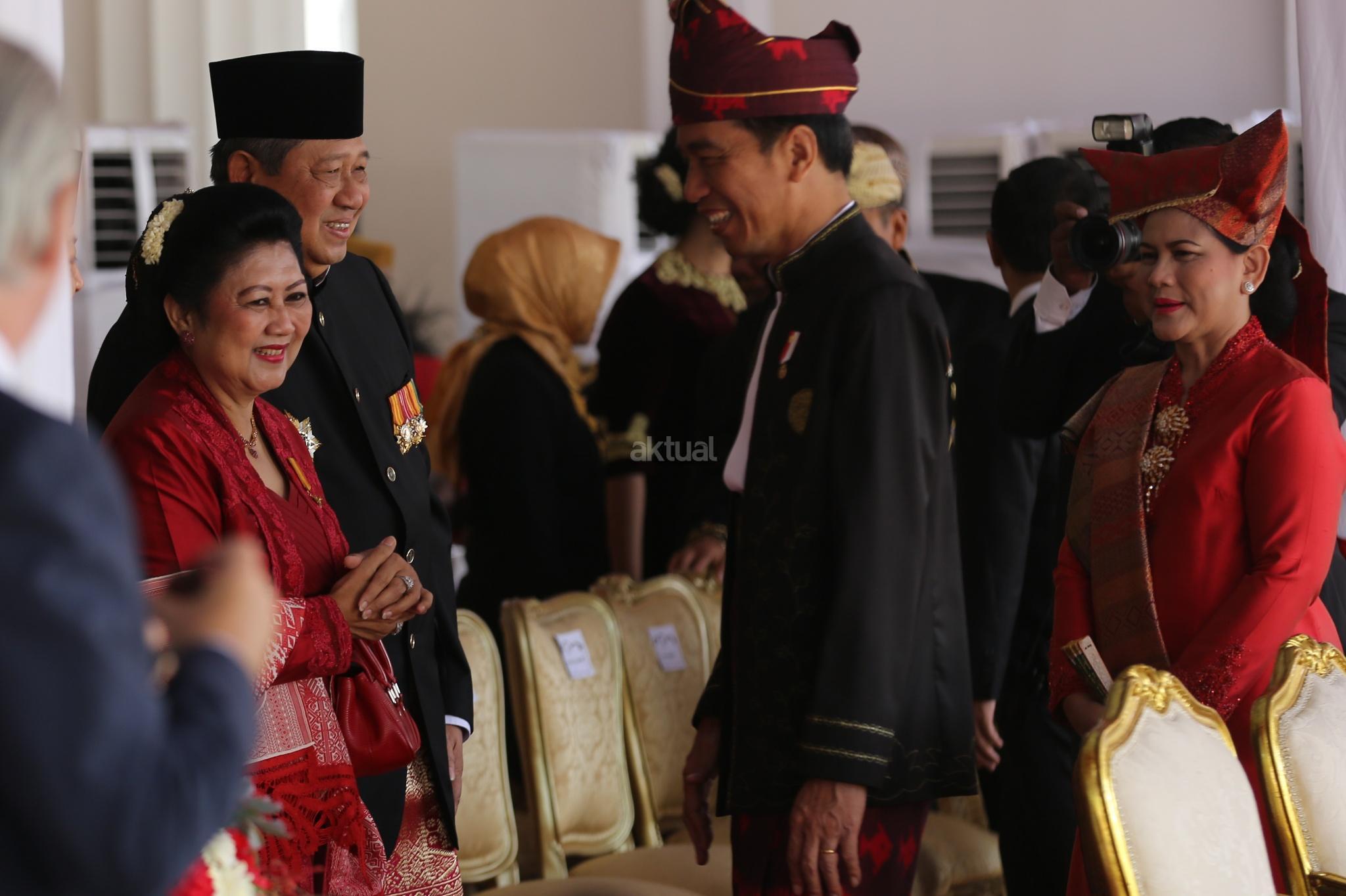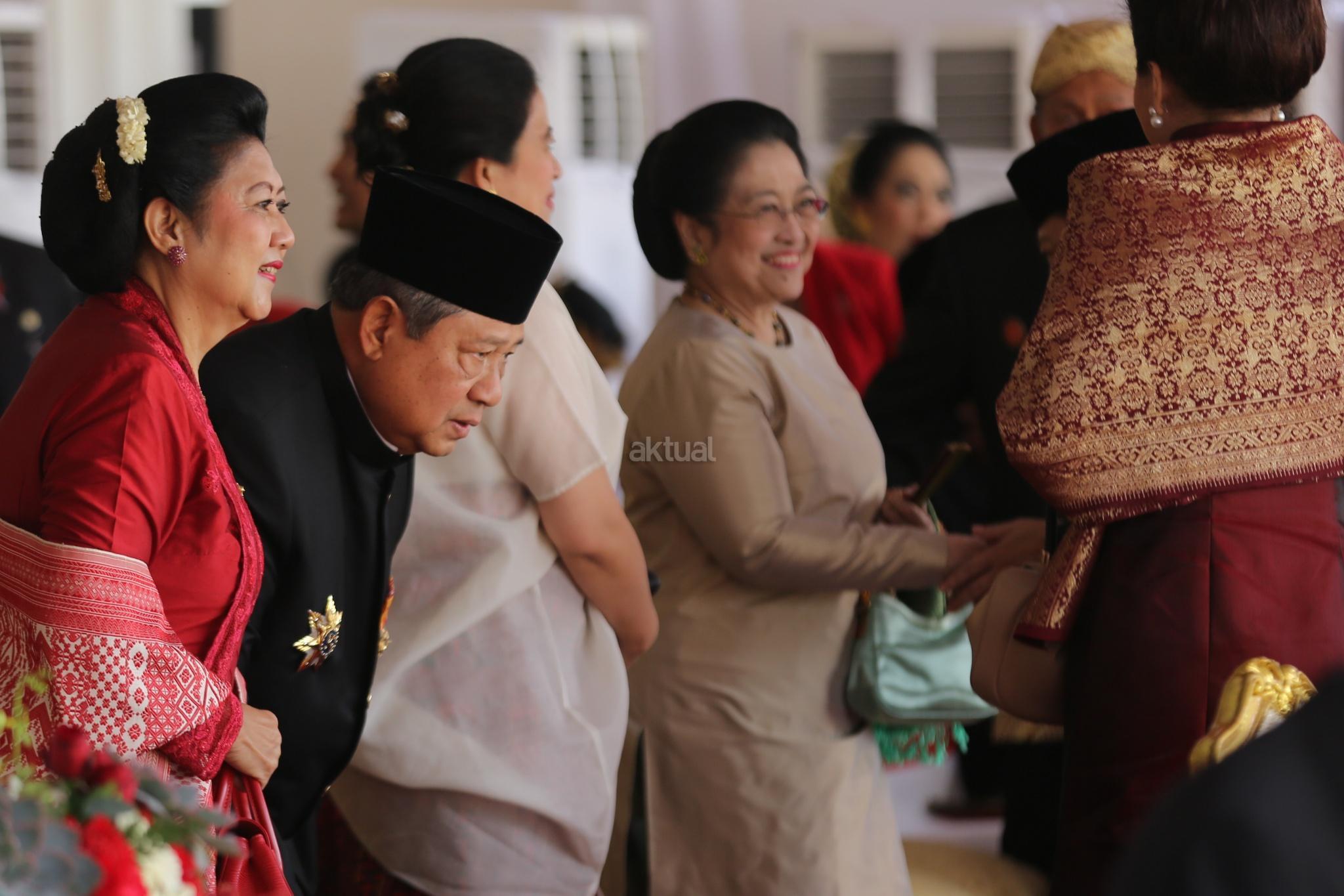 Presiden RI ke 6 Susilo Bambang Yudhoyono didampingi Ibu Ani Yudhoyono saat HUT RI ke-72 di Istana Merdeka, Jakarta, Kamis (17/8). SBY datang bersama Ibu Ani Yudhoyono mengenakan pakaian adat Melayu dan menyapa para tamu undangan termasuk Presiden RI ke 5 Megawati Soekarnoputri. AKTUAL/Stringer/Chicarito