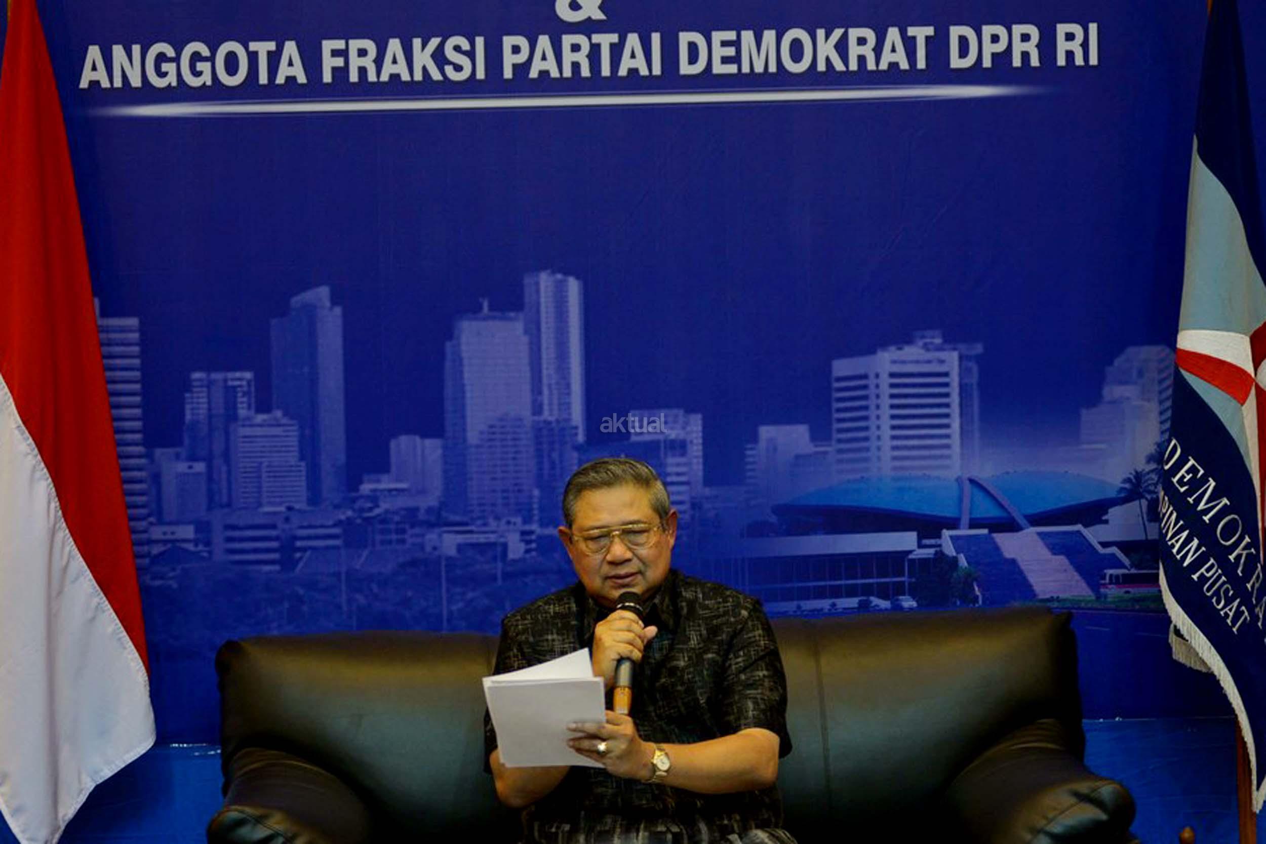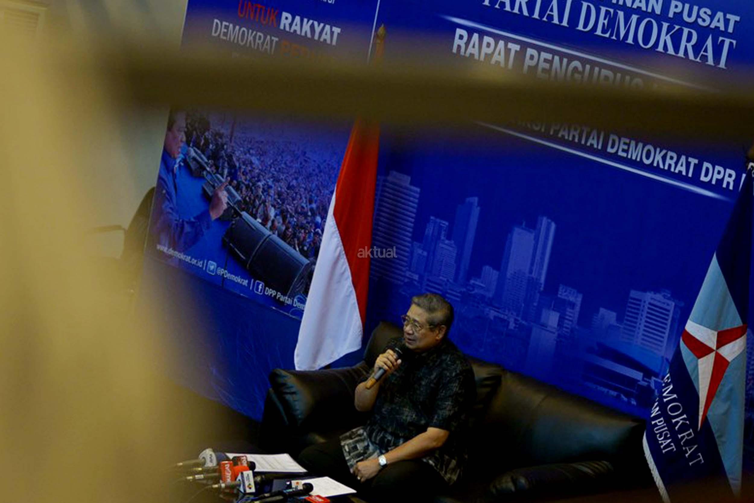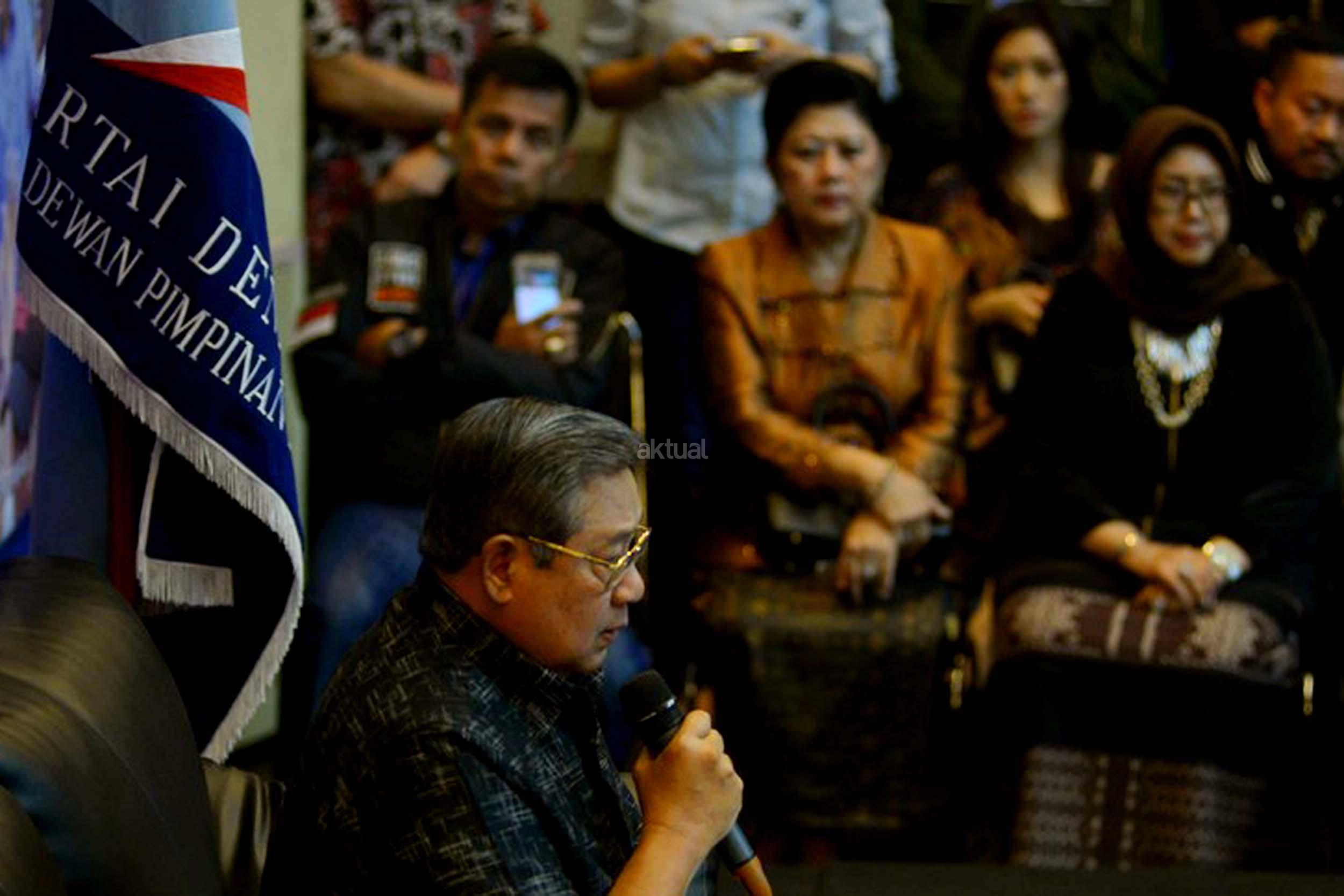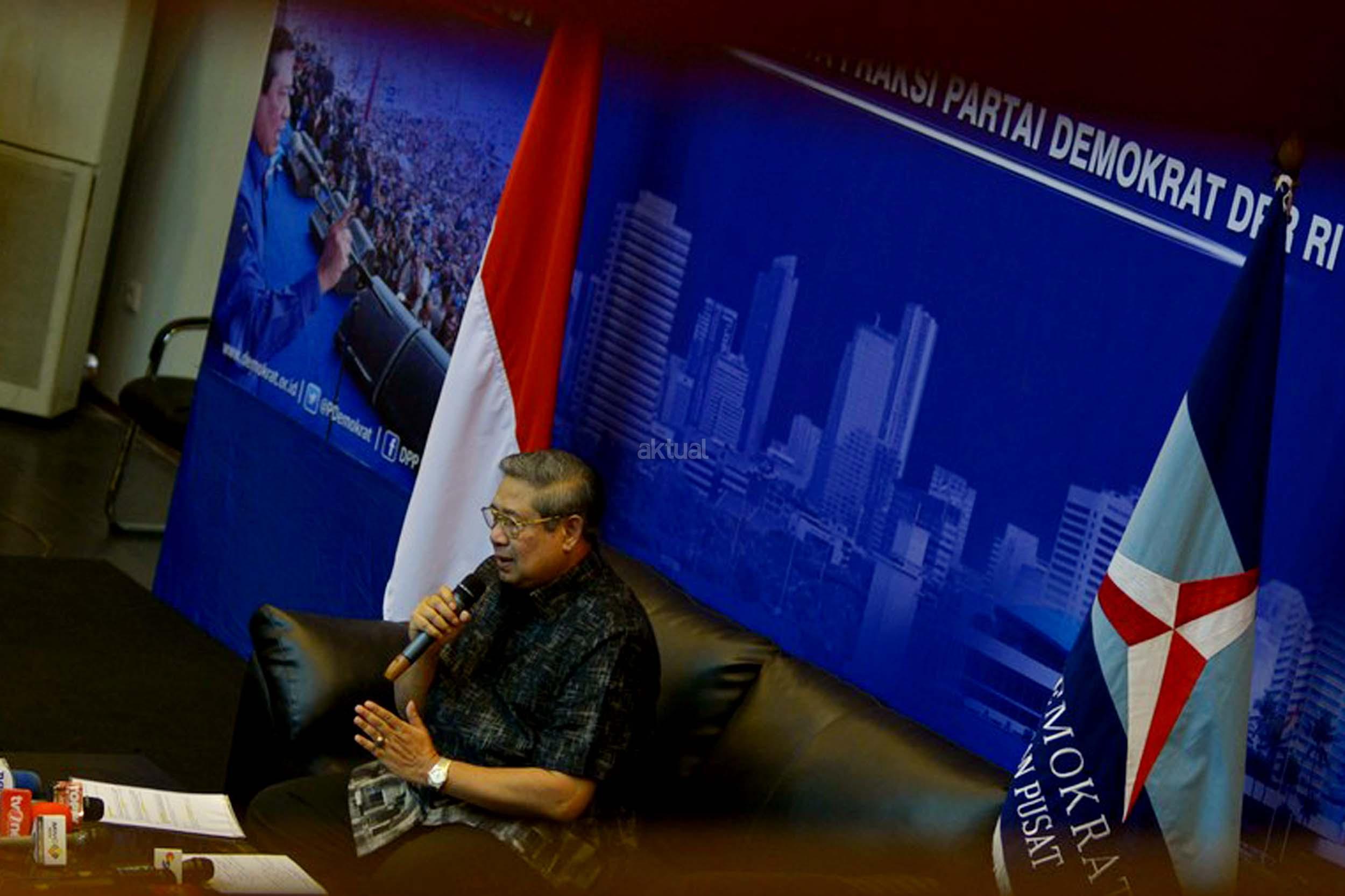 Ketua Umum Partai Demokrat, Susilo Bambang Yudhoyono memberikan klarifikasi terkait penyadapan dirinya dengan Ketua MUI Ma'ruf Amin, Jakarta, Rabu (1/2/2017). SBY angkat bicara terkait penyadapan percakapan telepon dia dengan Ketum MUI Ma'ruf Amin yang disebut-sebut di sidang kasus penistaan agama oleh Ahok. AKTUAL/Munzir