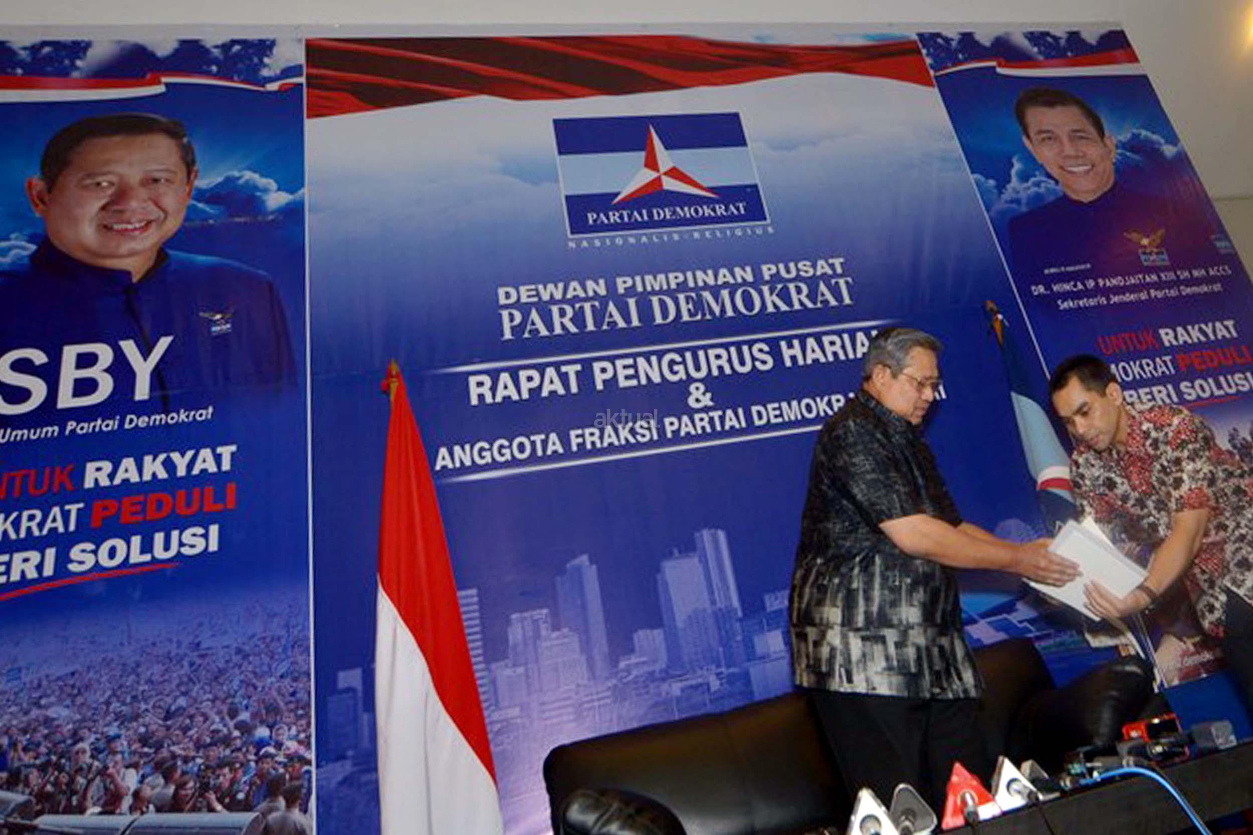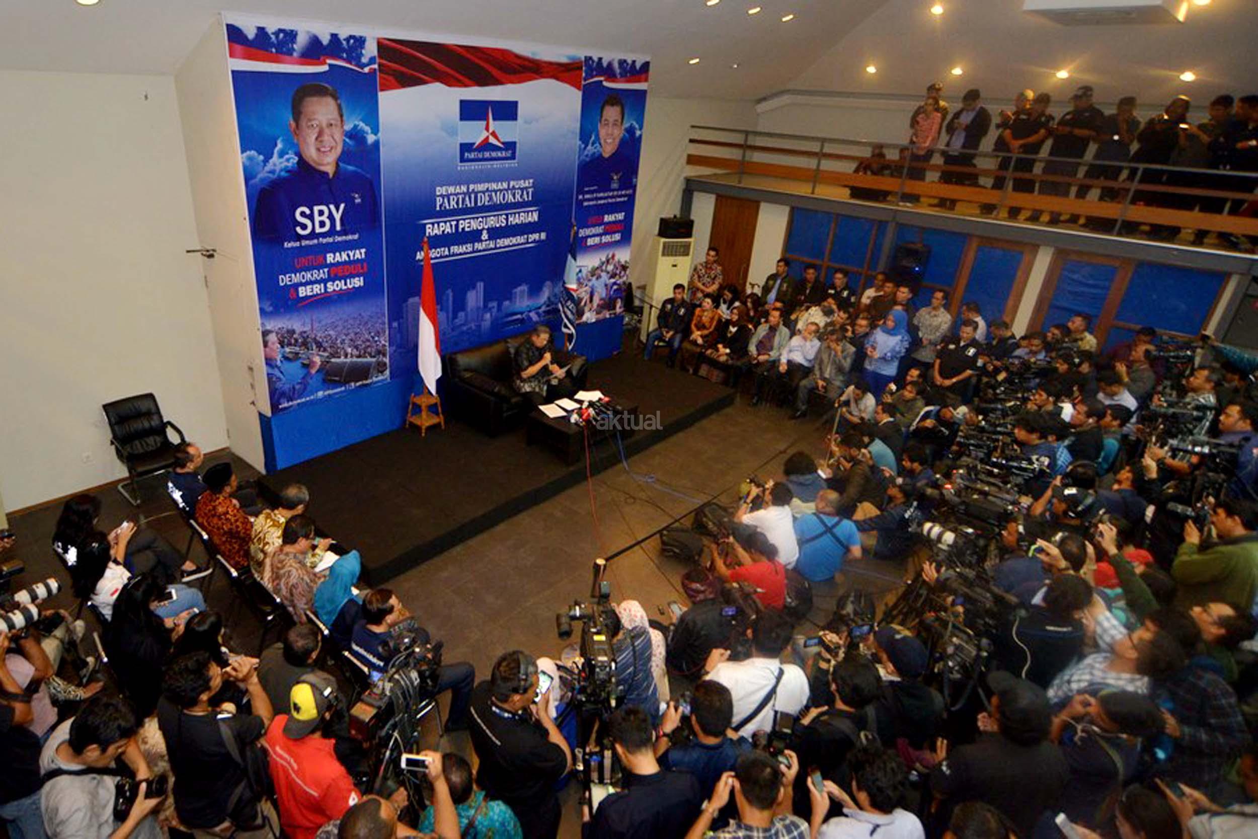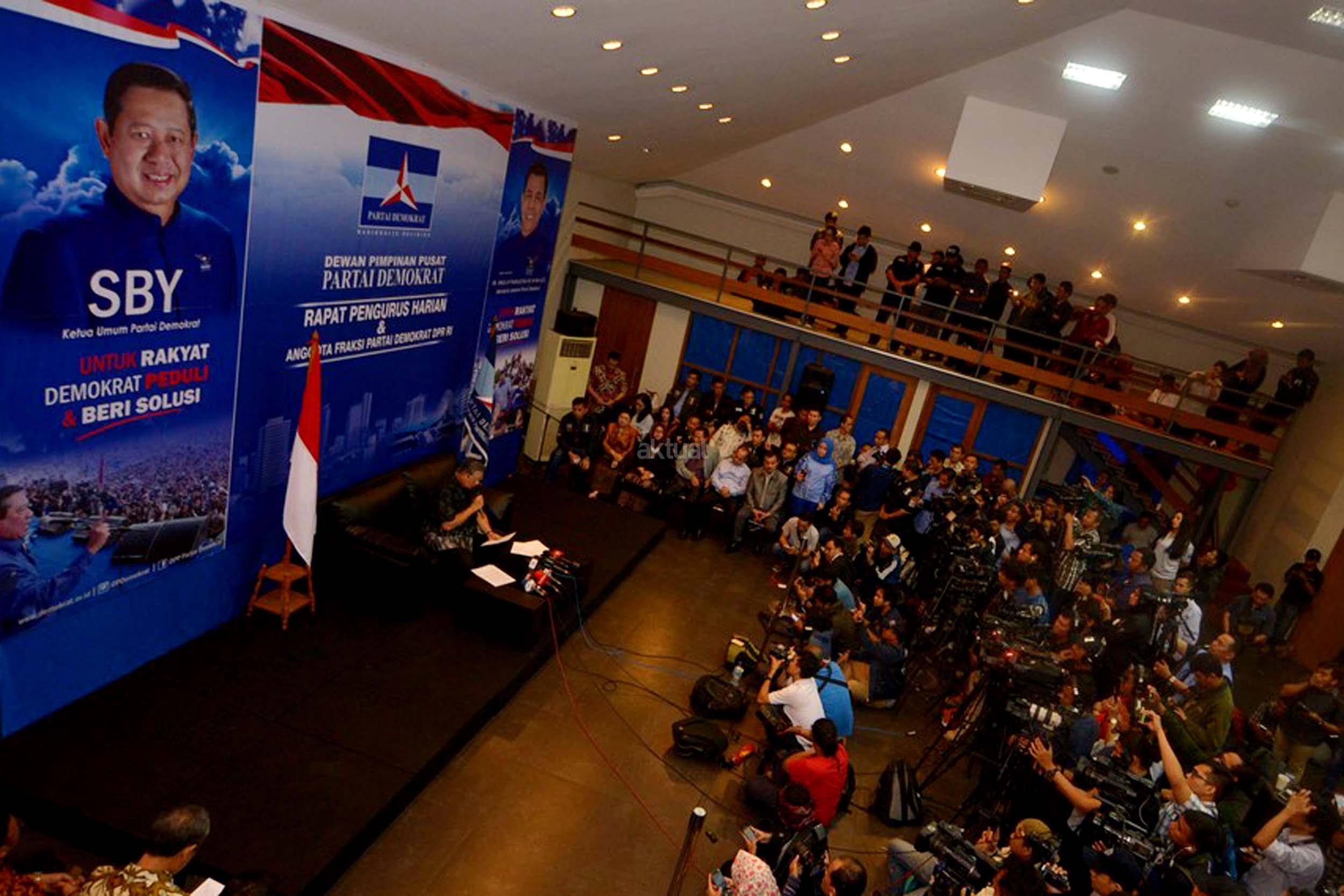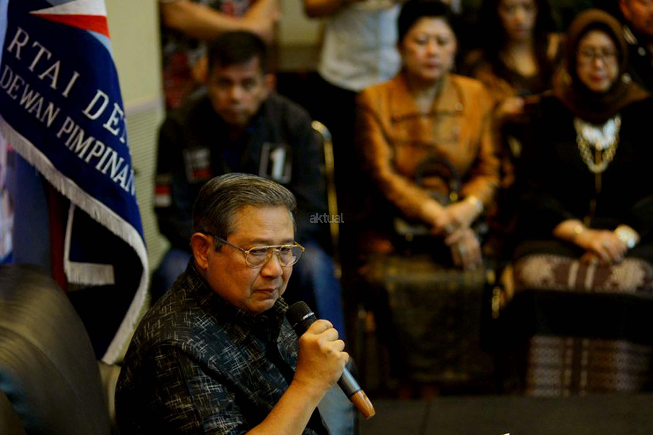 Ketua Umum Partai Demokrat, Susilo Bambang Yudhoyono memberikan klarifikasi terkait penyadapan dirinya dengan Ketua MUI Ma'ruf Amin, Jakarta, Rabu (1/2/2017). SBY angkat bicara terkait penyadapan percakapan telepon dia dengan Ketum MUI Ma'ruf Amin yang disebut-sebut di sidang kasus penistaan agama oleh Ahok. AKTUAL/Munzir