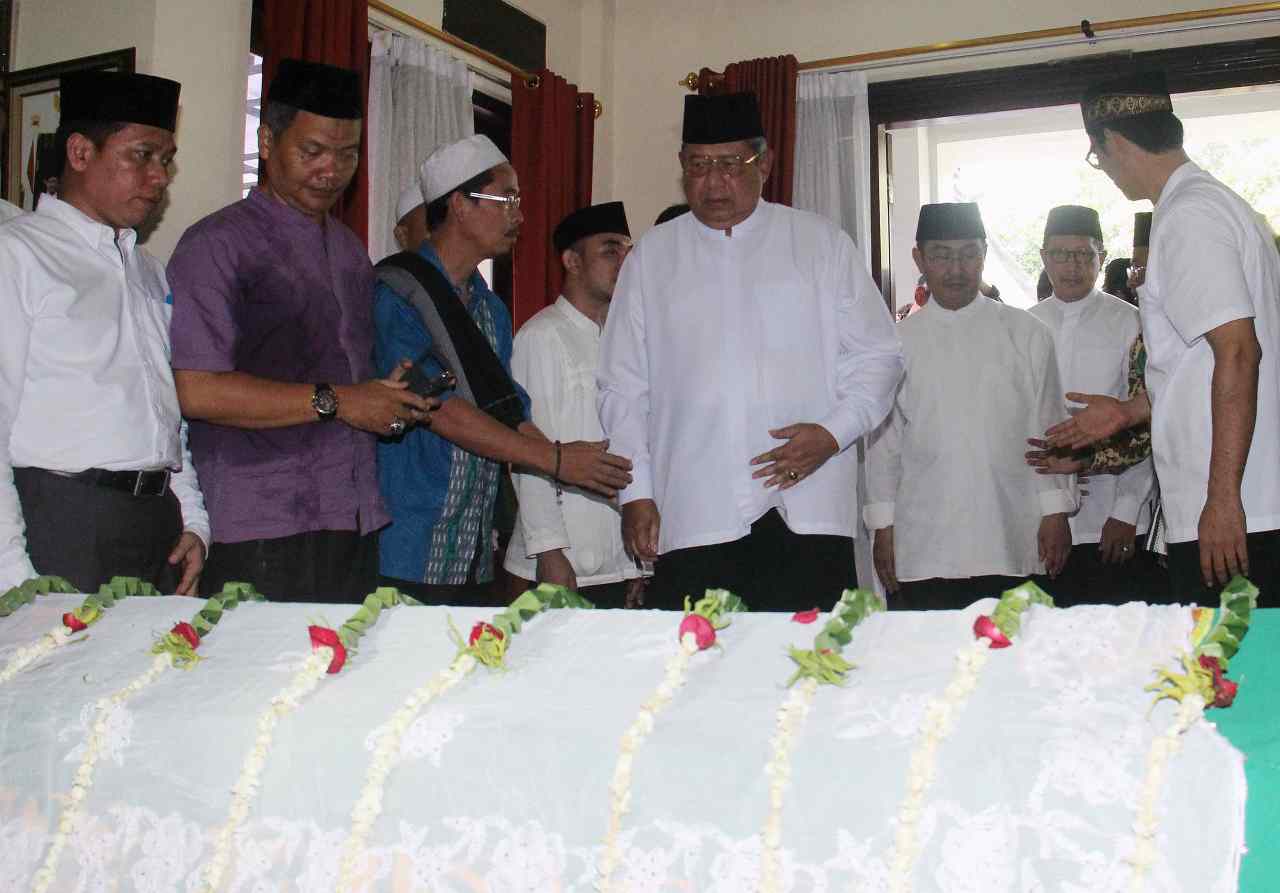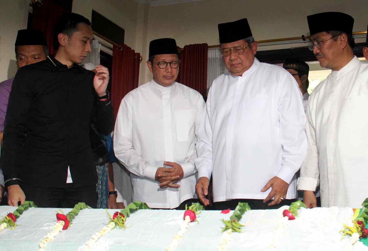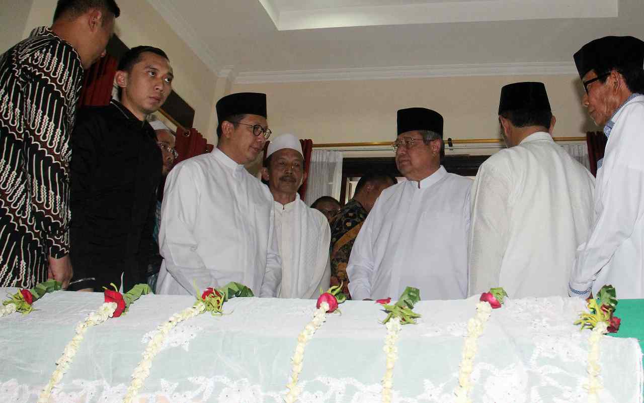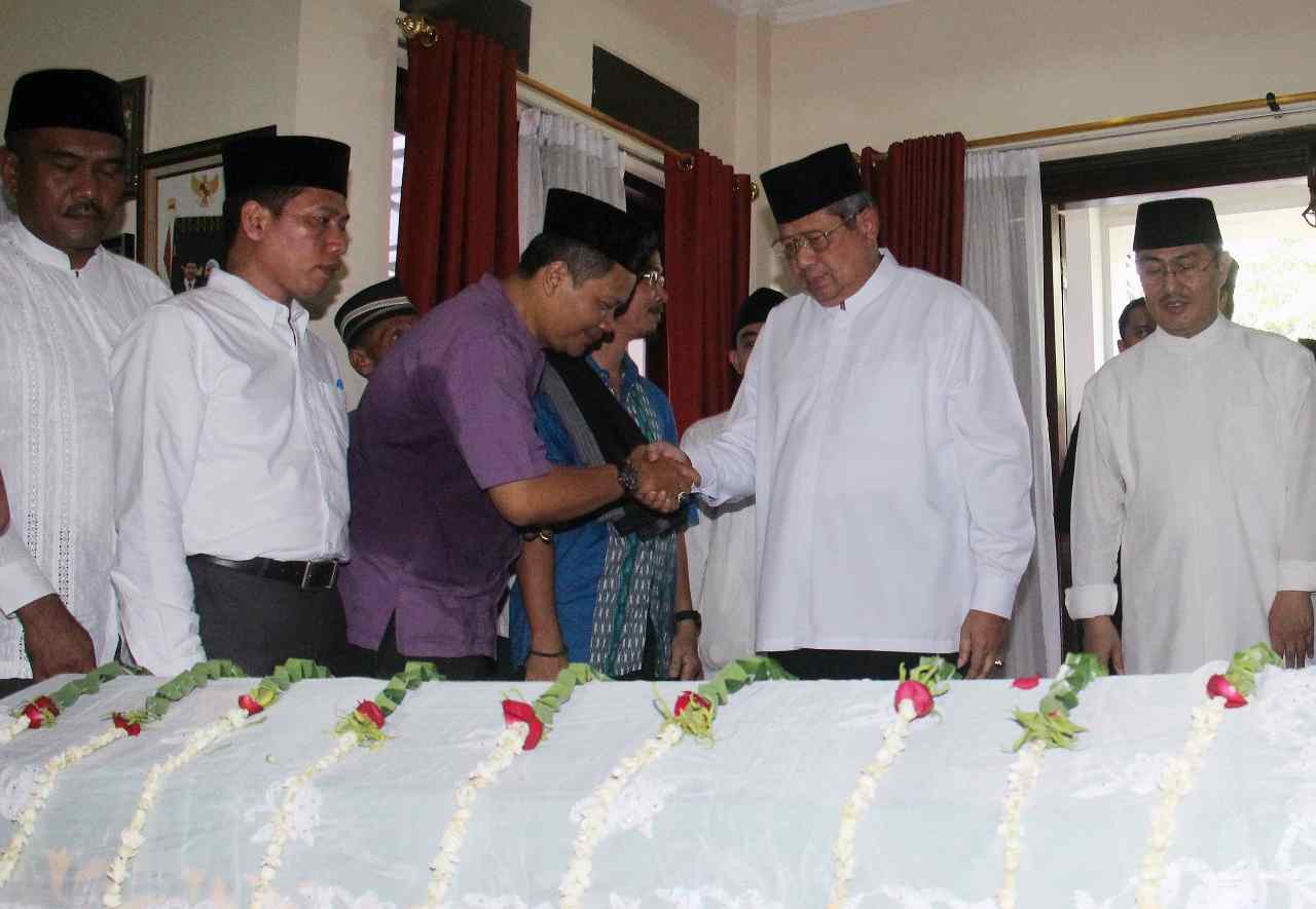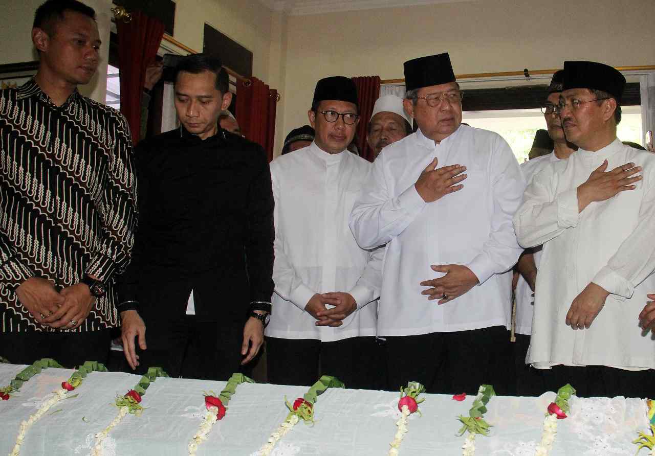 Presiden Keenam RI Susilo Bambang Yudhoyono saat melayat Ketua KPU Husni Kamil Manik di Jakarta, Jumat (8/7/2016). Husni Kamil Manik meninggal pada usia 40 tahun karena sakit.