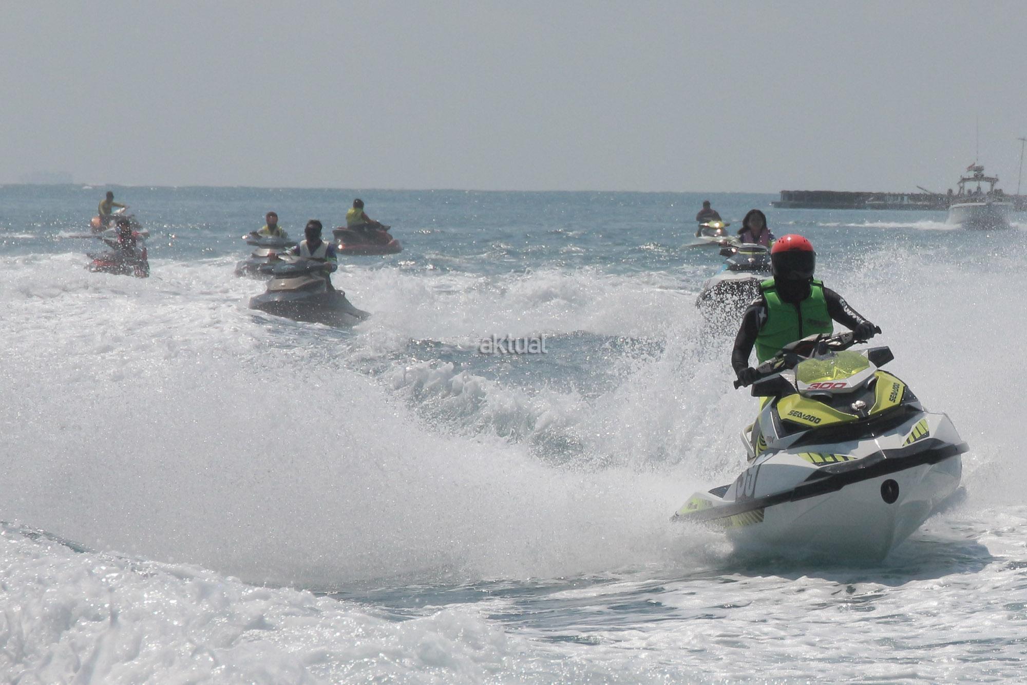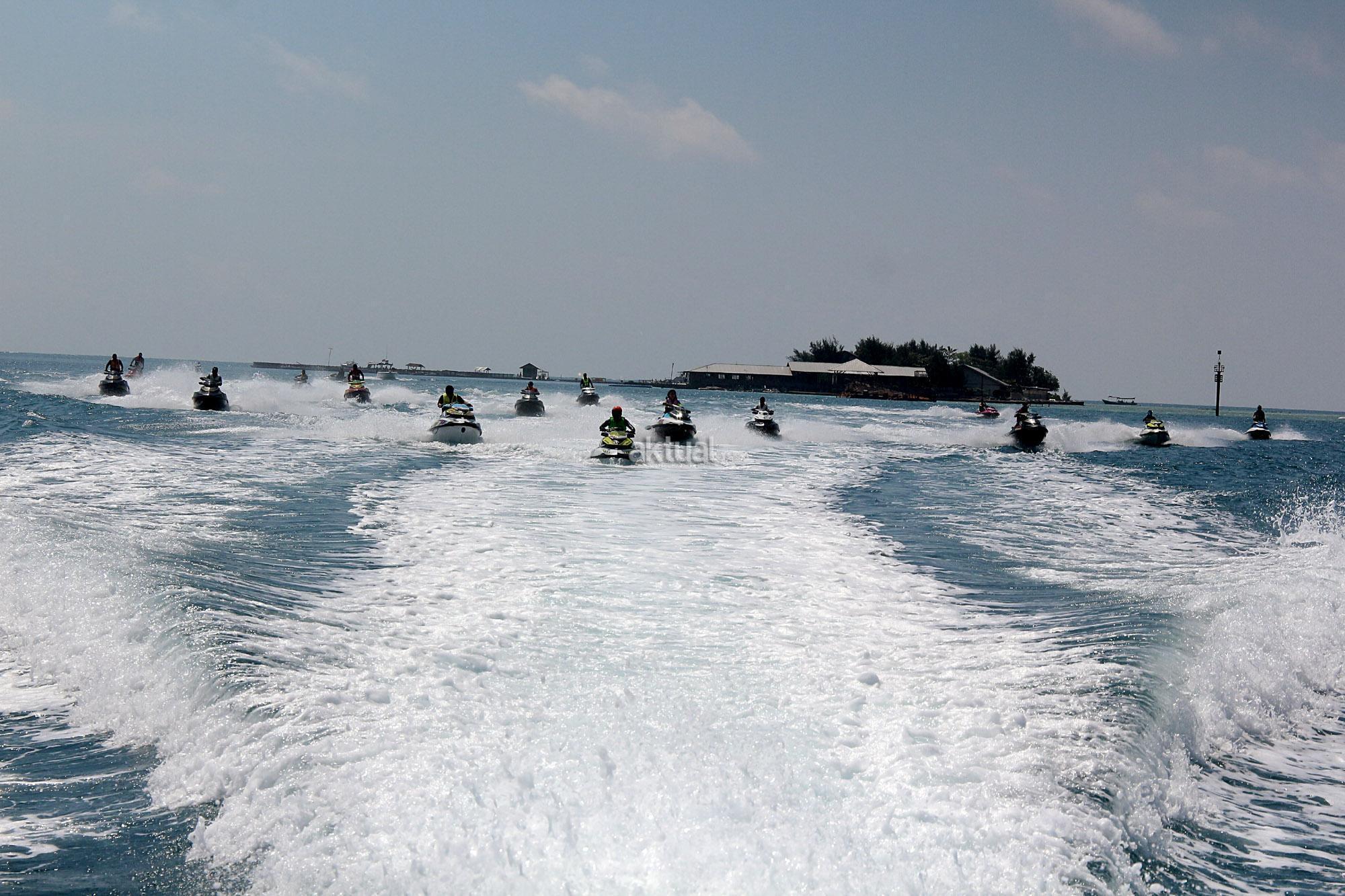Sejumlah anggota Seadoo Club Indonesia melakukan konvoi menggunakn jet ski menuju pulau Pramuka pada acar SCI PEDULI 2017 di Jakarta, Sabtu (17/6) Seadoo Club Indonesia memeberikan bantuan kepada 5000 warga Kepualauan Seribu sebesar Rp500 juta dalam bentuk sembako dan uang. AKTUAL/HO