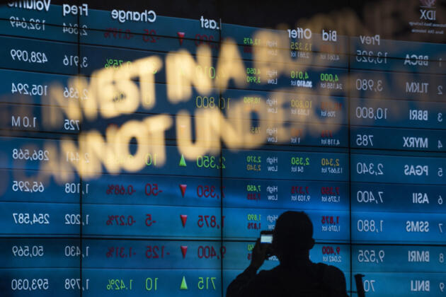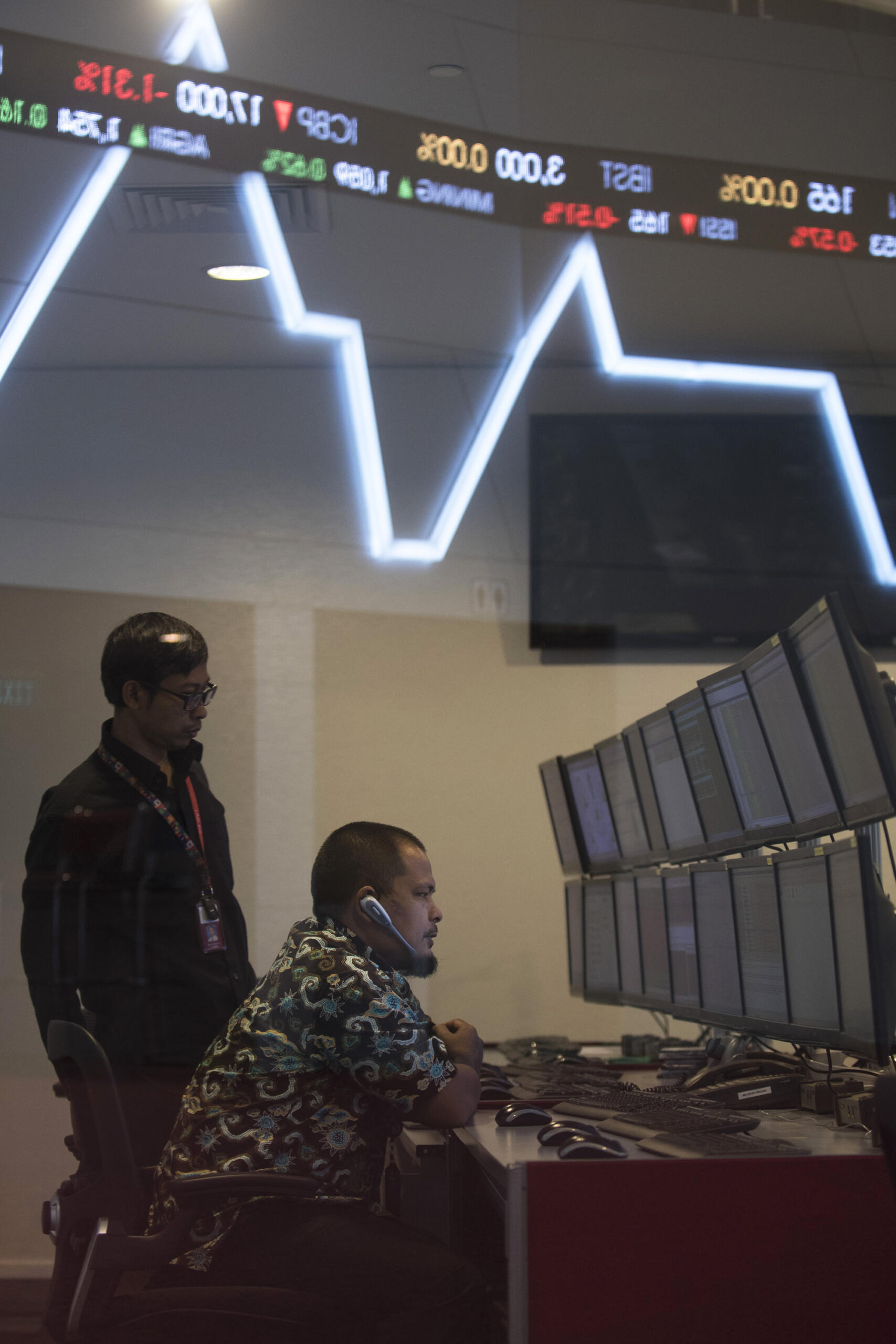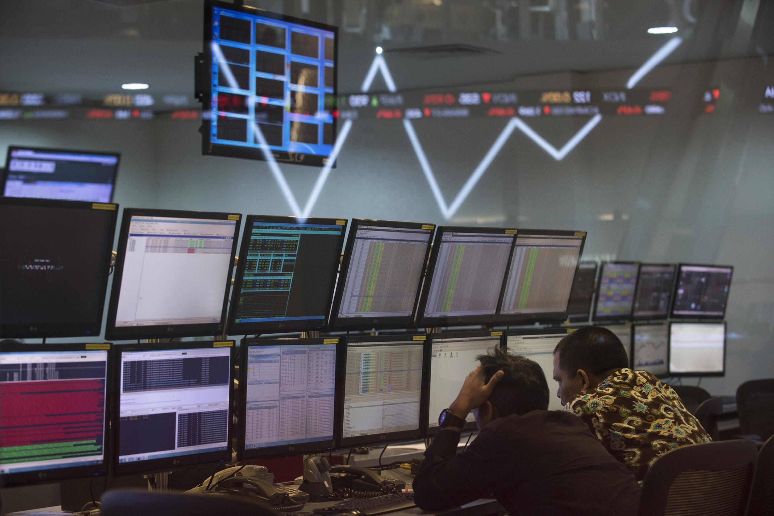 Karyawan mengamati pergerakan Indeks Harga Saham Gabungan (IHSG) di Bursa Efek Indonesia, Jakarta, Jumat (1/7). Pada perdagangan terakhir sebelum libur Lebaran IHSG ditutup melemah 0,90 persen atau 45,07 poin ke level 4.971,58, meski demikian IHSG sempat menguat ke level 5.039,69 sebagai imbas dari pemberlakuan kebijakan pengampunan pajak atau tax amnesty. ANTARA FOTO/Sigid Kurniawan/pras/16.