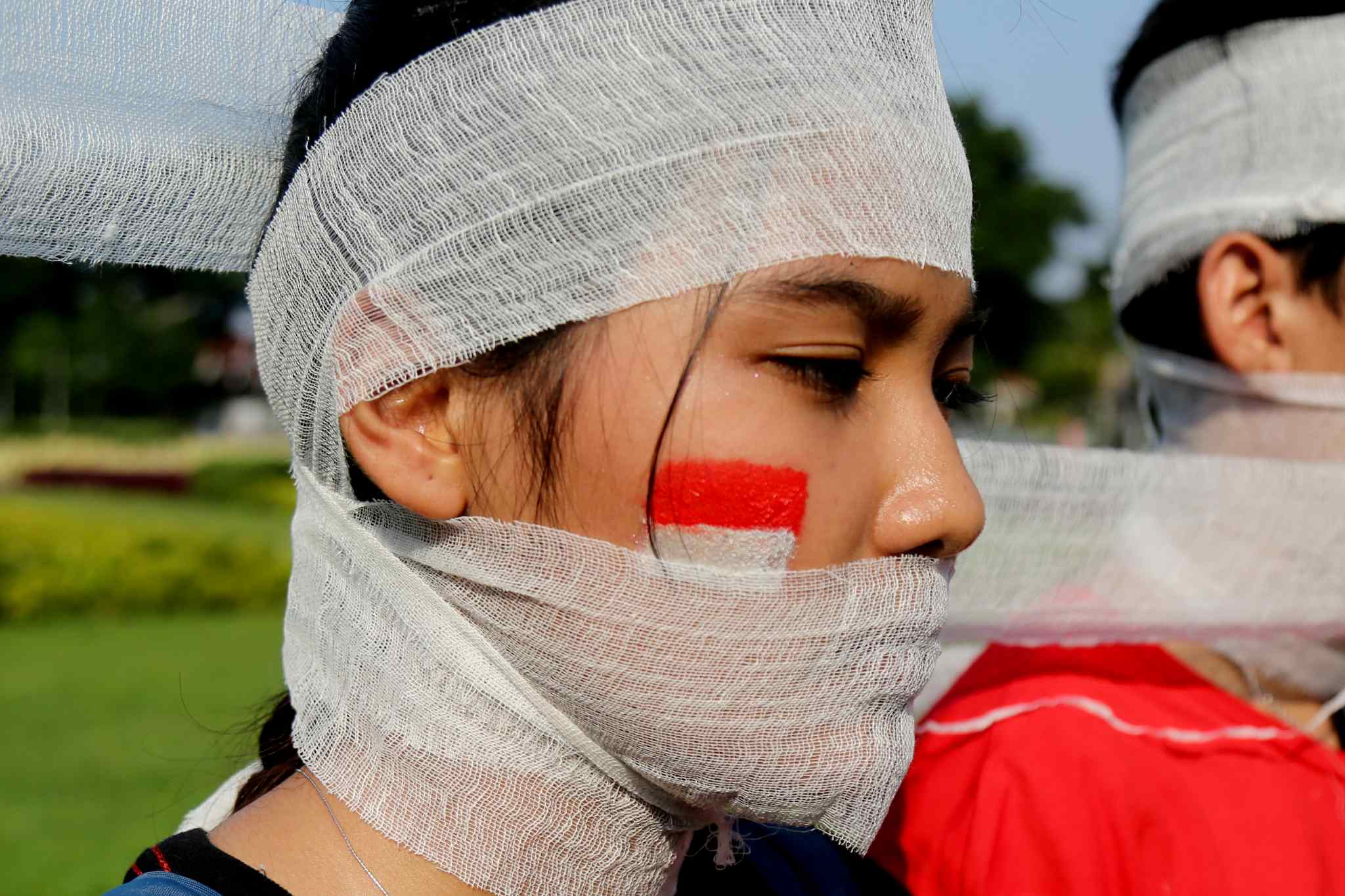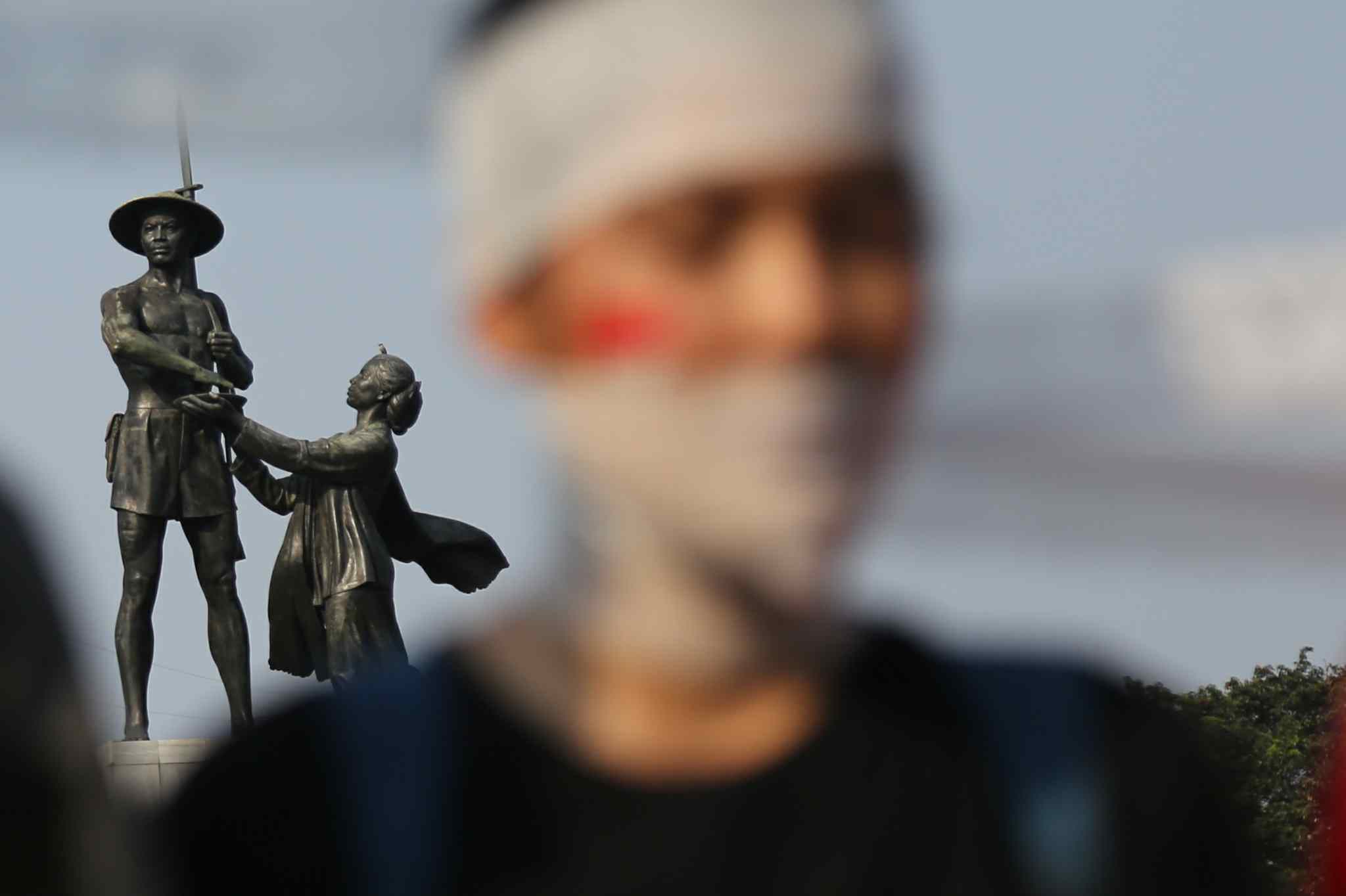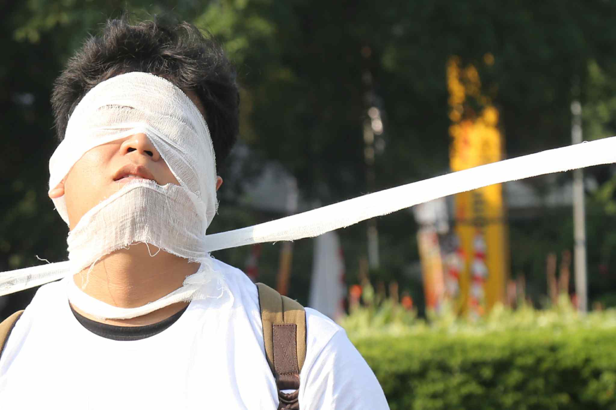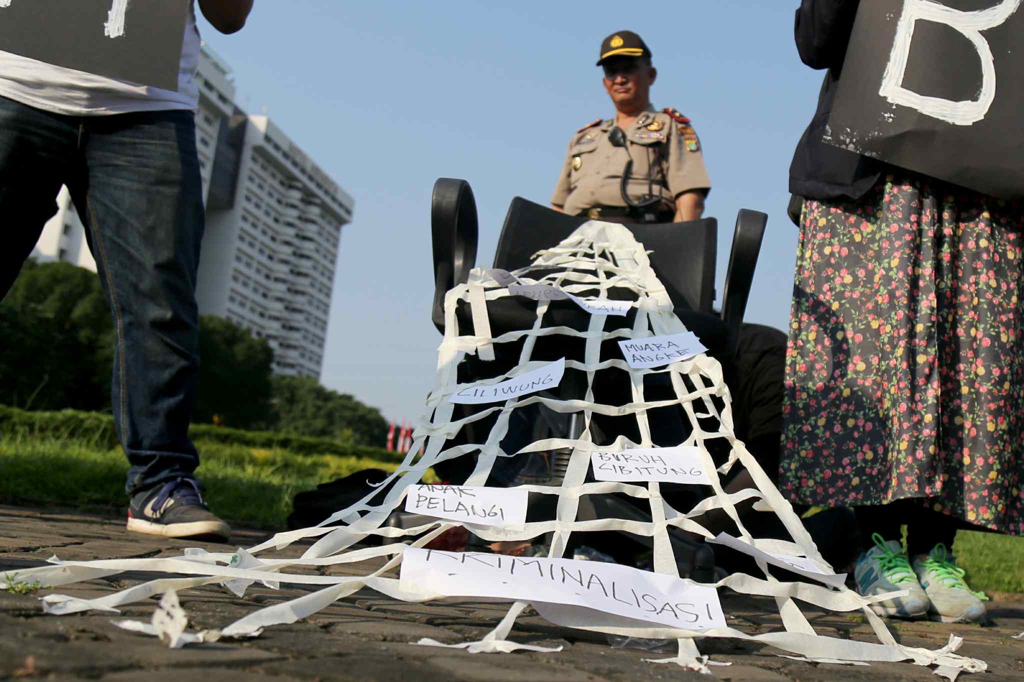 Sejumlah peserta Sekolah Hak Asasi Manusia untuk Mahasiswa (SeHAMA) angkatan 8 dari Komisi untuk Orang Hilang dan Korban Tindak Kekerasan (KontraS) melakukan aksi di Tugu Tani, Jakarta, Sabtu (20/8). Aksi yang digelar sebagai refleksi 71 tahun kemerdekaan RI tersebut merupakan bentuk kepedulian dan perjuangan menuntut penyelesaian kasus pelanggaran hak asasi manusia yang terjadi di masa lalu hingga hari ini. AKTUAL/TINO OKTAVIANO