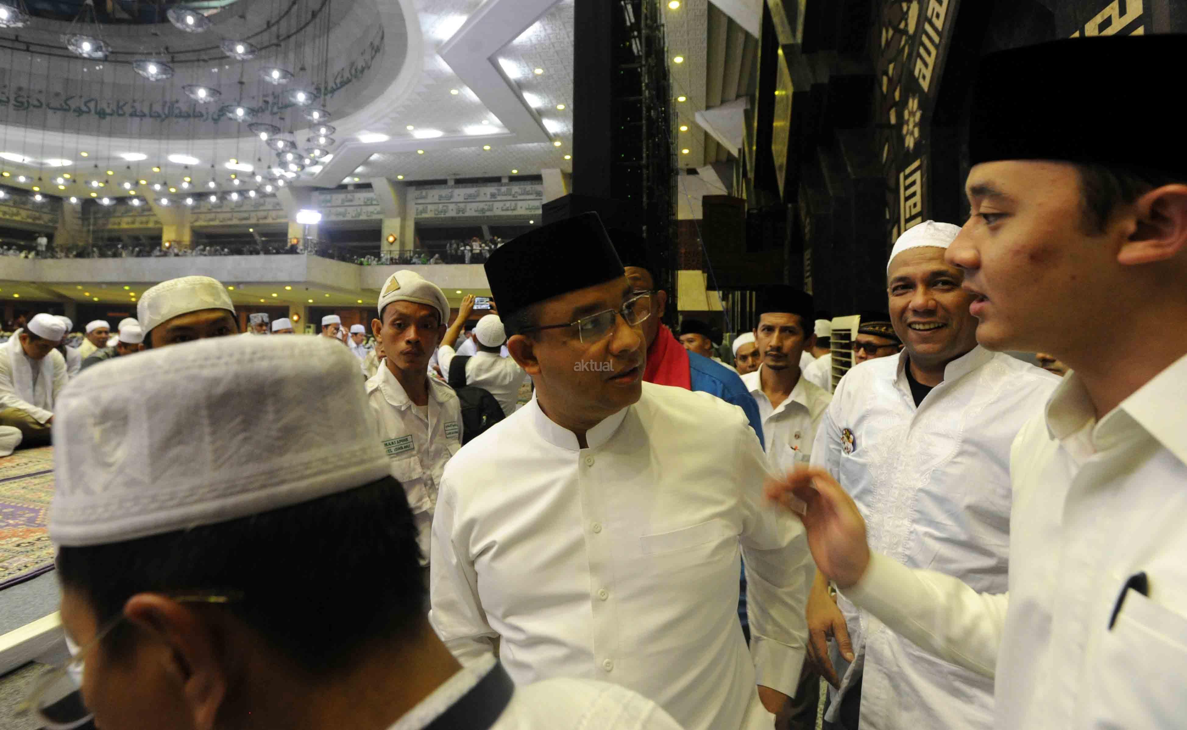 Anies Baswedan saat menghadiri peringatan ke-51 Supersemar dan haul mantan Presiden Indonesia Soeharto di Masjid Agung At-Tin, Taman Mini Indonesia Indah, Jakarta Timur, Sabtu (11/3). AKTUAL/Tino Oktaviano