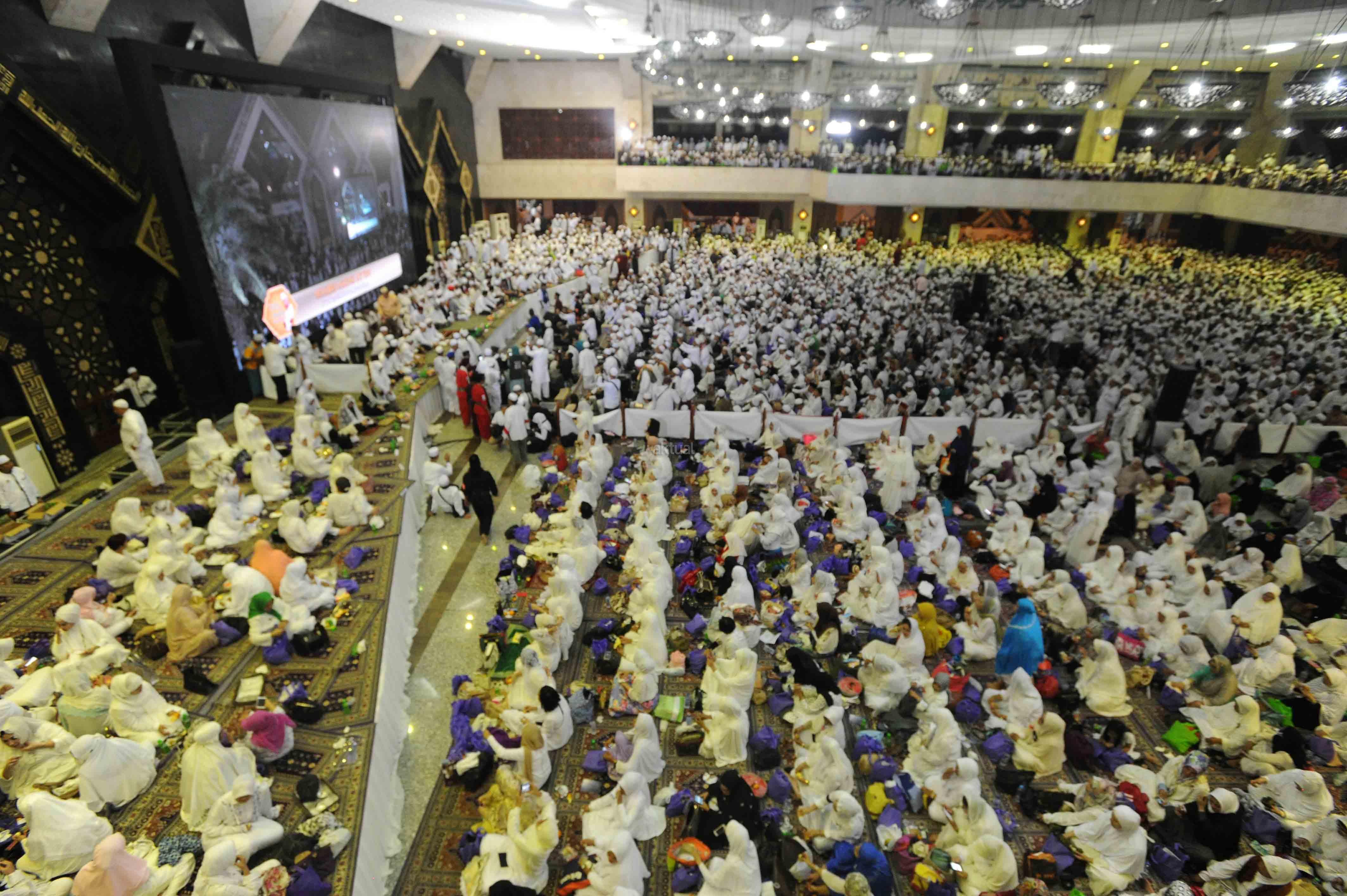 Sejumlah tokoh hadiri haul Soeharto di Masjid At-Tin. Ribuan umat muslim dan beberapa tokoh menghadiri kegiatan ini, di antaranya Prabowo, Cagub Anies Baswedan, Akbar Tandjung, dan Cawagub Djarot Saiful Hidayat. AKTUAL/Tino Oktaviano