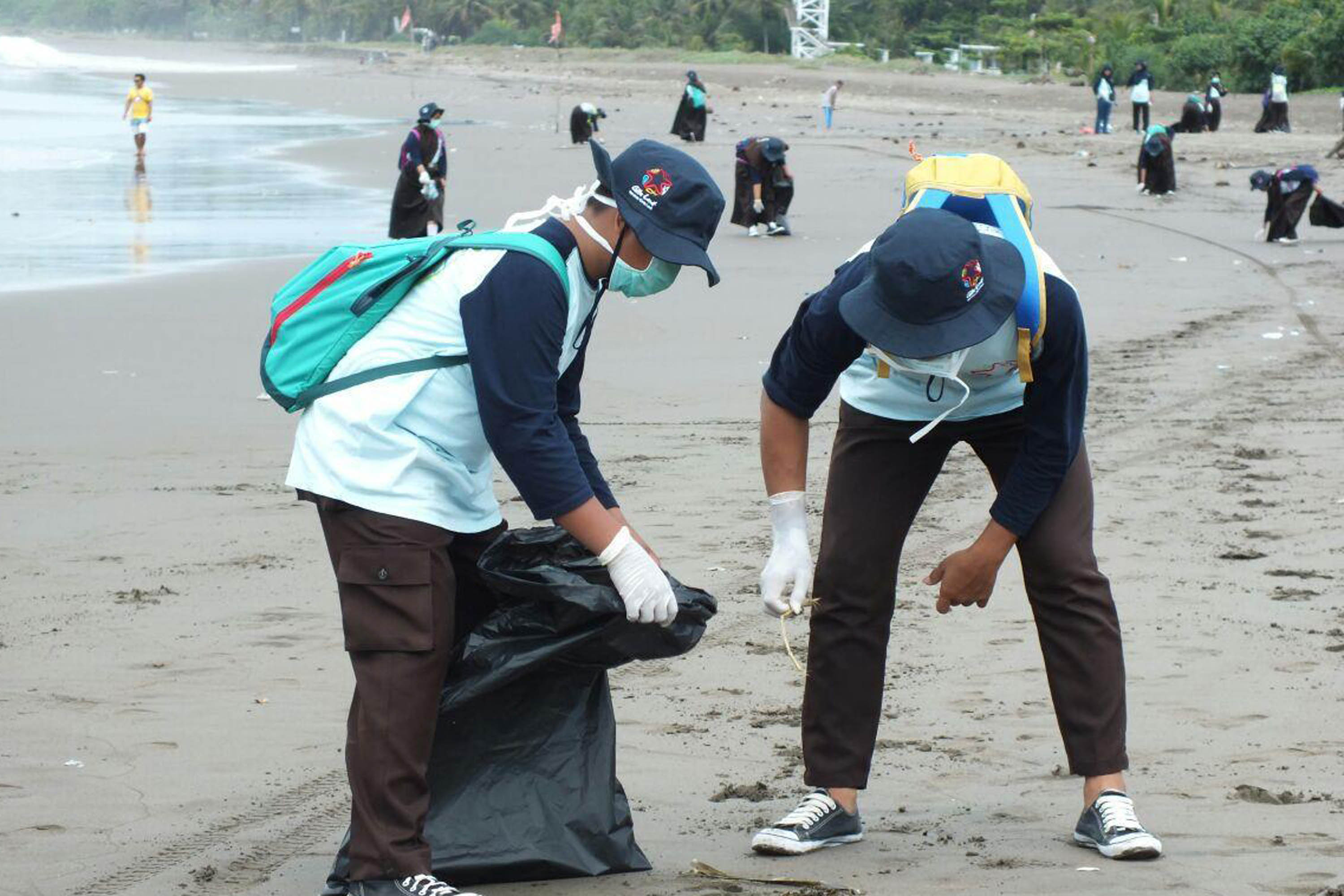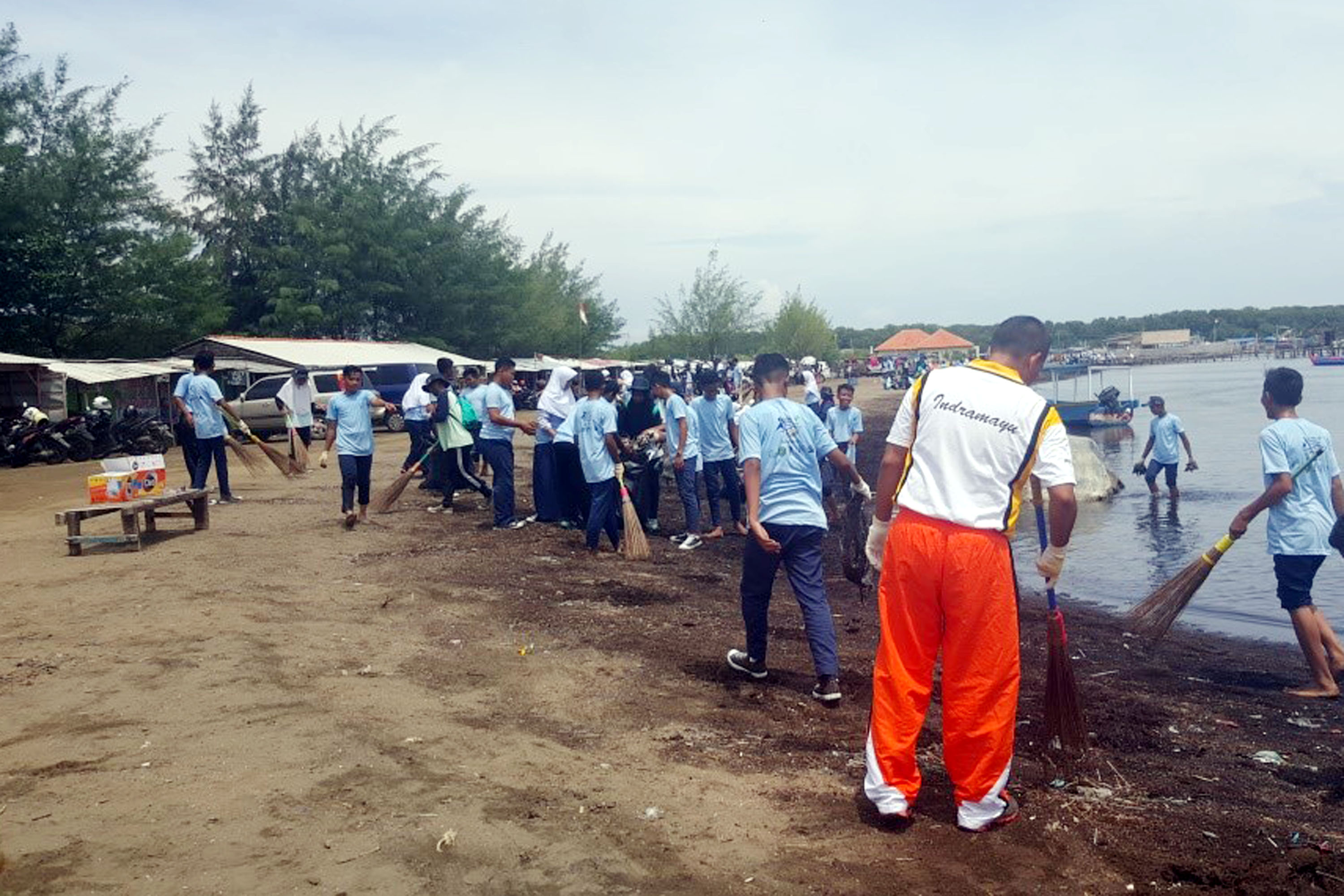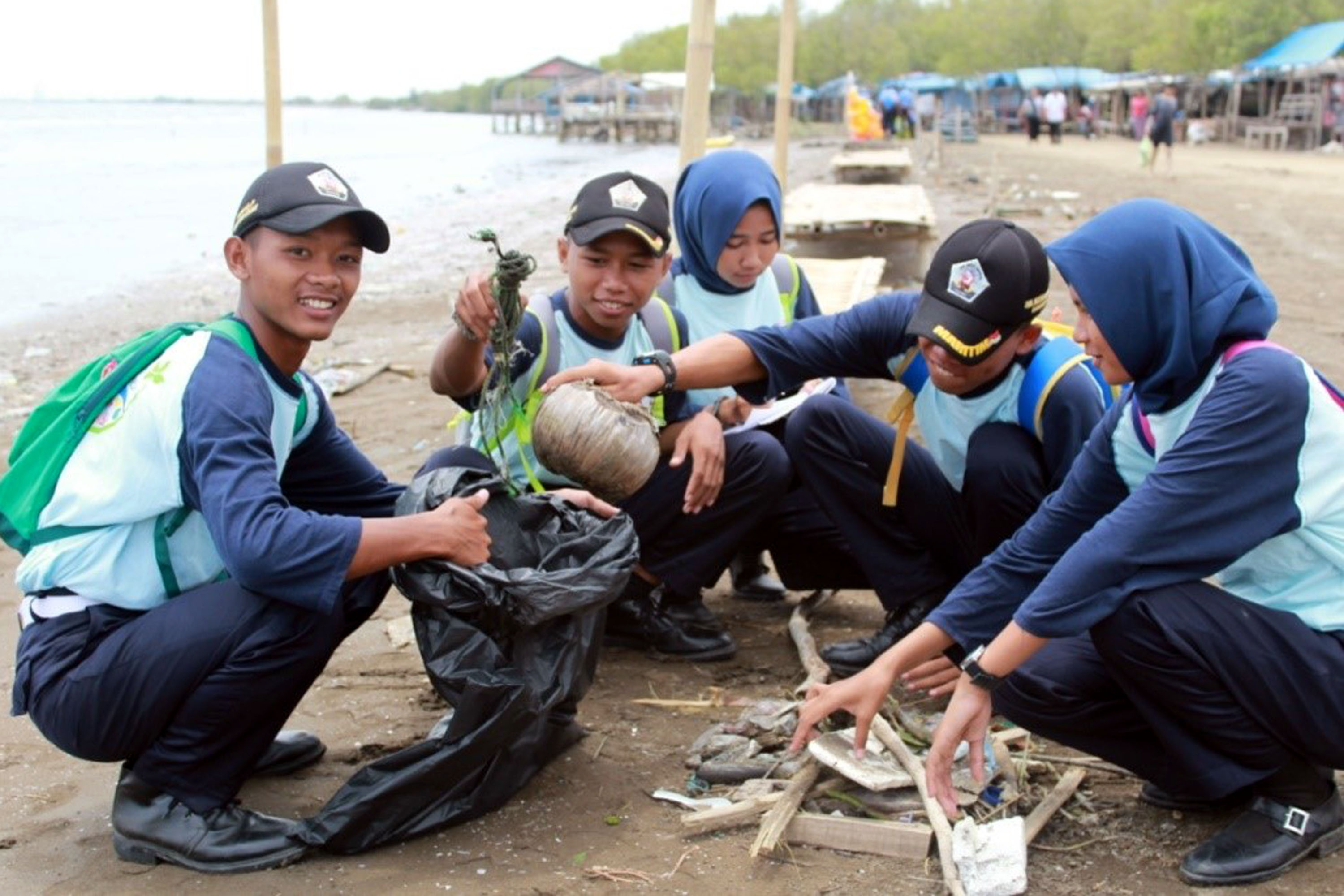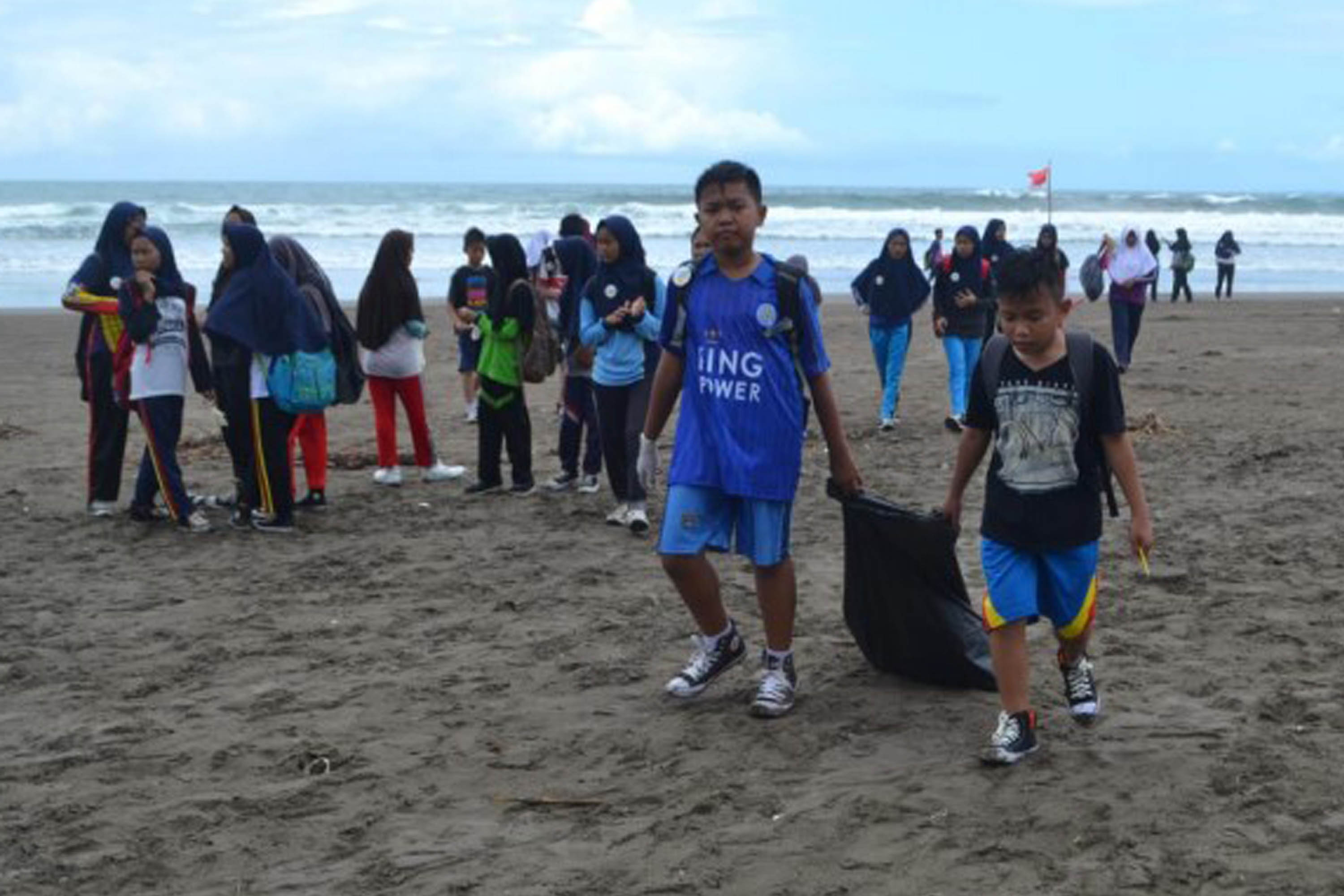 Siswa/Siswi SMK Maritim Karangsong dan SMK Hasanudin Kandanghaur mengikuti Aksi bersih Pantai dalam program Sekolah Pantai Indonesia (SPI) di pesisir pantai Karongsong, Kabupaten Indramayu, Jawa Barat (20/11). Sekolah Pantai Indonesia (SPI) adalah implementasi dari Gerakan Cinta Laut (Gita Laut) Kementerian Kelautan dan Perikanan Republik Indonesia yang telah dilaksanakan sejak tahun 2013. Kegiatan ini dilakukan melalui penyadaran masyarakat untuk usia dini dengan menerapkan prinsip dari, oleh dan untuk siswa melalui konsep 4A (Amati, Analisa, Ajarkan, Aksi). Foto: Istimewa