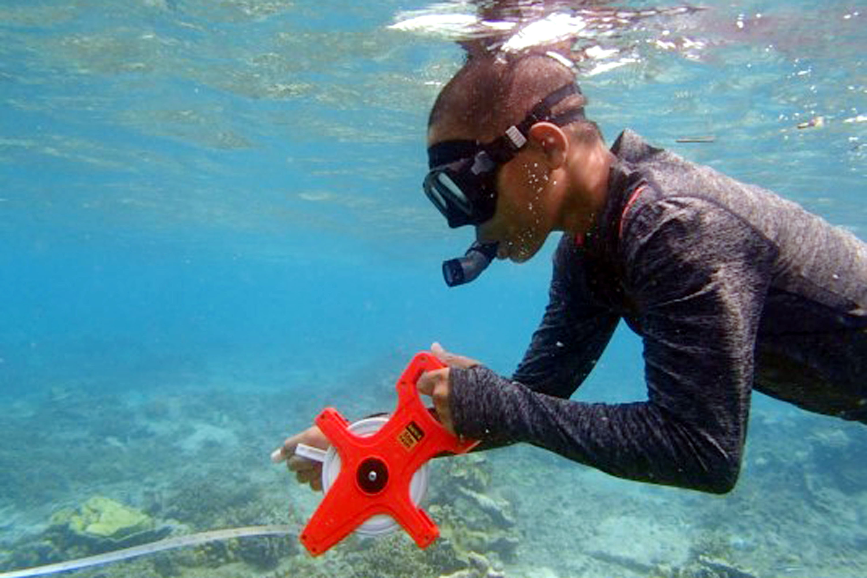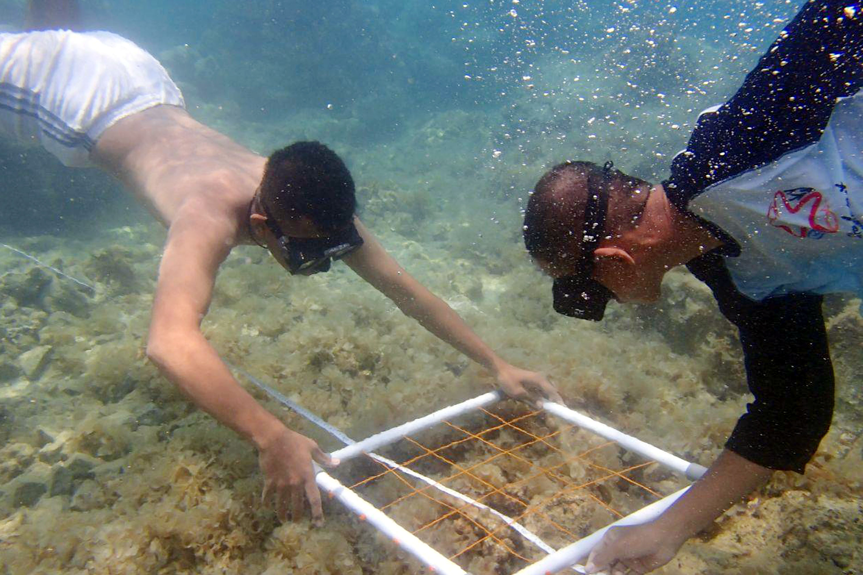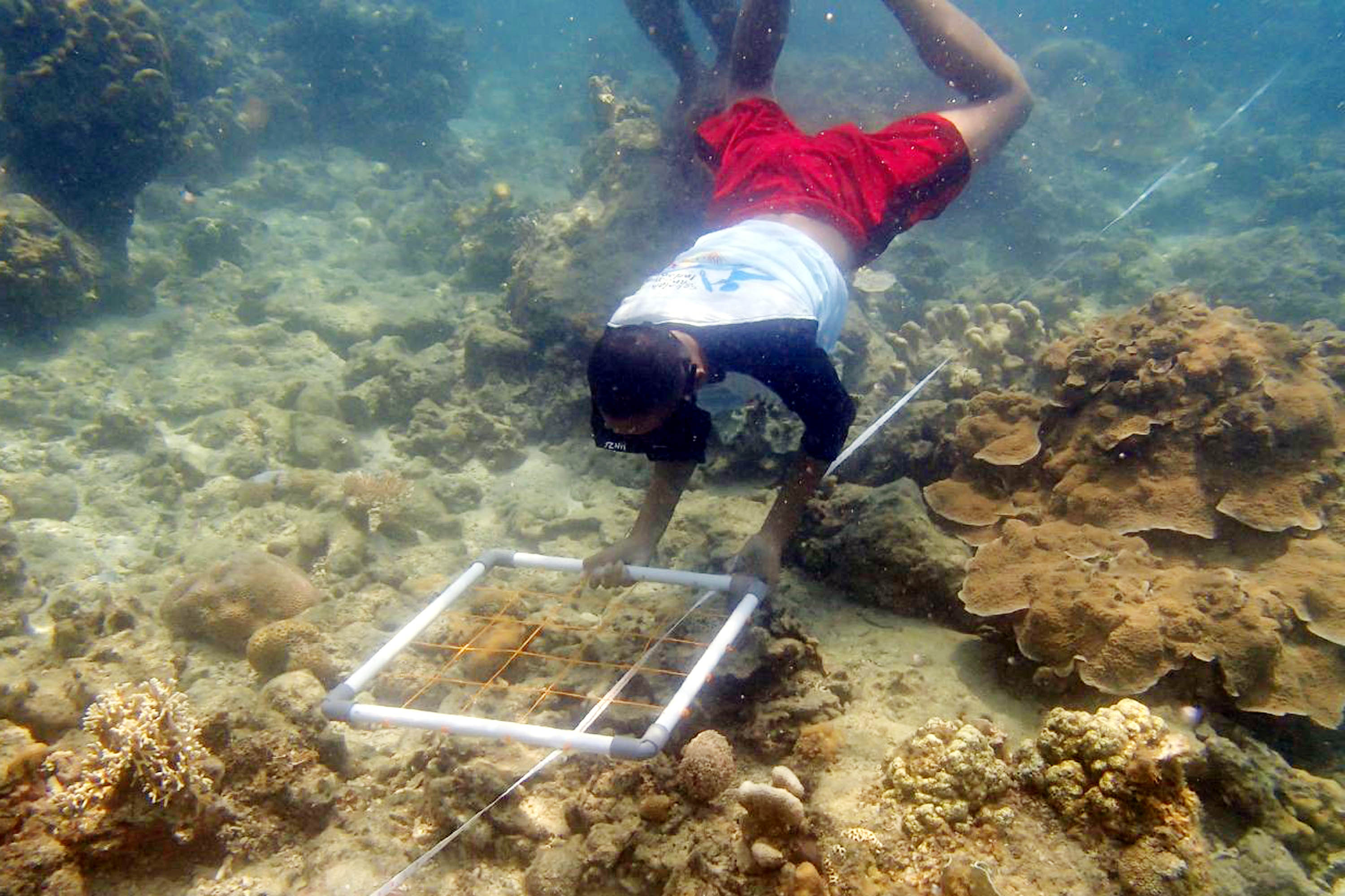 Siswa melakukan pengamatan kondisi terumbu karang pada program Sekolah Pantai Indonesia (SPI) yang diadakan di Pulau Tidung Kecil, Kepulauan Seribu, Jakarta (22/11). Kegiatan aksi SPI ini merupakan bagian dari kampanye program Gerakan Cinta Laut (Gita Laut) yang digagas Kementerian Kelautan dan Perikanan (KKP) alam rangka menumbuhkan kepedulian dan kecintaan terhadap ekosistem laut. AKTUAL/Istimewa