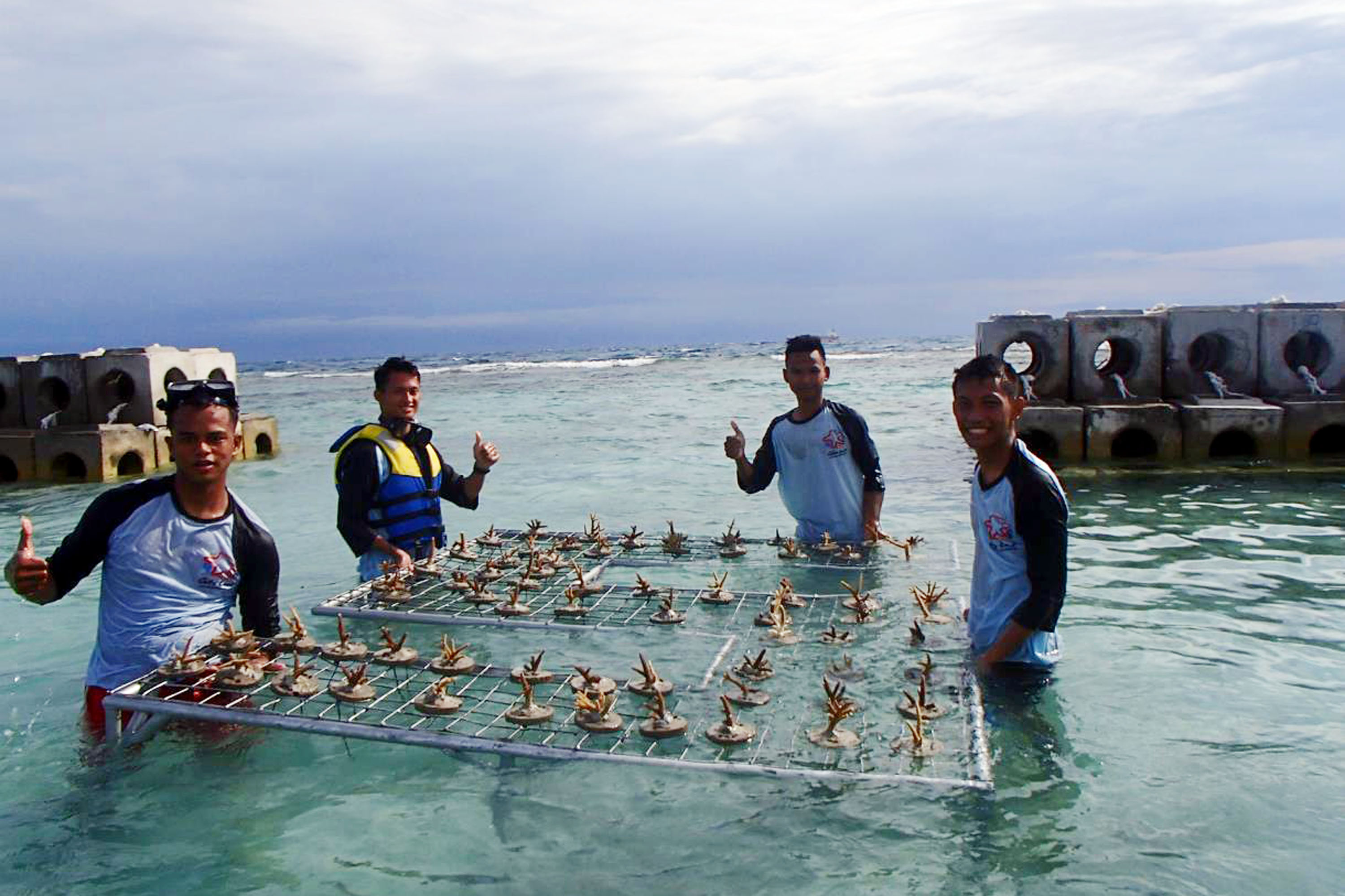 Siswa melakukan transplantasi terumbu karang pada program Sekolah Pantai Indonesia (SPI) yang diadakan di Pulau Tidung Kecil, Kepulauan Seribu, Jakarta (22/11). Kegiatan aksi SPI ini merupakan bagian dari kampanye program Gerakan Cinta Laut (Gita Laut) yang digagas Kementerian Kelautan dan Perikanan (KKP) alam rangka menumbuhkan kepedulian dan kecintaan terhadap ekosistem laut. AKTUAL/Istimewa