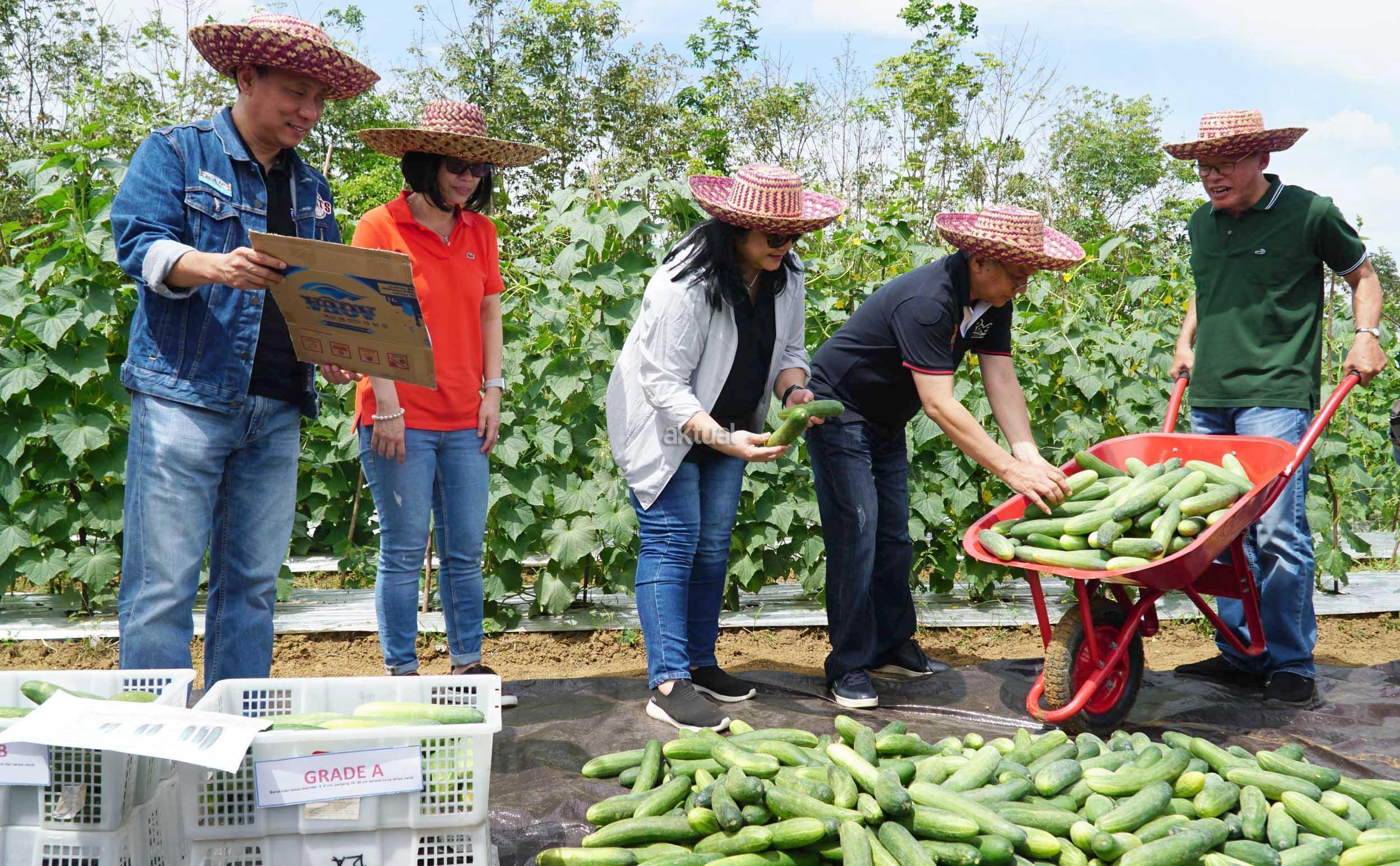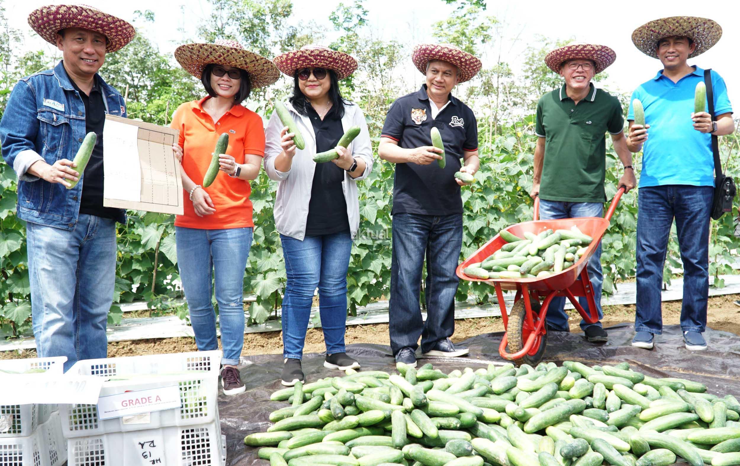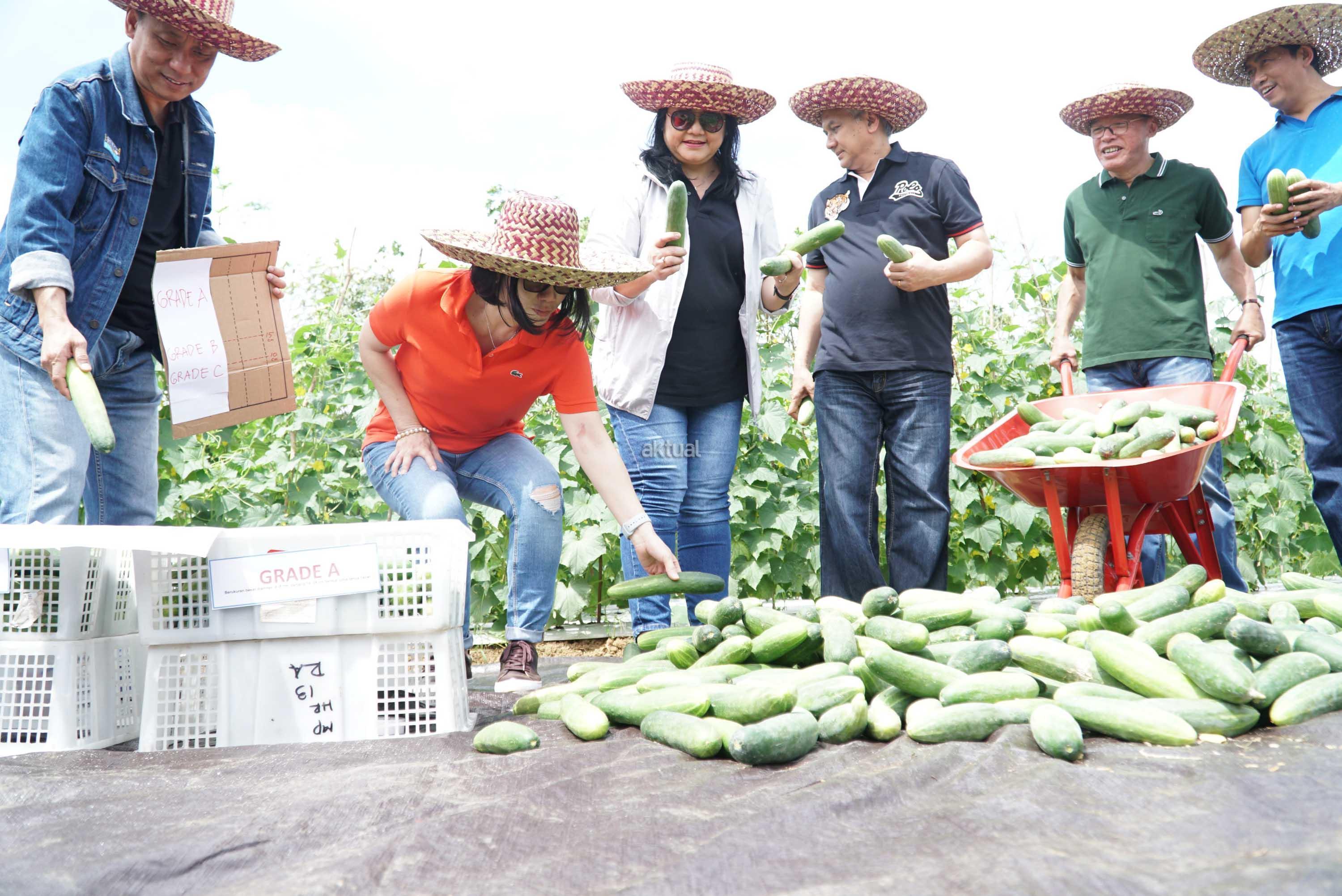 Dari kiri ke kanan, Direktur PT Astra International Tbk,Santosa, Ketua Pengawas Yayasan Dharma Bhakti Astra (YDBA) Lina Djafar, Sekretaris Pengurus YDBA Ida Rotua M Sigalingging, Penasehat YDBA Toni Sumarsono, Ketua Pengurus YDBA Henry C Widjaja, Pengurus YDBA Setyo Budi Anang melakukan aktifitas mensortir mentimun di lahan petani Mitra YDBA Desa Shabah, Kecamatan Bungur, Kabupaten Tapin, Kalimantan Selatan, Selasa (10/7). Dalam memperingati hari jadi ke 38, YDBA melakukan kegiatan antara lain memberikan penghargaan untuk UMKM yang berprestasi dan pihak pihak yang terlibat dalam ekosistem pembinaan UMKM serta meluncurkan buku panduan sektor keunggulan 1.0 , sebuah buku yang berisi tentang pengertian sektor unggulan, serta panduan teknis dalam setiap tahapan pengelolaan sektor unggulan, pameran produk UMKM binaan LPB Baprida yang terdiri dari beberapa sektor, yaitu hortikultura (sayuran, buah, dan cabai hiyung), peternakan, madu, kalulut, perikanan dan makanan olahan. AKTUAL/Eko S Hilman