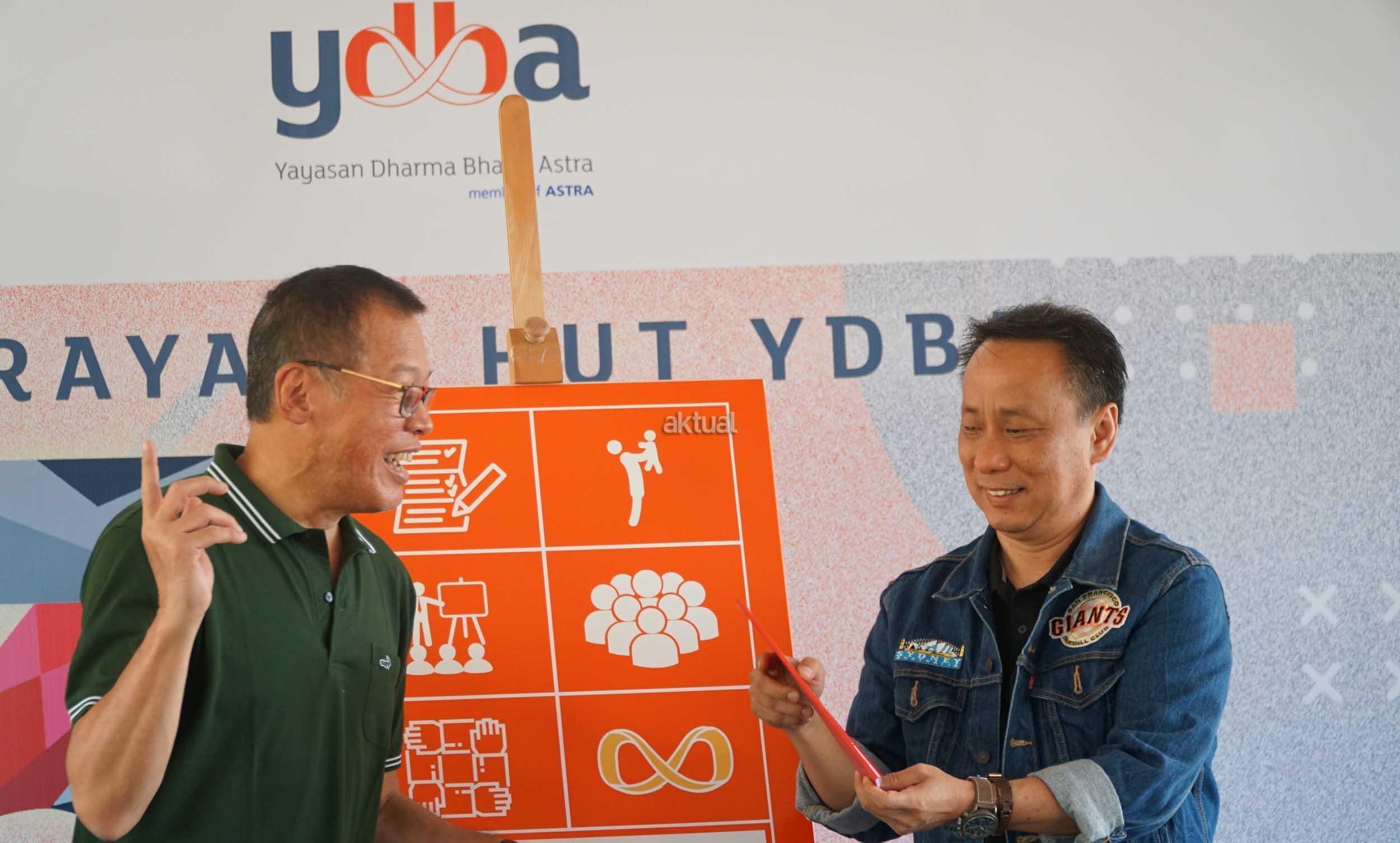 Ketua Pengurus YDBA Henry C Widjaja (kiri) bersama Direktur PT Astra International Tbk,Santosa (kedua kiri) saat peluncuran buku panduan sektor keunggulan 1.0, sebuah buku yang berisi tentang pengertian sektor unggulan, beserta panduan teknis dalam setiap tahapan pengelolaan sektor unggulan dalam memperingati hari jadi YDBA ke 38 di Desa Shabah, Kecamatan Bungur, Kabupaten Tapin, Kalimantan Selatan, Selasa (10/7). AKTUAL/Eko S Hilman