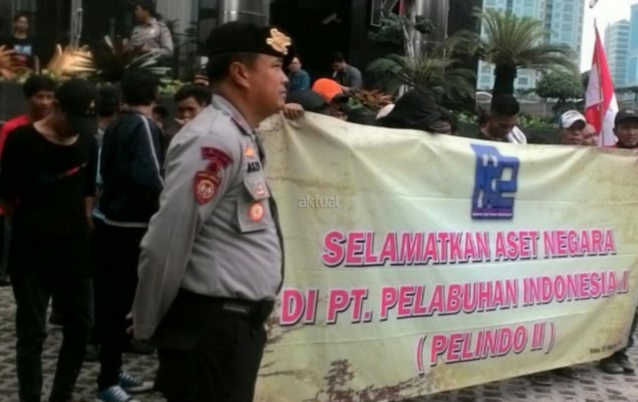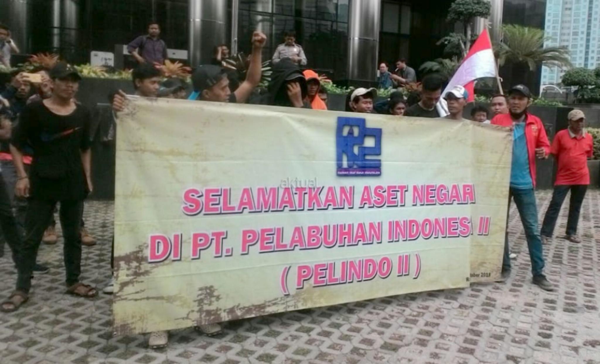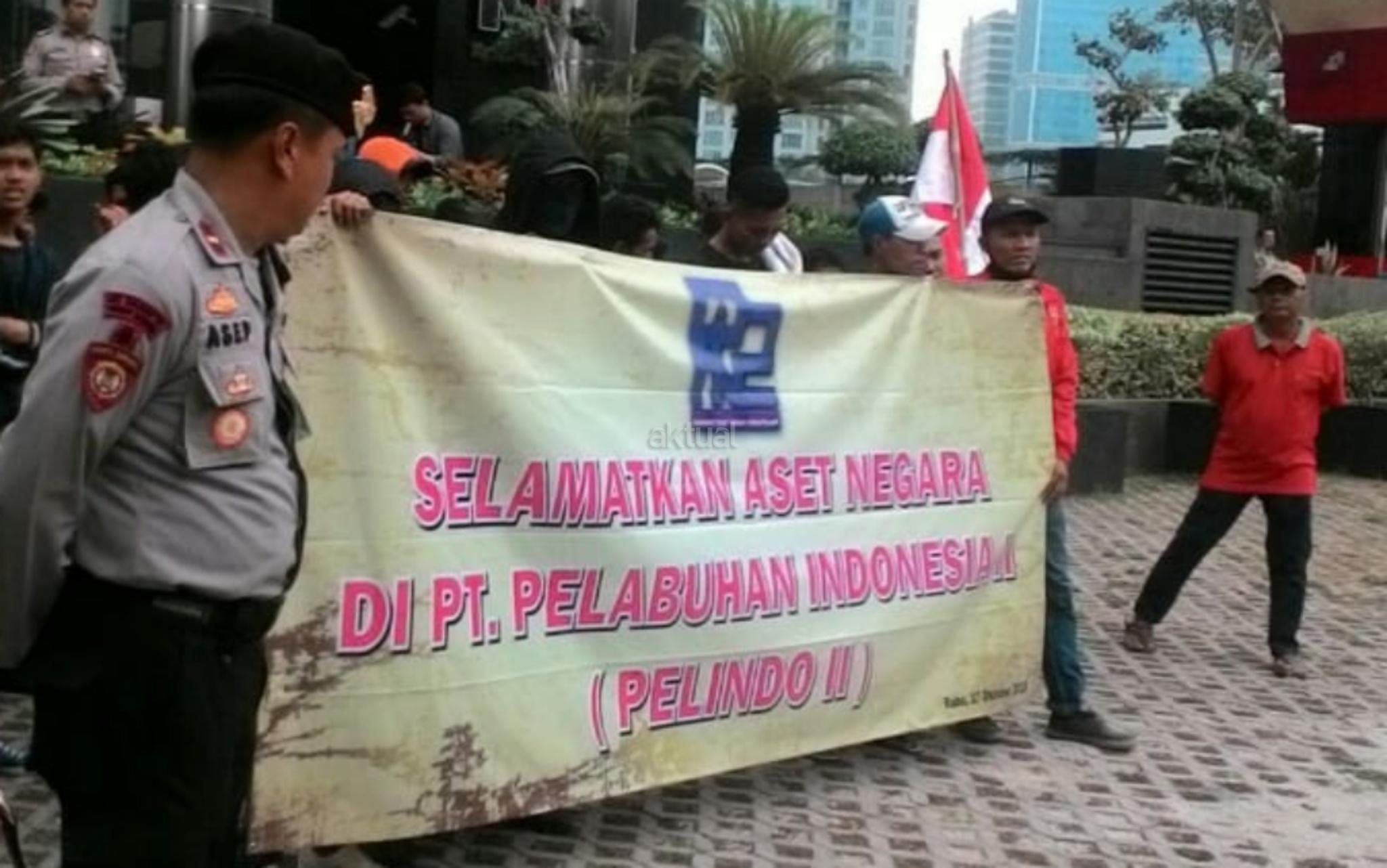 Sejumlah mahasiswa yang tergabung dalam Rumah Inspirasi Indonesia (RI2) melakukan aksi di depan gedung Komisi Pemberantasan Korupsi (KPK), jalan HR Rasuna Said, Jakarta Selatan, Rabu (16/10/2018). Massa aksi meminta KPK untuk mengusut dan menindaklanjuti hasil temuan audit investigasi BPK di Pelindo II dengan indikasi kerugian negara Rp 14.86 Triliun. AKTUAL/Tino Oktaviano