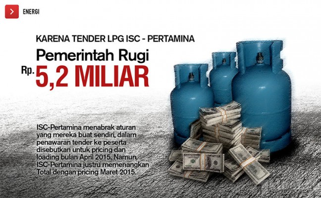 Diketahui, Pada 23 Februari 2015, unit usaha PT Pertamina (Persero) yakni Integrated Supply Chain (ISC) mengundang tender LPG yang terdiri atas Butane dan Propane untuk loading bulan April 2015 dengan spot total 44.000 mt. ISC-Pertamina menunjuk Total sebagai pemenang tender yang jelas melakukan pricing untuk bulan Maret yang seharusnya bulan April 2015.