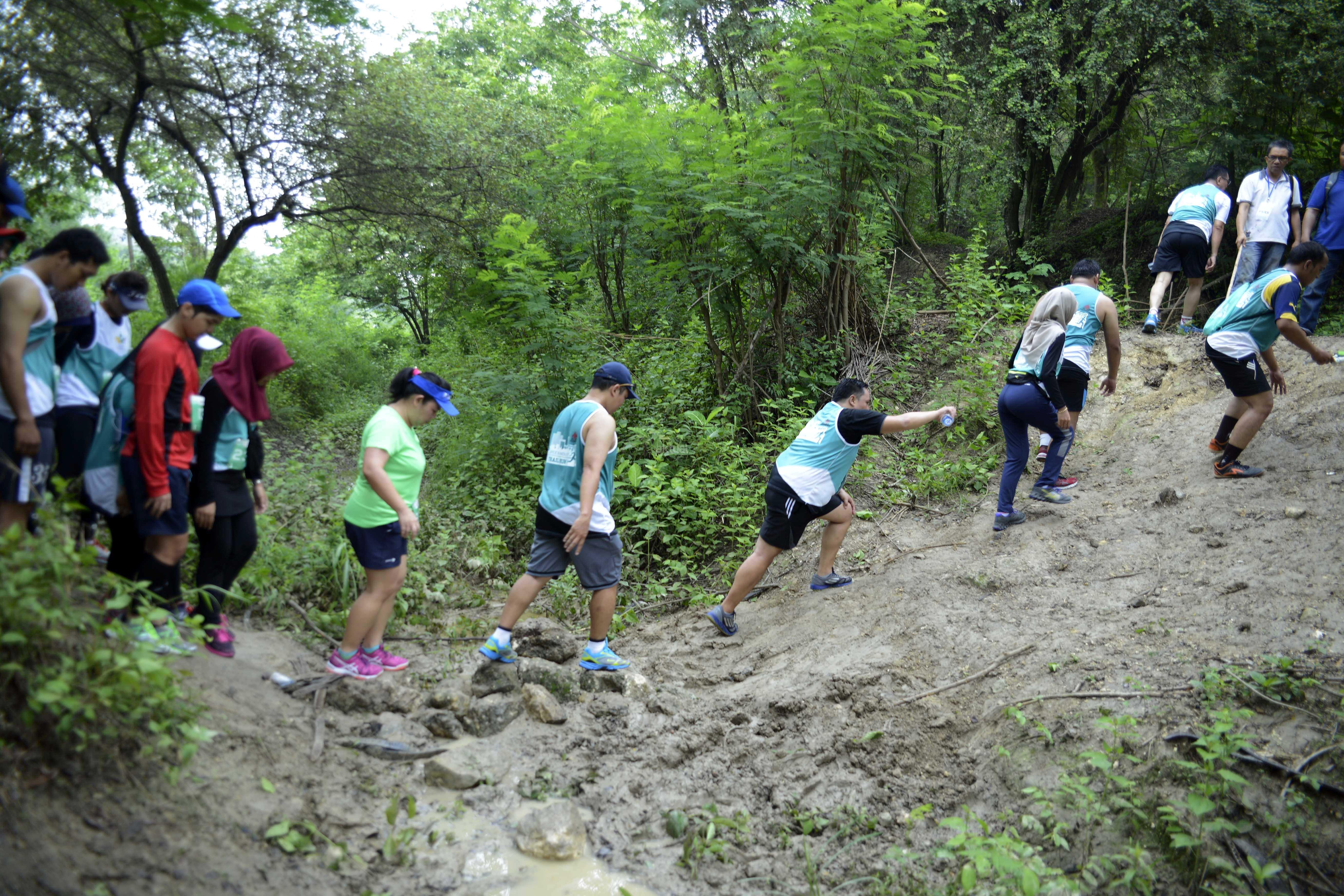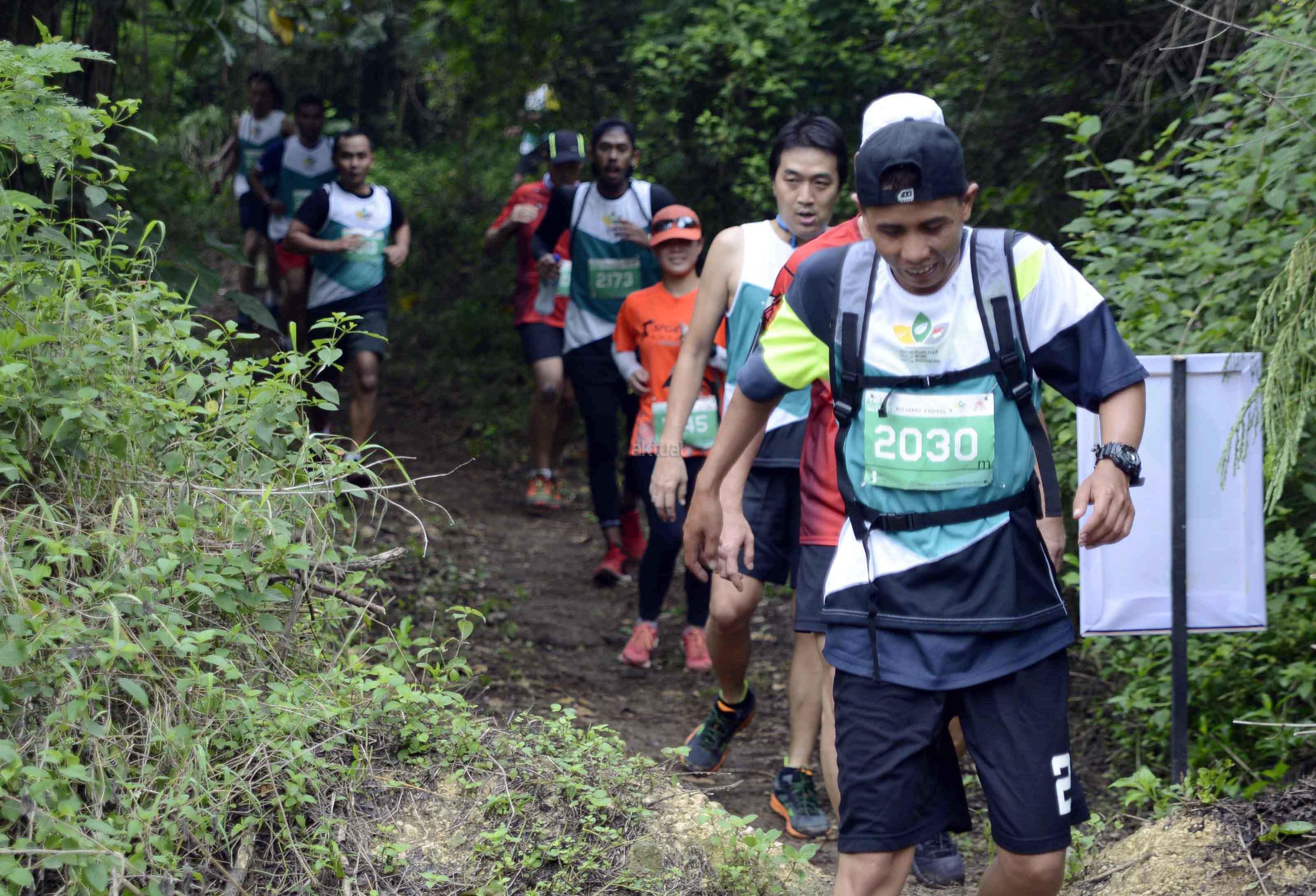 Peserta mengikuti lomba lari "Semen Indonesia Green Industry Trail Run 2016" di kawasan pabrik Semen Gresik, Jawa Timur, Minggu (13/11/2016). Event ini merupakan ajang lomba lari trail tahunan dengan rute area Pabrik Semen serta Lahan bekas Tambang tanah liat dan batu kapur yang dikelola dengan prinsip Industri Hijau. AKTUAL/HO