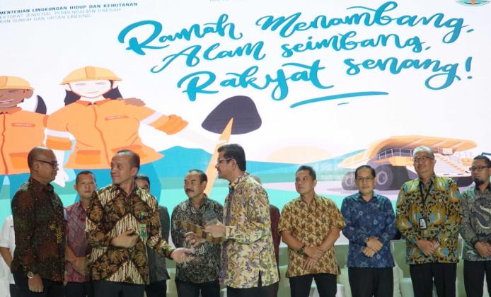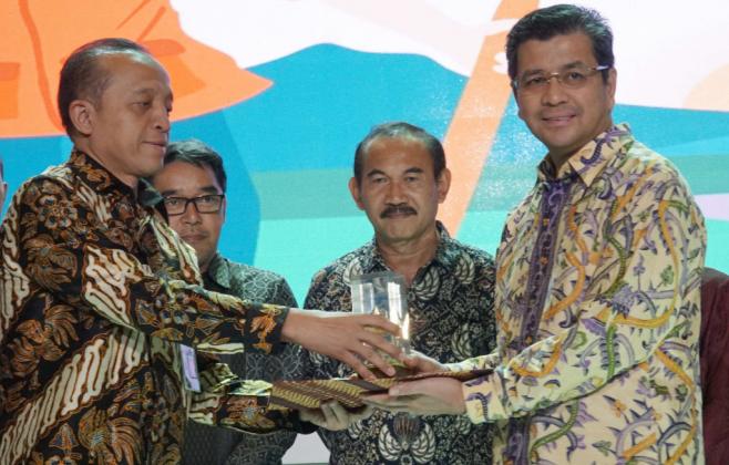 Direktur Produksi PT Semen Indonesia (Persero) Tbk Benny Wendry menerima penghargaan dari Sekretaris Jendral Kementerian Lingkungan Hidup dan Kehutanan Bambang Hendroyono di Auditorium Gedung Manggala Wana Bakti, KLHK, Jakarta, Selasa (23/4/2019). Semen Indonesia menerima penghargaan dari Kementerian Lingkungan Hidup dan Kehutanan (KLHK) dengan kategori BUMN/BUMS Pemegang Izin Pinjam Pakai Kawasan Hutan (IPPKH) Inspirator Reklamasi Hutan. Penghargaan diberikan sebagai apresiasi kepada PT Semen Indonesia (Persero) Tbk yang telah berhasil dalam melaksanakan reklamasi hutan dan rehabilitasi Daerah Aliran Sungai (DAS) di Pabrik Tuban. Hingga tahun 2018, PT Semen Indonesia (Persero) Tbk telah melakukan reklamasi seluas 227.26 ha di lahan bekas tambang pabrik Tuban. Reklamasi dilakukan dengan menanam 308.971 pohon diantaranya jati, sengon, johar, trembesi, mahoni dan kayu putih. AKTUAL/Dok Semen Indonesia