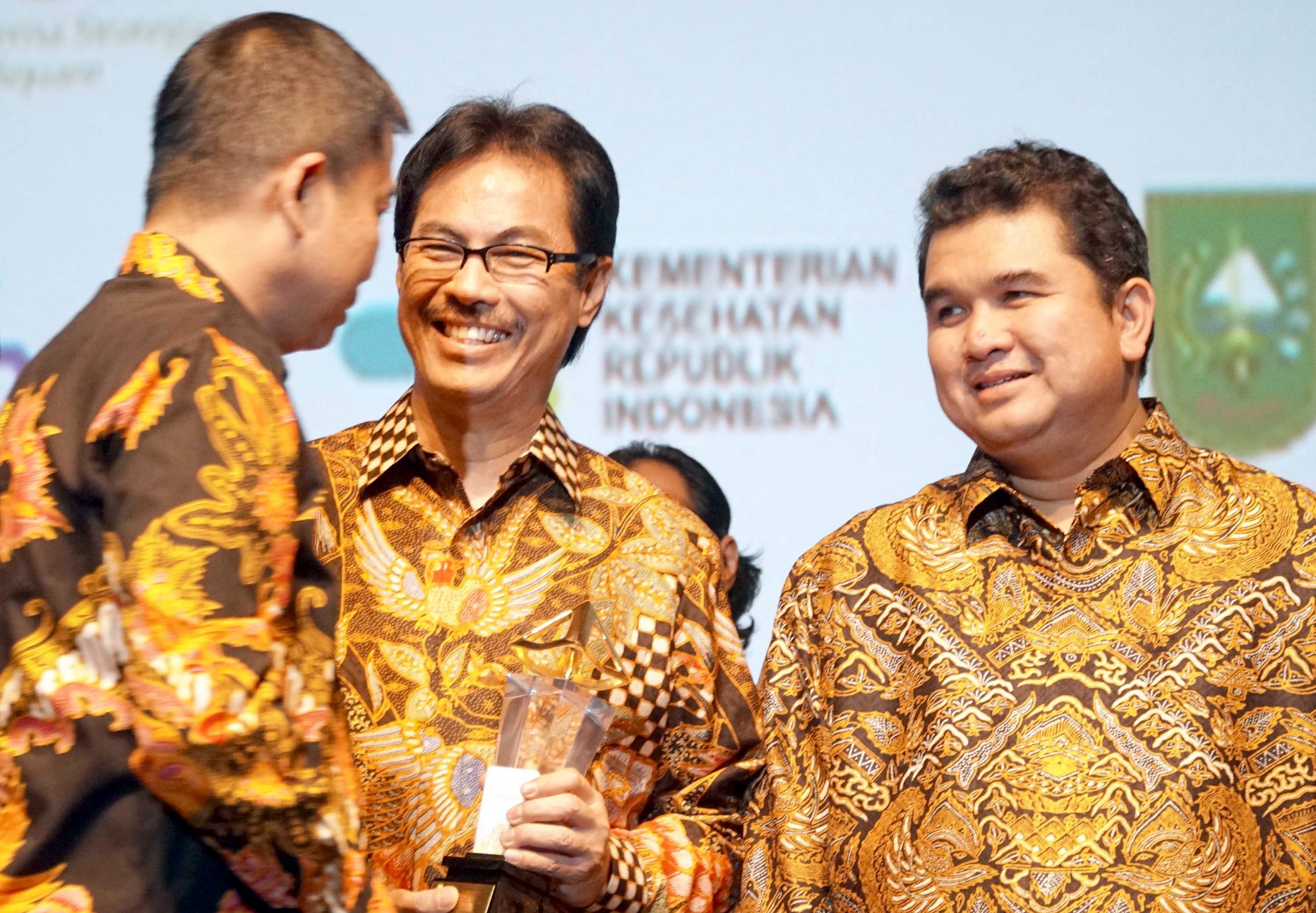 Direktur Utama Semen Indonesia, Hendi Prio Santoso menerima penghargaan dari Menteri ESDM Ignasius Jonan didampingi Wakil Menteri ESDM Arcandra Tahar saat acara malam Penganugerahan Penghargaan Subroto 2018 di XXI Ballroom – Djakarta Theater Jakarta, Jumat (28/9). PT Semen Indonesia, Pabrik Tuban meraih penghargaan Subroto Bidang Efisiensi Energi kategori Manajemen Energi pada Industri dan Bangunan Gedung sub kategori inovasi khusus (special submission) dari Kementerian ESDM. AKTUAL/Eko S Hilman