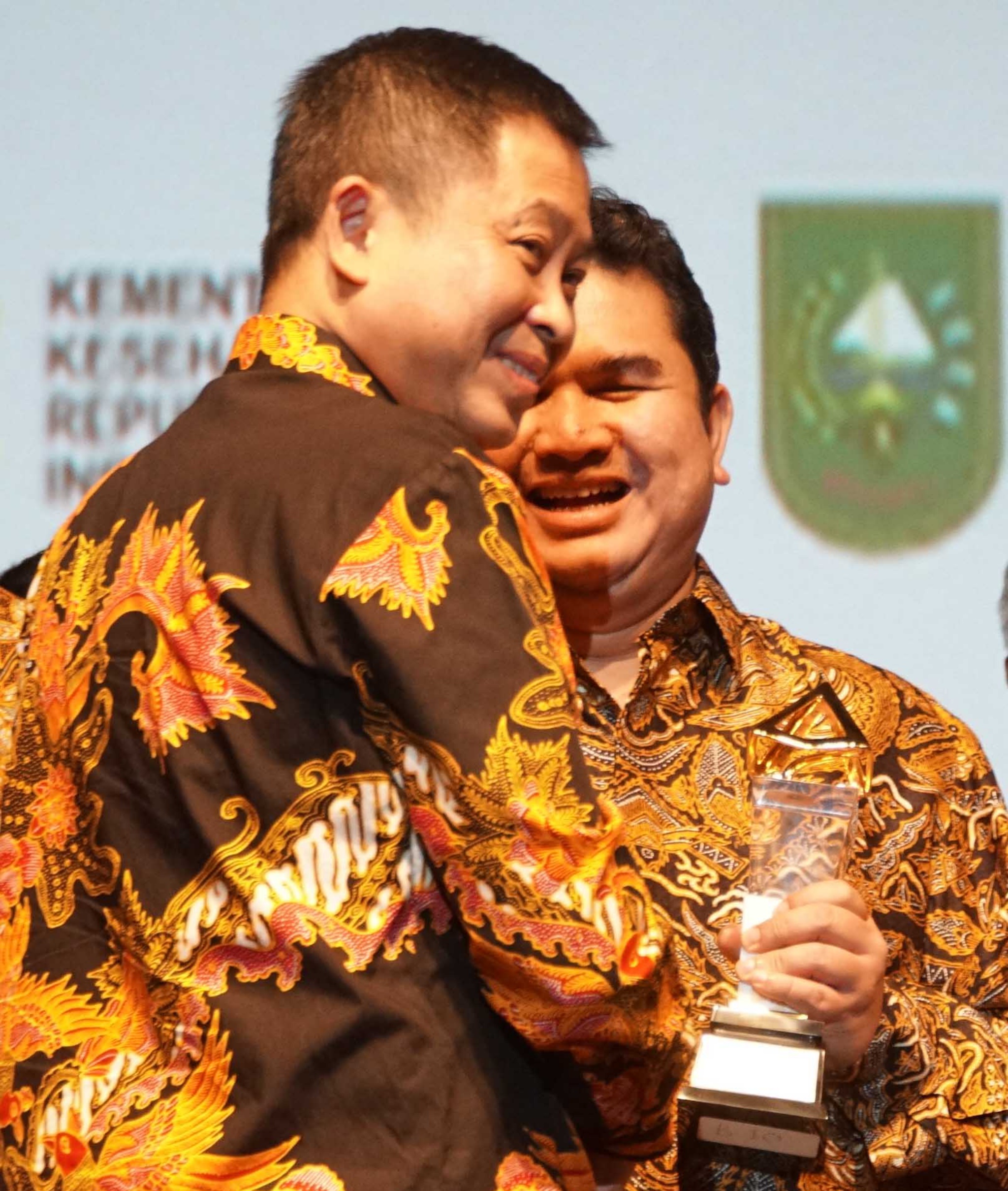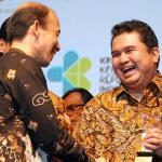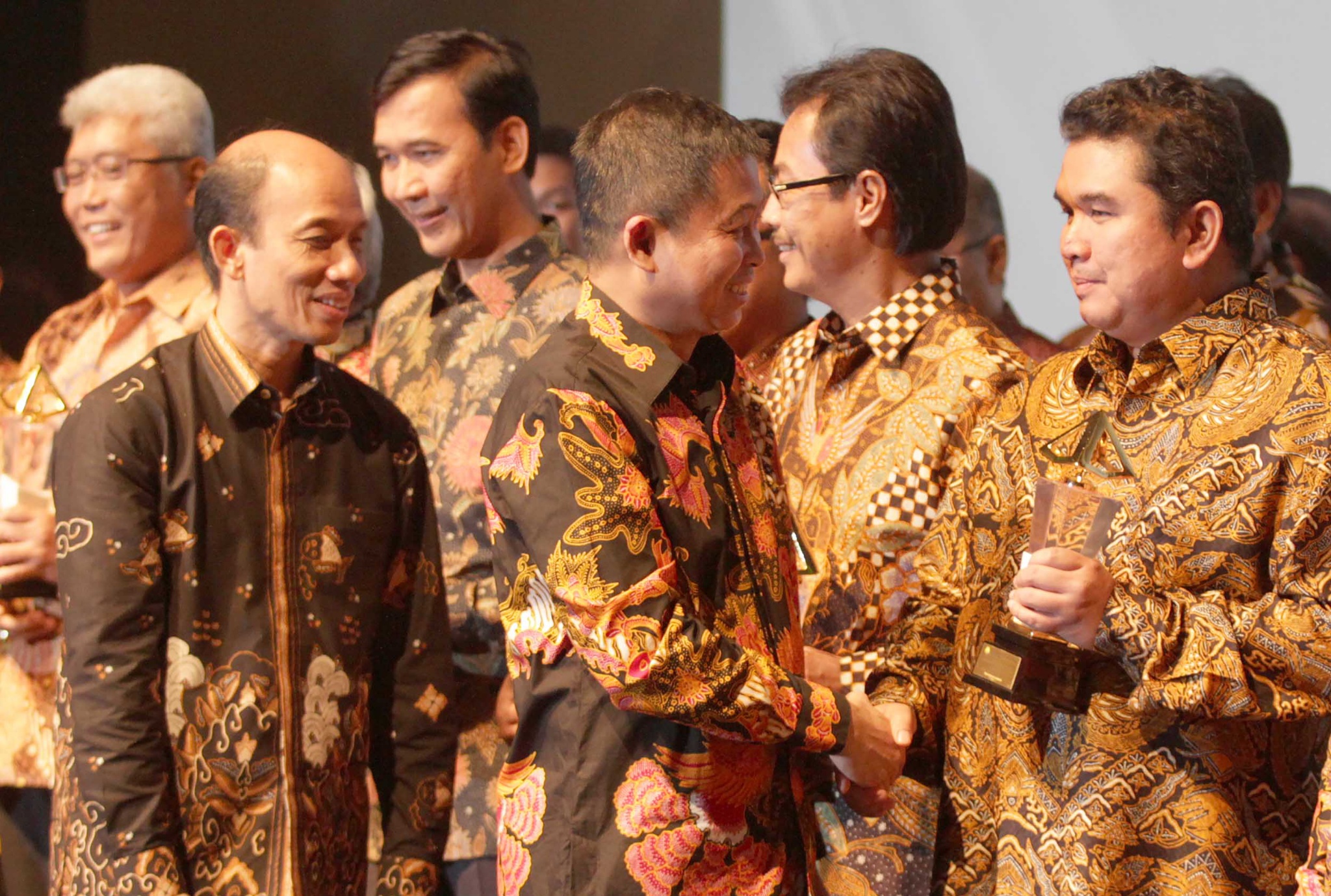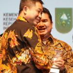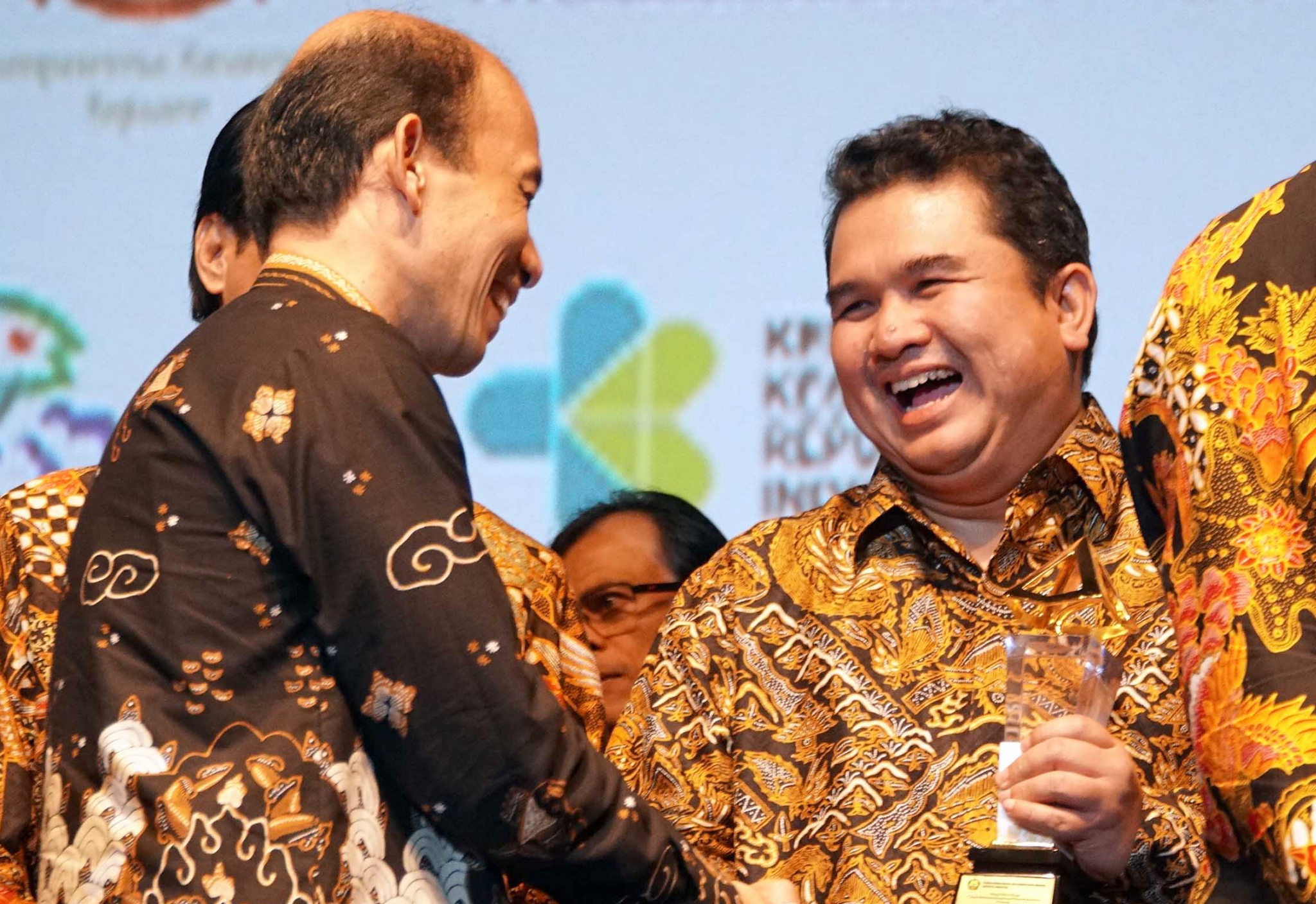 Direktur Utama Semen Indonesia, Hendi Prio Santoso mendaparkan ucapan selamat dari Wakil Menteri ESDM Arcandra Tahar saat acara malam Penganugerahan Penghargaan Subroto 2018 di XXI Ballroom – Djakarta Theater Jakarta, Jumat (28/9). PT Semen Indonesia, Pabrik Tuban meraih penghargaan Subroto Bidang Efisiensi Energi kategori Manajemen Energi pada Industri dan Bangunan Gedung sub kategori inovasi khusus (special submission) dari Kementerian ESDM. AKTUAL/Eko S Hilman