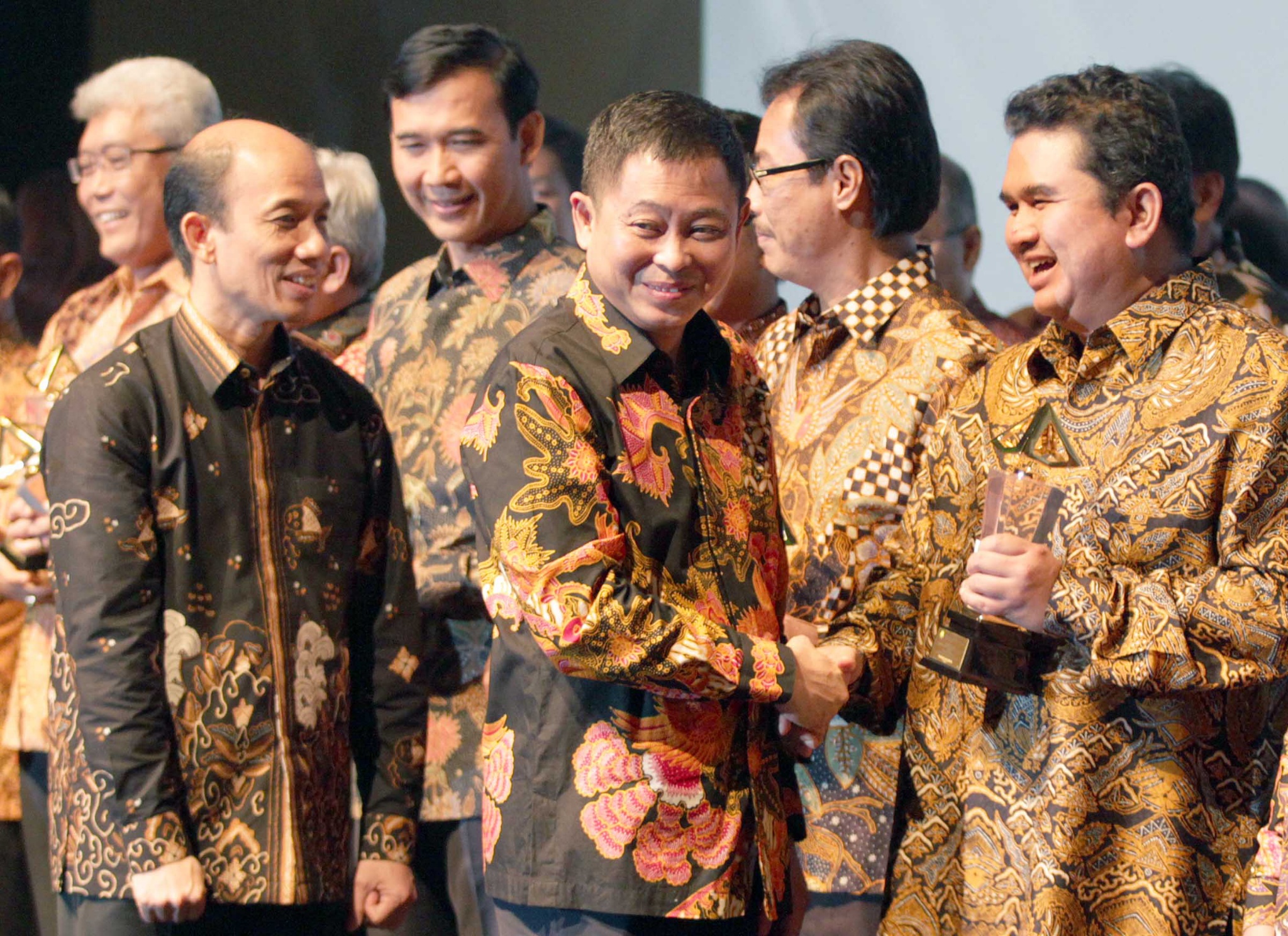 Direktur Utama Semen Indonesia, Hendi Prio Santoso (kanan), Menteri ESDM Ignasius Jonan (kiri) didampingi Wakil Menteri ESDM Arcandra Tahar (kedua kiri) foto bersama usai acara malam Penganugerahan Penghargaan Subroto 2018 di XXI Ballroom – Djakarta Theater Jakarta, Jumat (28/9). PT Semen Indonesia, Pabrik Tuban meraih penghargaan Subroto Bidang Efisiensi Energi kategori Manajemen Energi pada Industri dan Bangunan Gedung sub kategori inovasi khusus (special submission) dari Kementerian ESDM. AKTUAL/Eko S Hilman