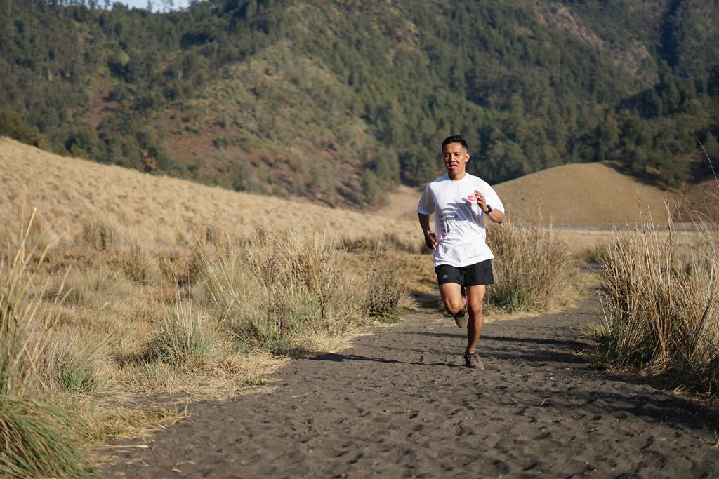 Peserta Semen Indonesia Trail Run Camp saat melintasi tanjakan cinta Ranu Kumbolo, Taman Nasional Bromo Tengger Semeru, Malang, Jawa Timur, Minggu (14/10/2018). Kegiatan ini adalah ajang try out bagi para pelari yang sudah terdaftar dalam SMI Trail Run yang akan digelar 11 November 2018 mendatang. AKTUAL/Dok Semen Indonesia