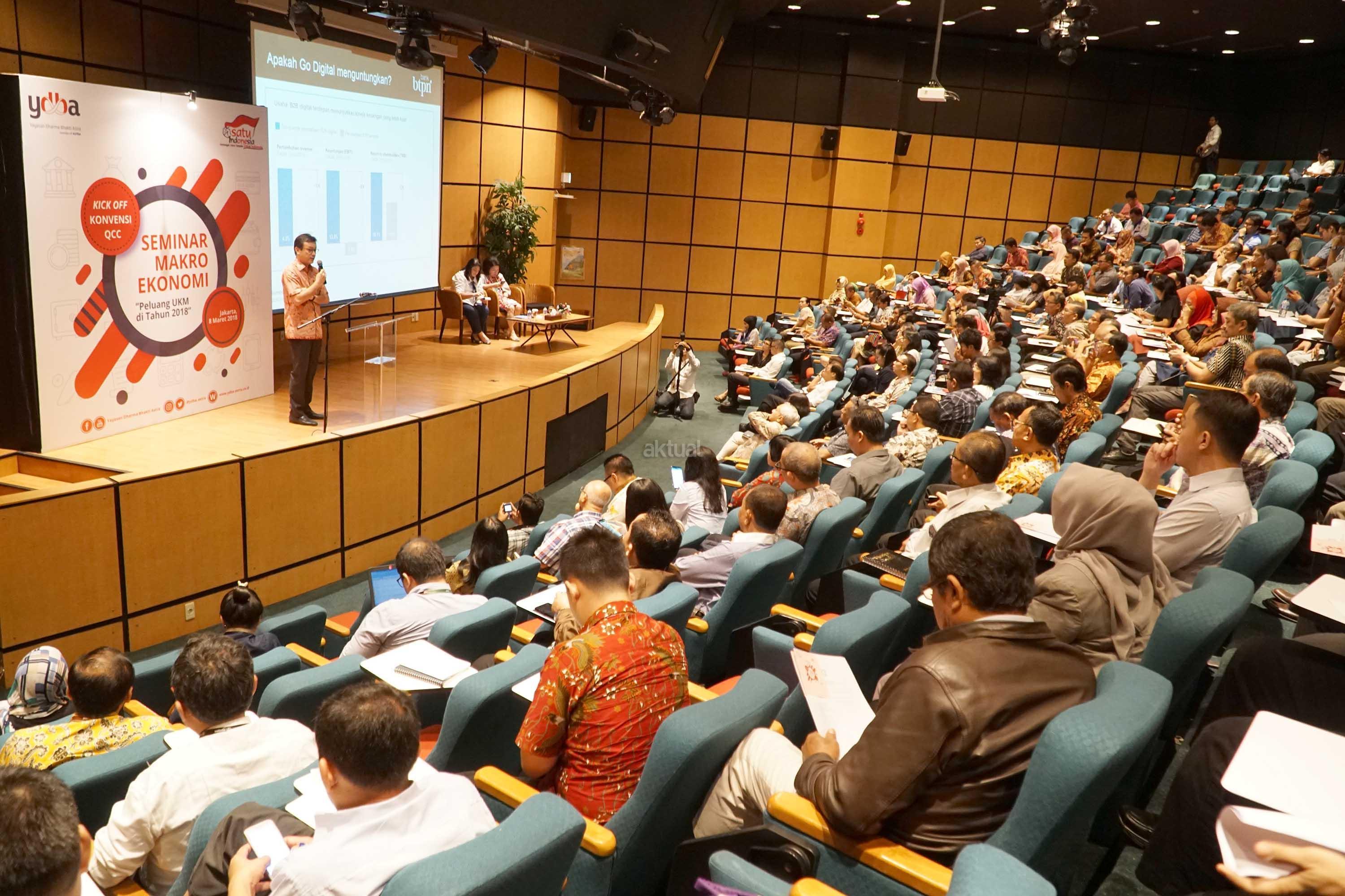 Suasana Seminar Makro Ekonomi untuk UKM yang diselenggarakan Yayasan Dharma Bhakti Astra (YDBA) dengan pembicara, yaitu Menteri Pariwisata dan Ekonomi Kreatif Periode 2011 – 2014 sekaligus Penasehat YDBA Mari Elka Pangestudi dan Finance and Funding Director Bank Tabungan Pensiunan Nasional (BTPN) Arief Harris Tanjung di Gedung PT Astra International Tbk, Jakarta, Kamis (8/3). Hingga Desember 2017, YDBA telah memberikan pembinaan kepada 10.374 UKM. AKTUAL/Eko S Hilman